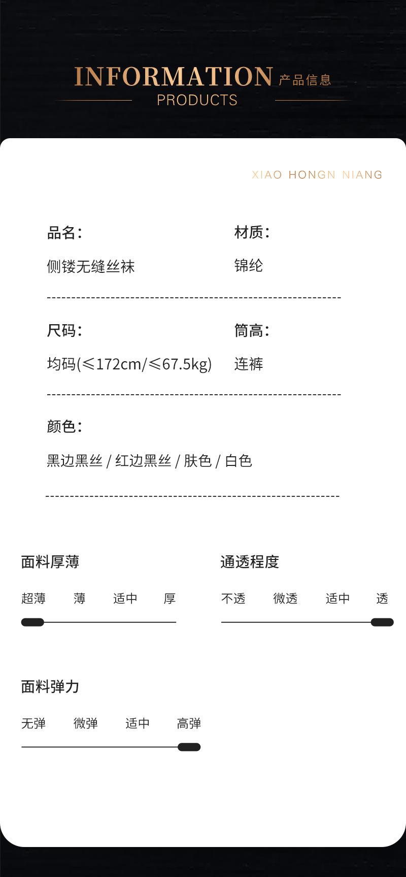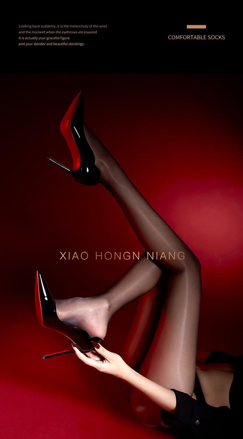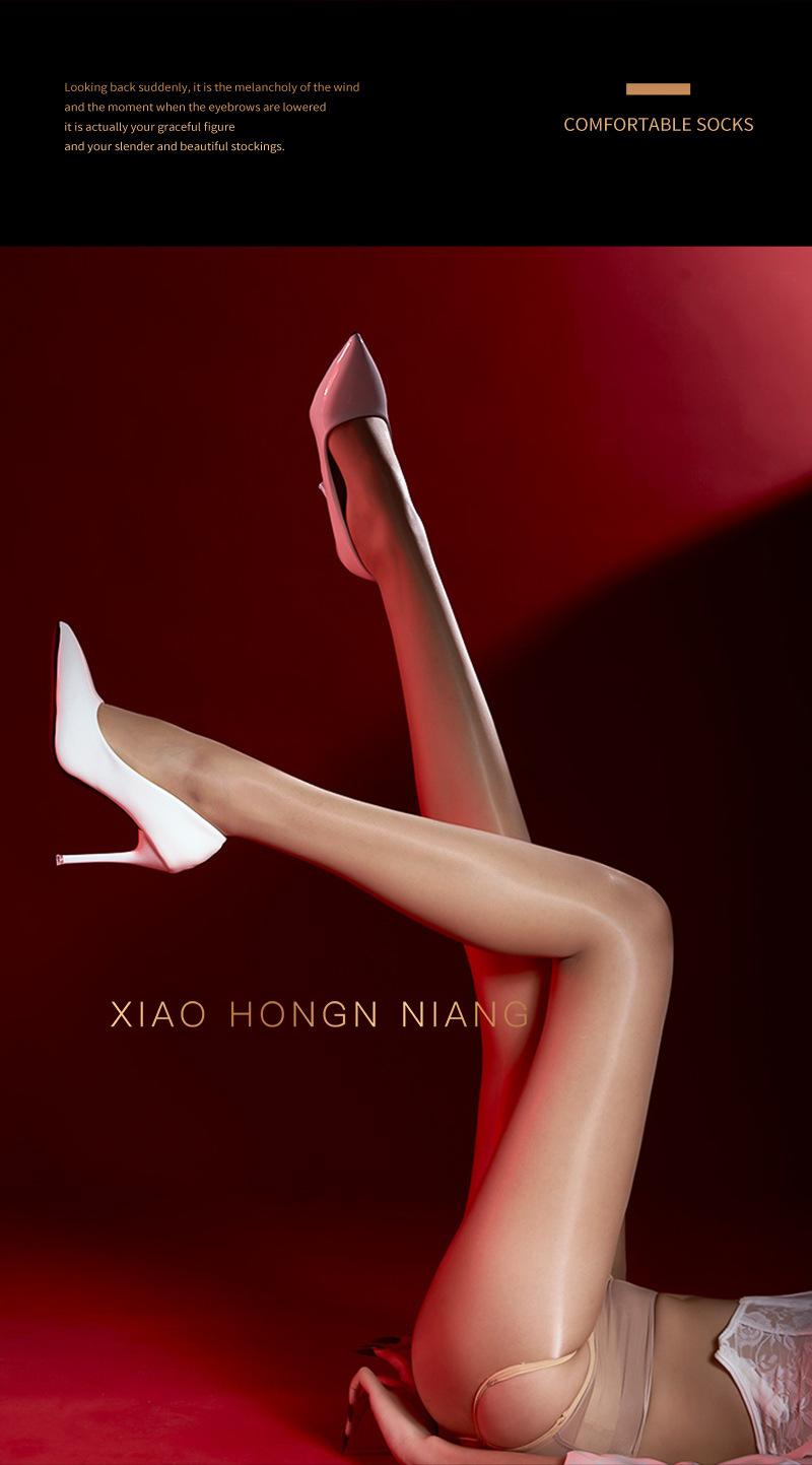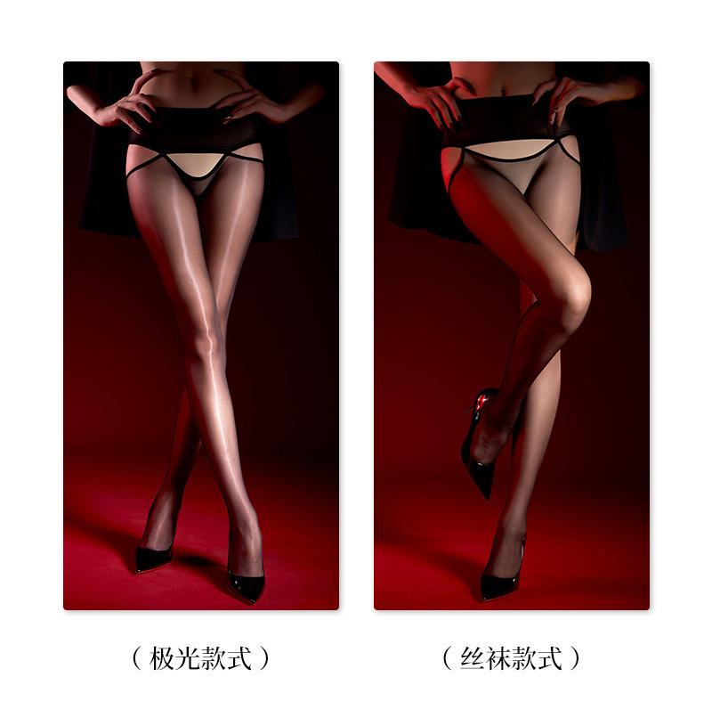 XHN [cuatro lados vacíos] Medias de entrepierna sin costuras con cintura de malla 360, aceite de aurora, brillantes, sexys, con borde rojo fino W1060A