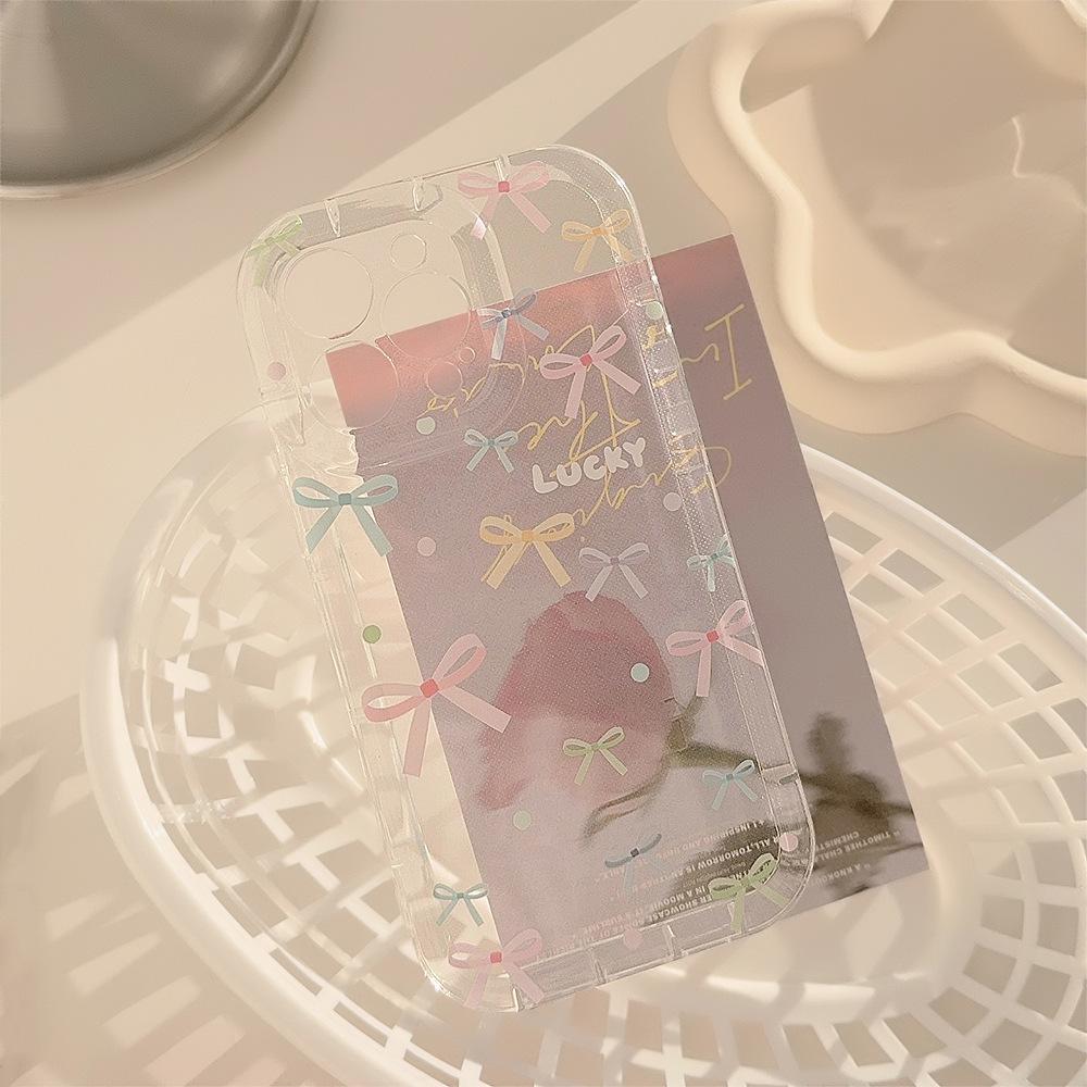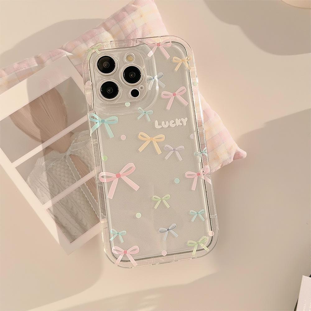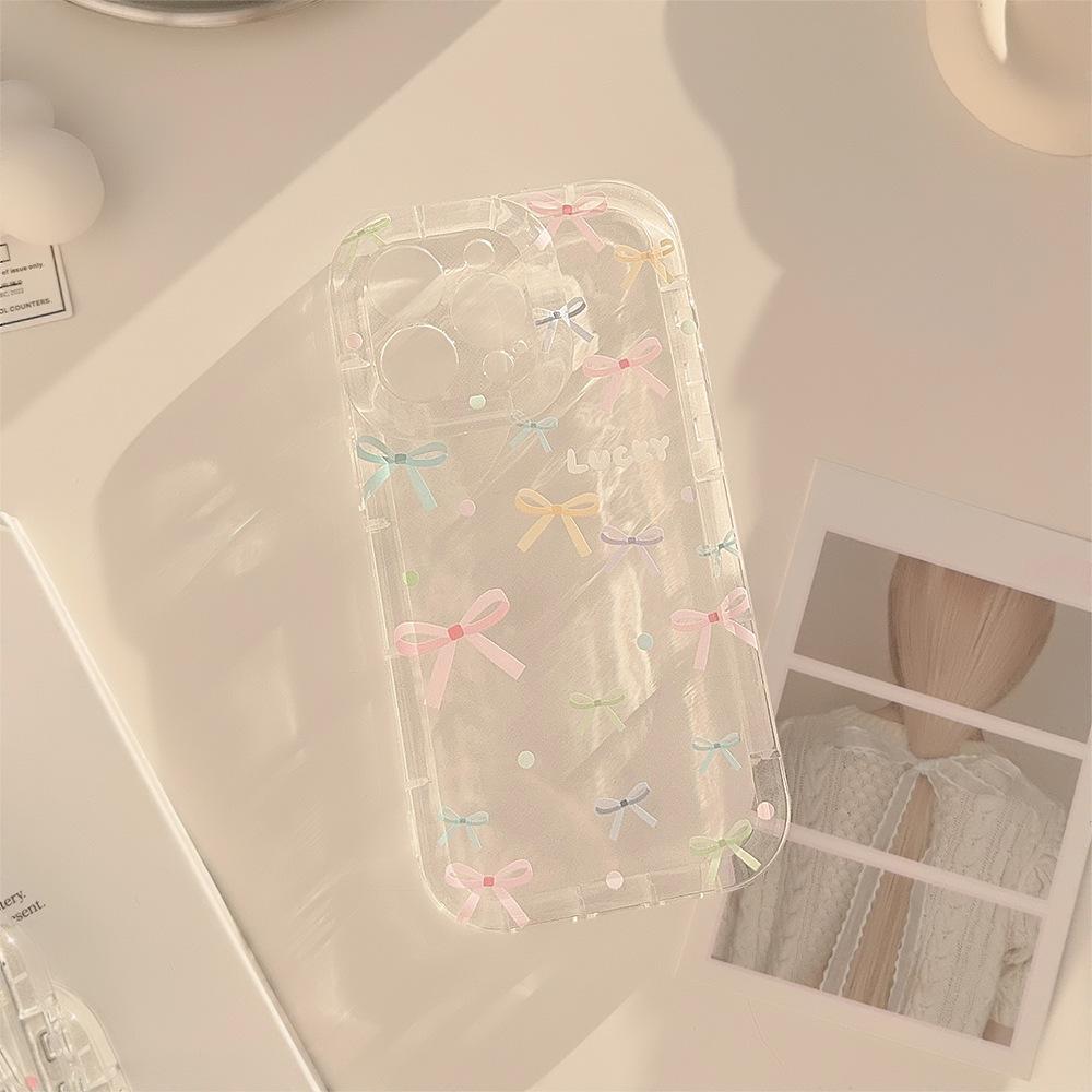 Funda con lazo de color para Apple Pro Max 15, transparente, anticaída, para iPhone 14, 16, 12/13/11