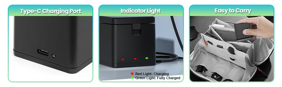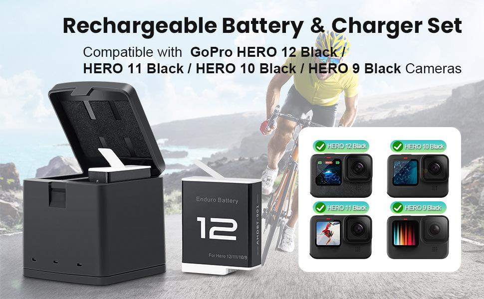Batería para cámara de acción GoProHero12 Black con estación de carga de batería de 3 canales Micro Batería individual reemplazable