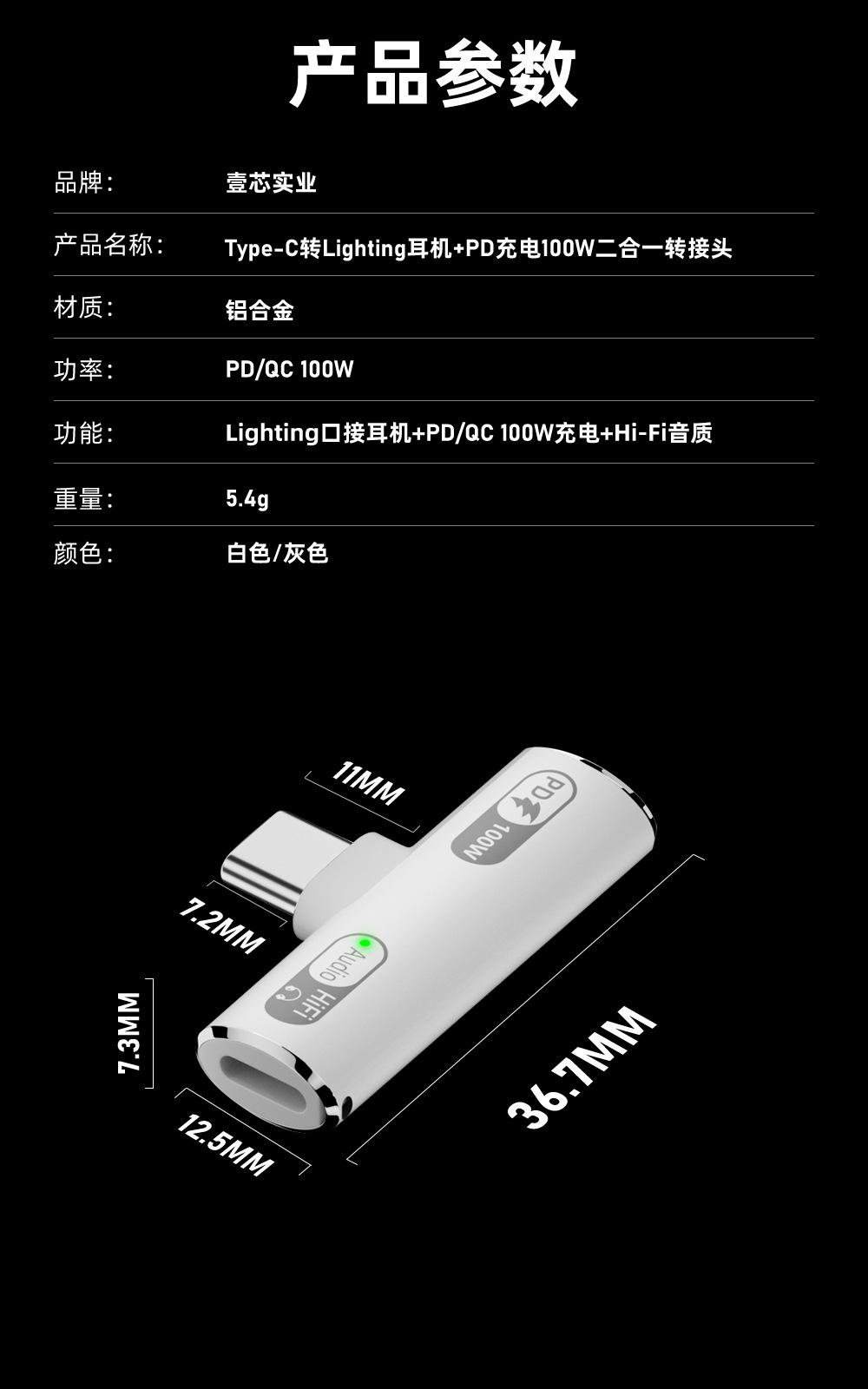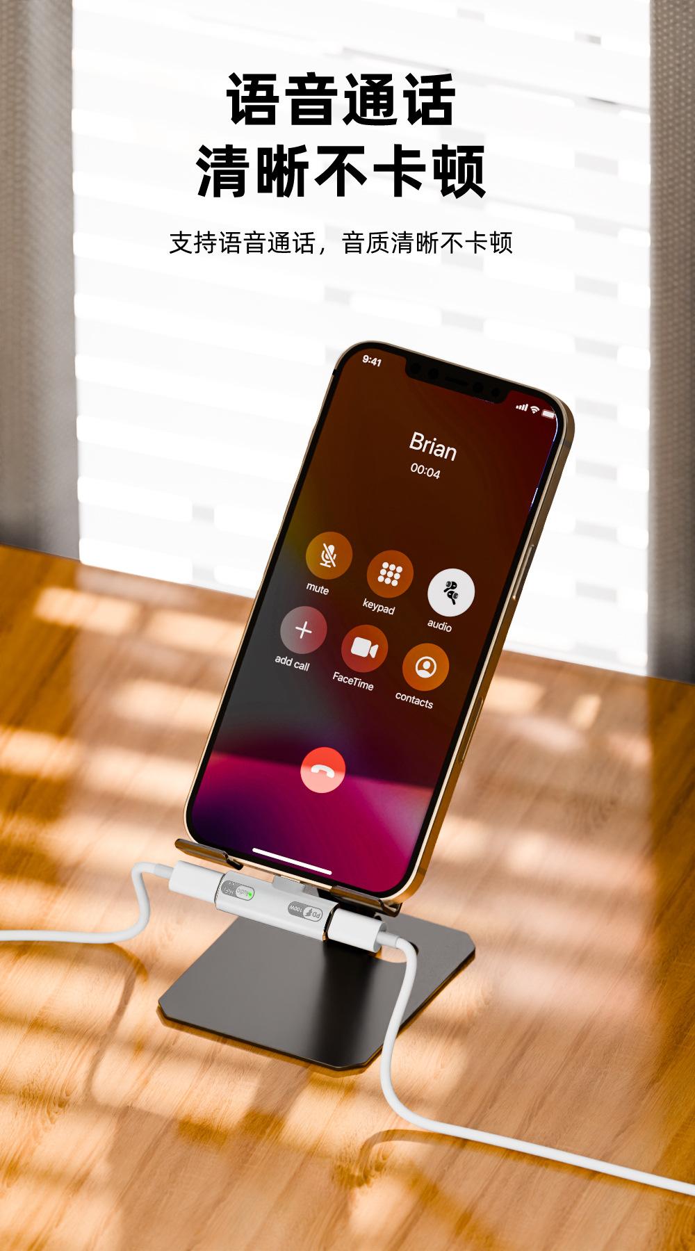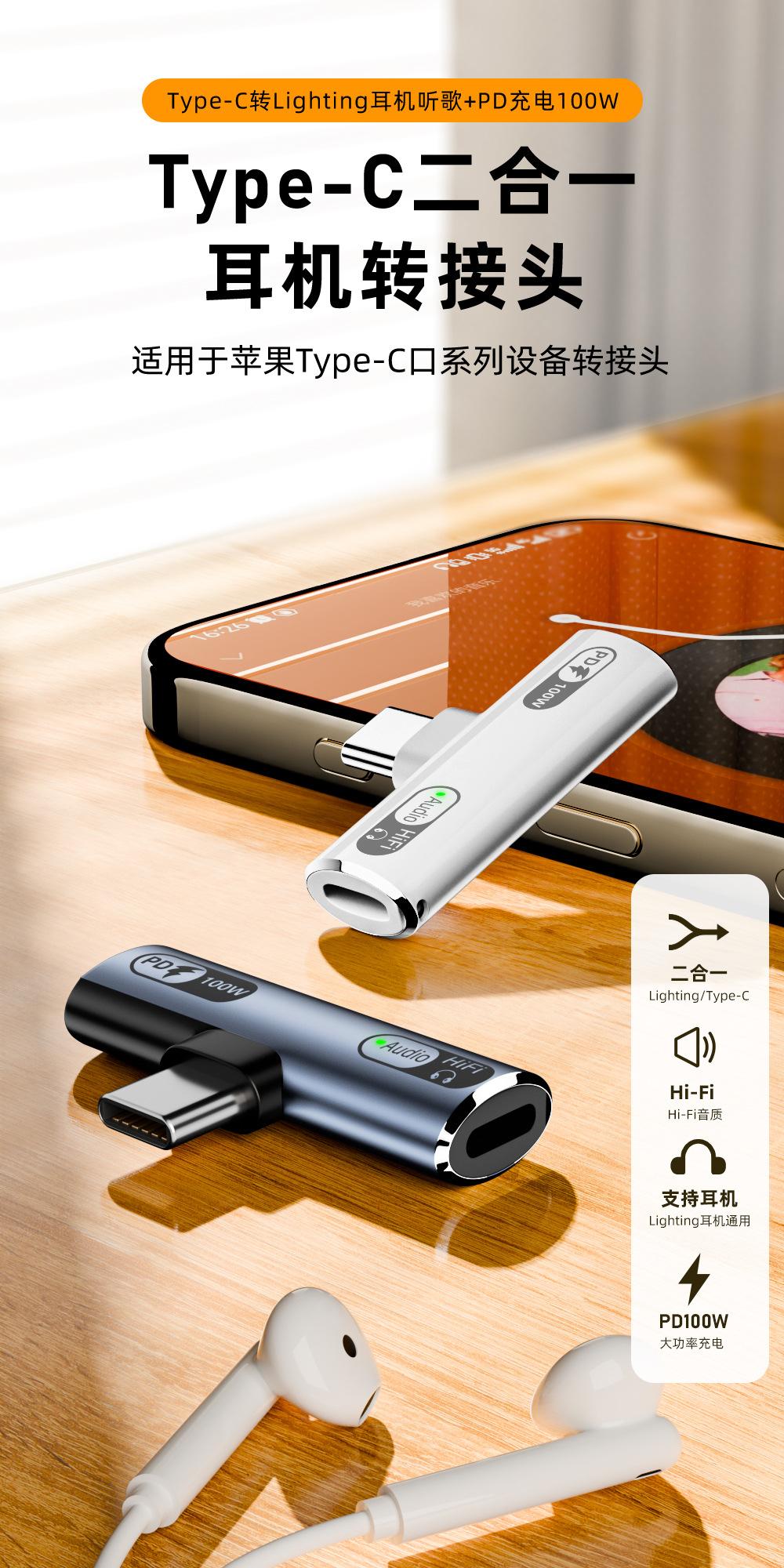 Nuevo adaptador USB-C transfronterizo PD100w apto para cargar auriculares Lightning a TypeC para escuchar música