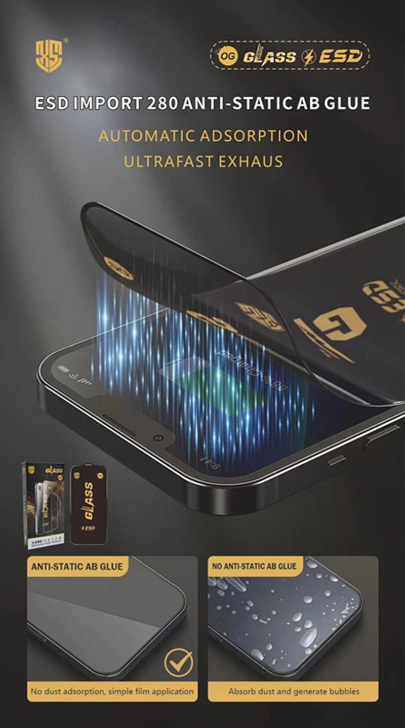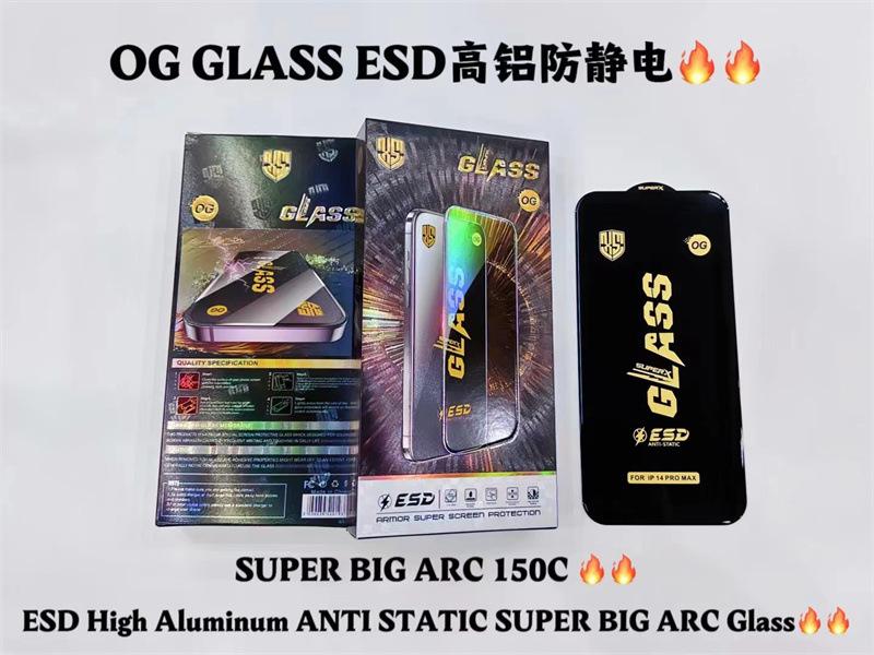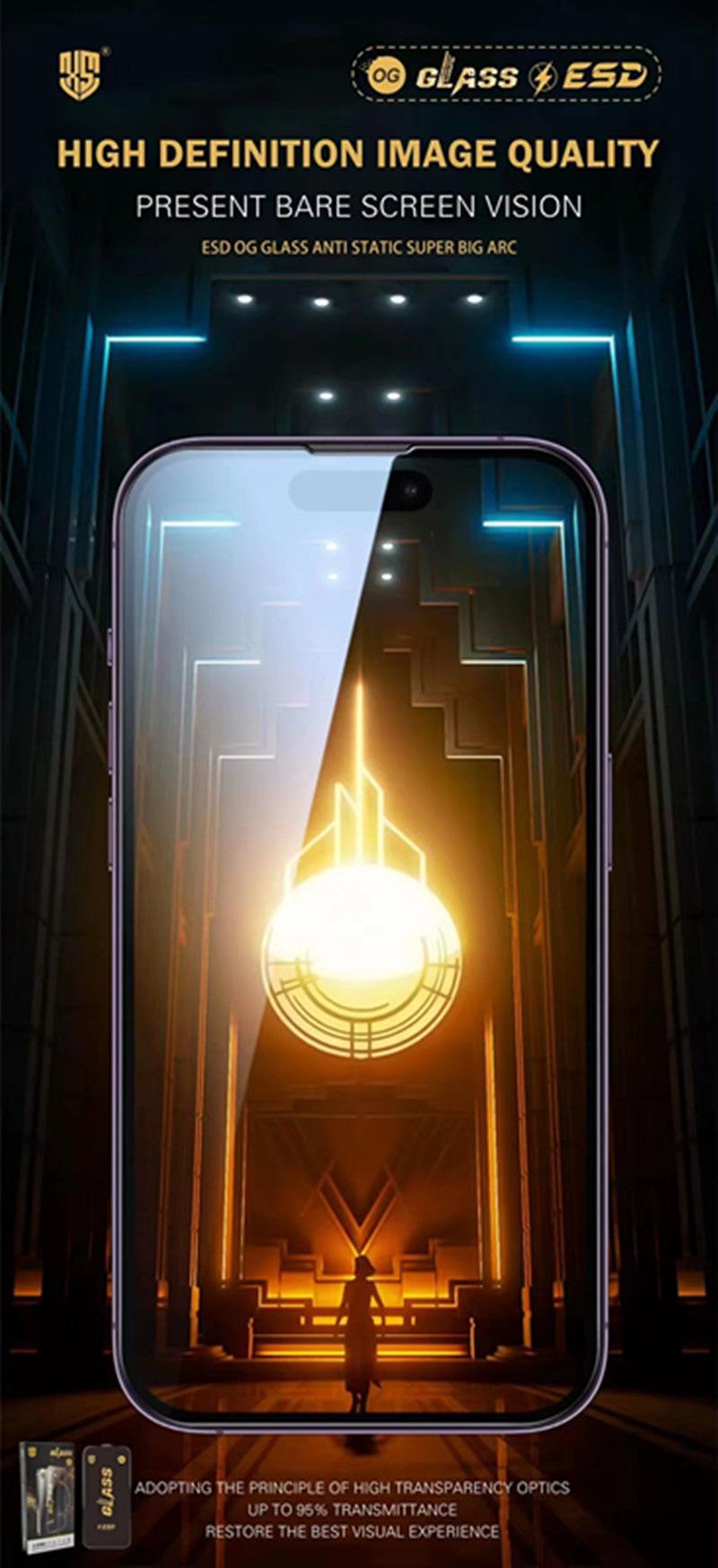 Película de vidrio templado para teléfono móvil Apple 13 Pro, gran arco galvanizado ESD antiestático, pantalla completa para iPhone 14