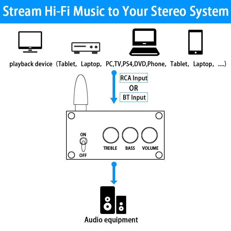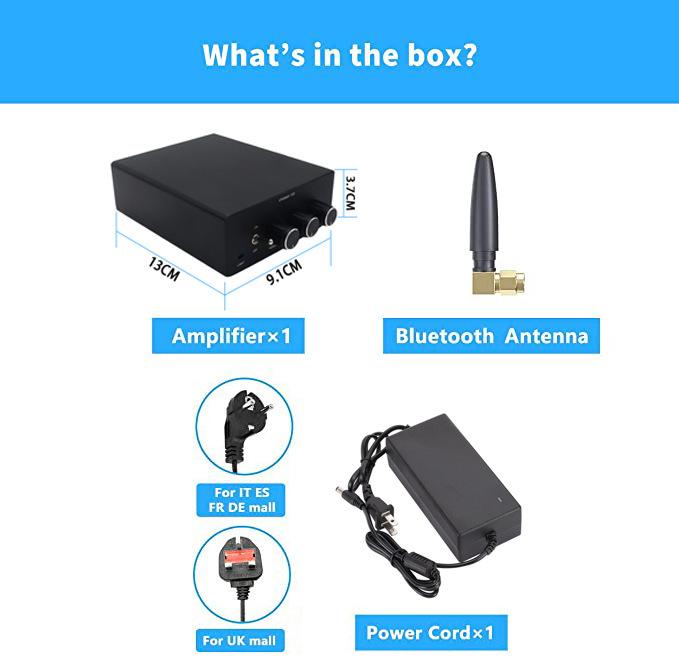 Diseño pequeño, simple y compacto pero práctico y potente, el amplificador inalámbrico Bluetooth Hi-Fi compacto está diseñado para clientes que buscan sonido HiFi.