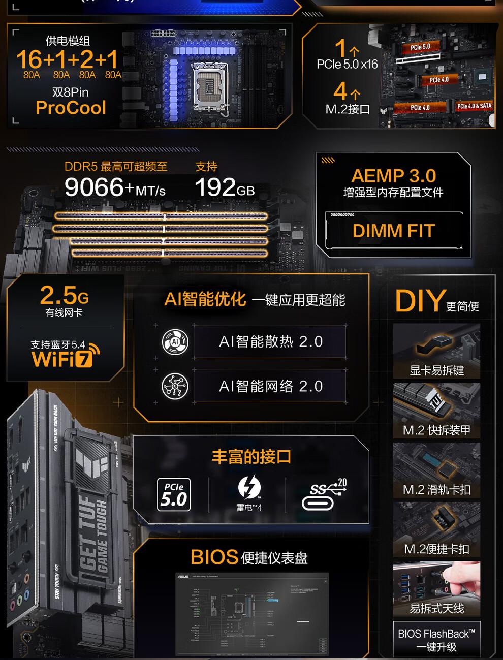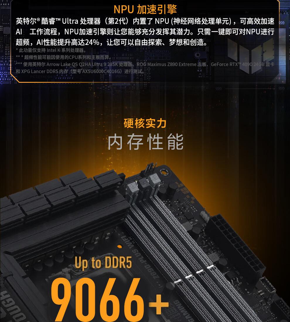 La placa madre TUF GAMING Z890-PLUS WIFI soporta CPU 285K/265K/265KF (