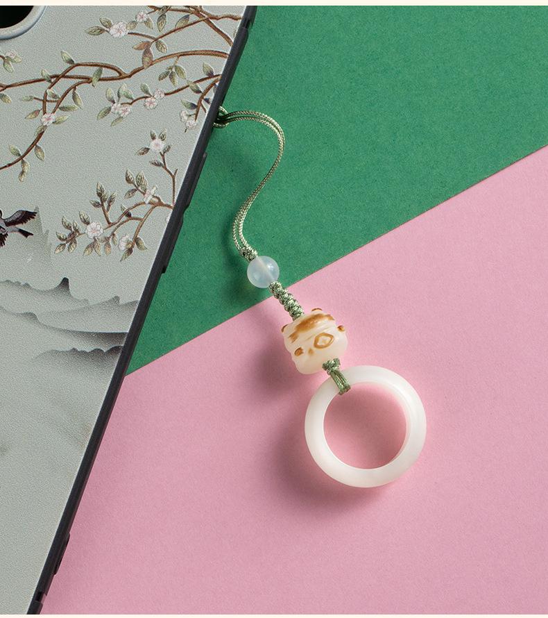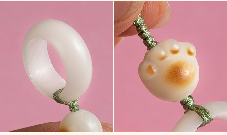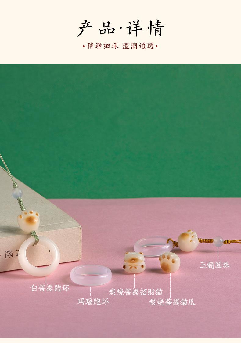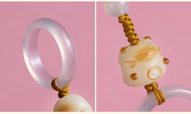 White Bodhi ring pendant-lucky cat style, White Bodhi ring pendant-Cat Claw, White agate ring pendant-lucky ca...