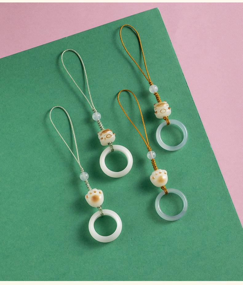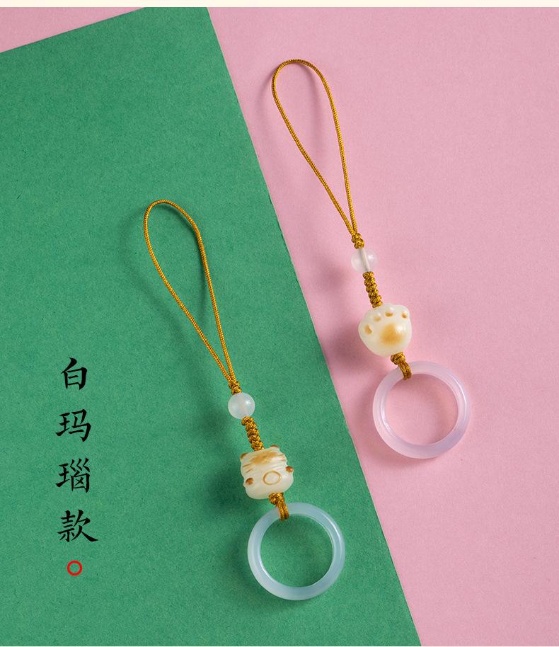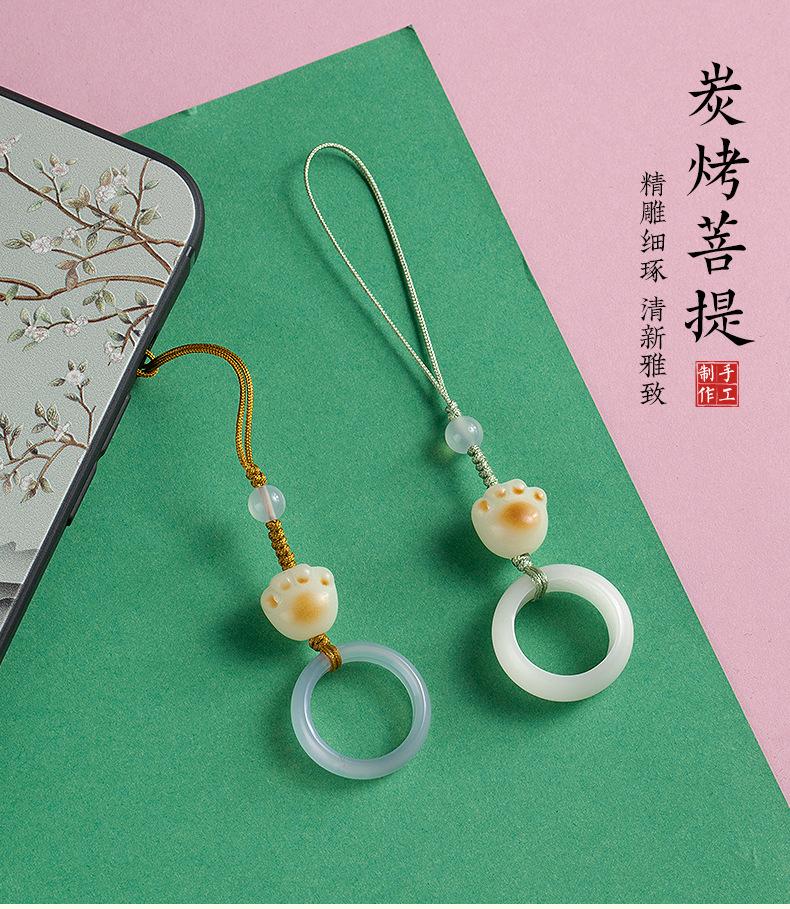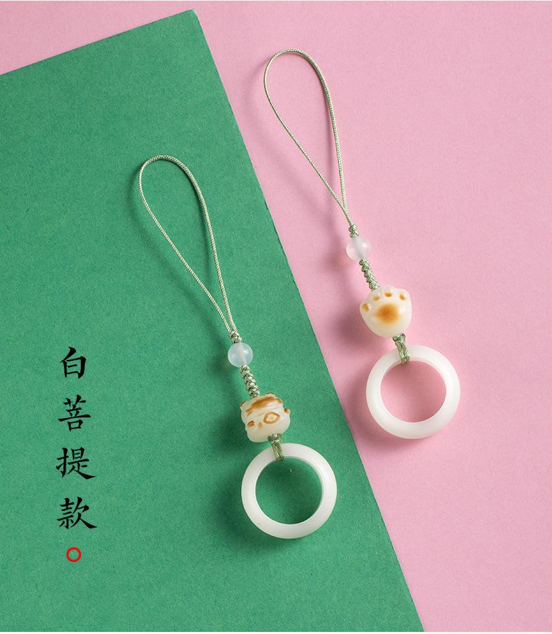 Cordón para teléfono móvil con garra de gato de carbón Bodhi blanco, hebilla de anillo exquisita y bonita para mujer, adorno de gato de la suerte, colgante de cadena para teléfono móvil