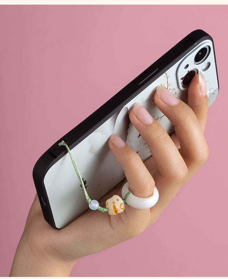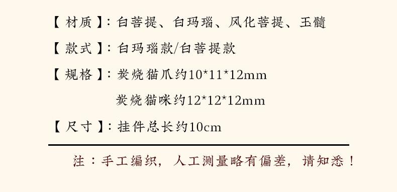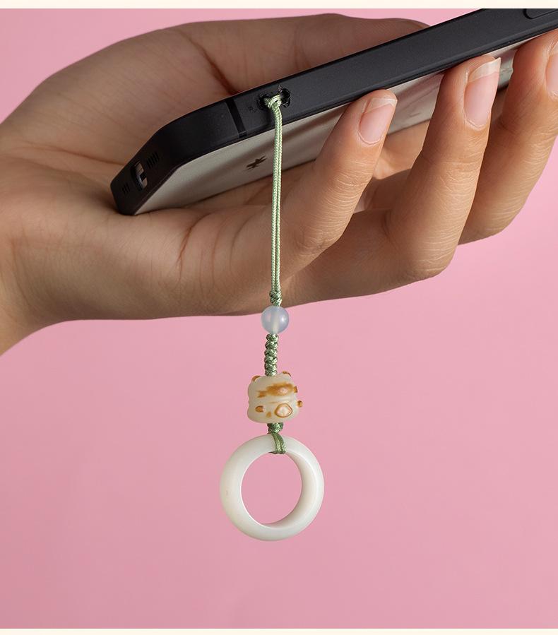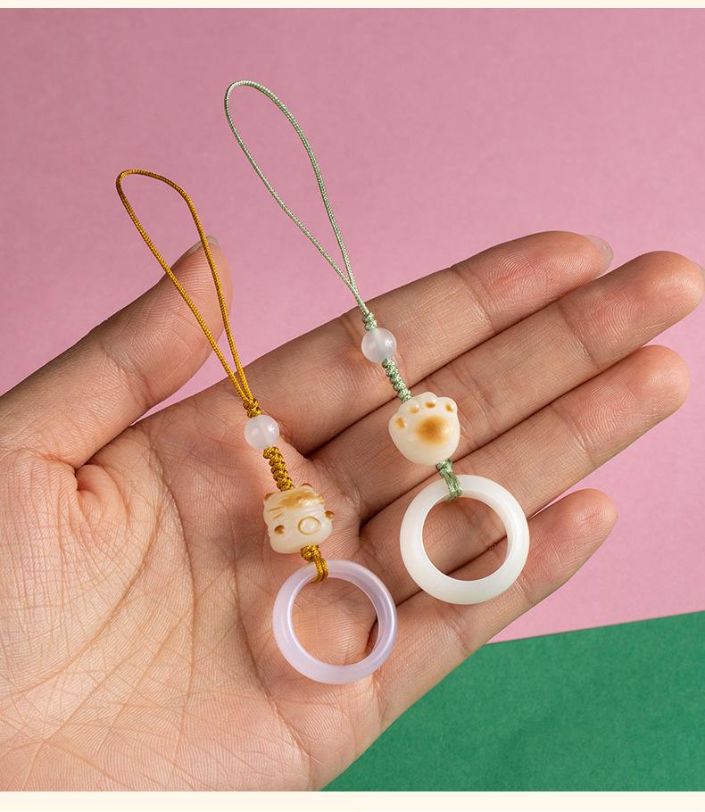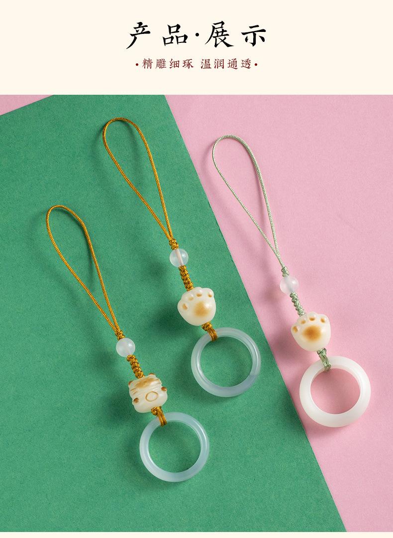 Cordón para teléfono móvil con garra de gato de carbón Bodhi blanco, hebilla de anillo exquisita y bonita para mujer, adorno de gato de la suerte, colgante de cadena para teléfono móvil