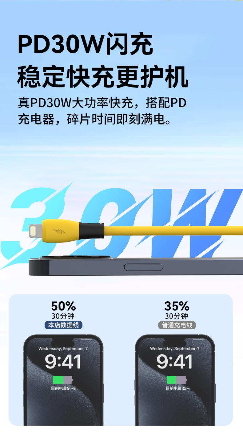 Cable de Datos de Carga Rápida PD30W Tipo C Es Adecuado para Carga Flash PD de Apple Sin Ventanas Emergentes y No Daña el Teléfono. Cable de Carga Rápida para Teléfono Móvil