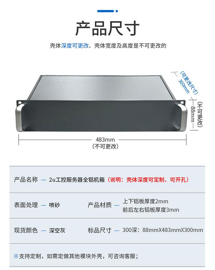 Chasis de control industrial de aleación de aluminio 2u, chasis sólido y chasis de servidor americano, amplificador de potencia de 300 de profundidad, chasis completamente de aluminio de 19 pulgadas