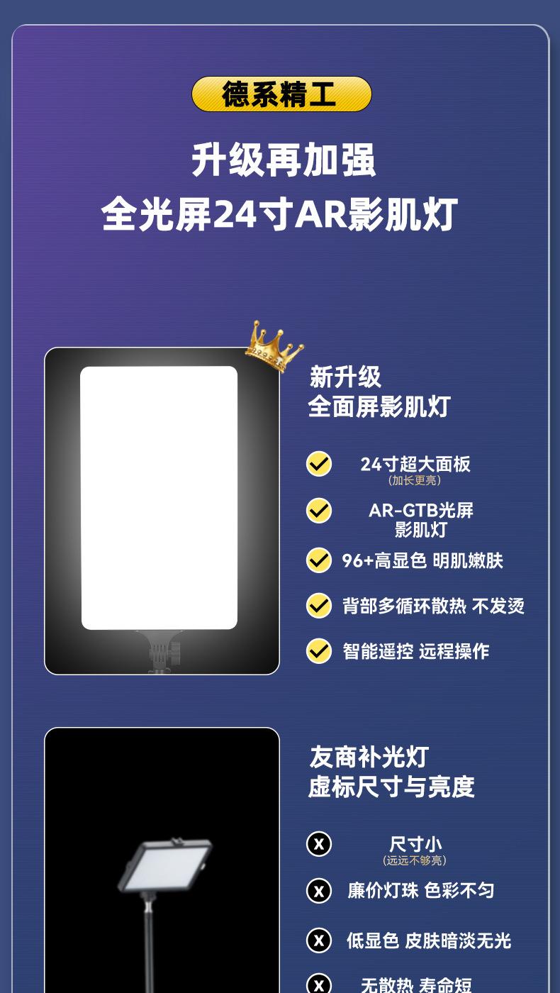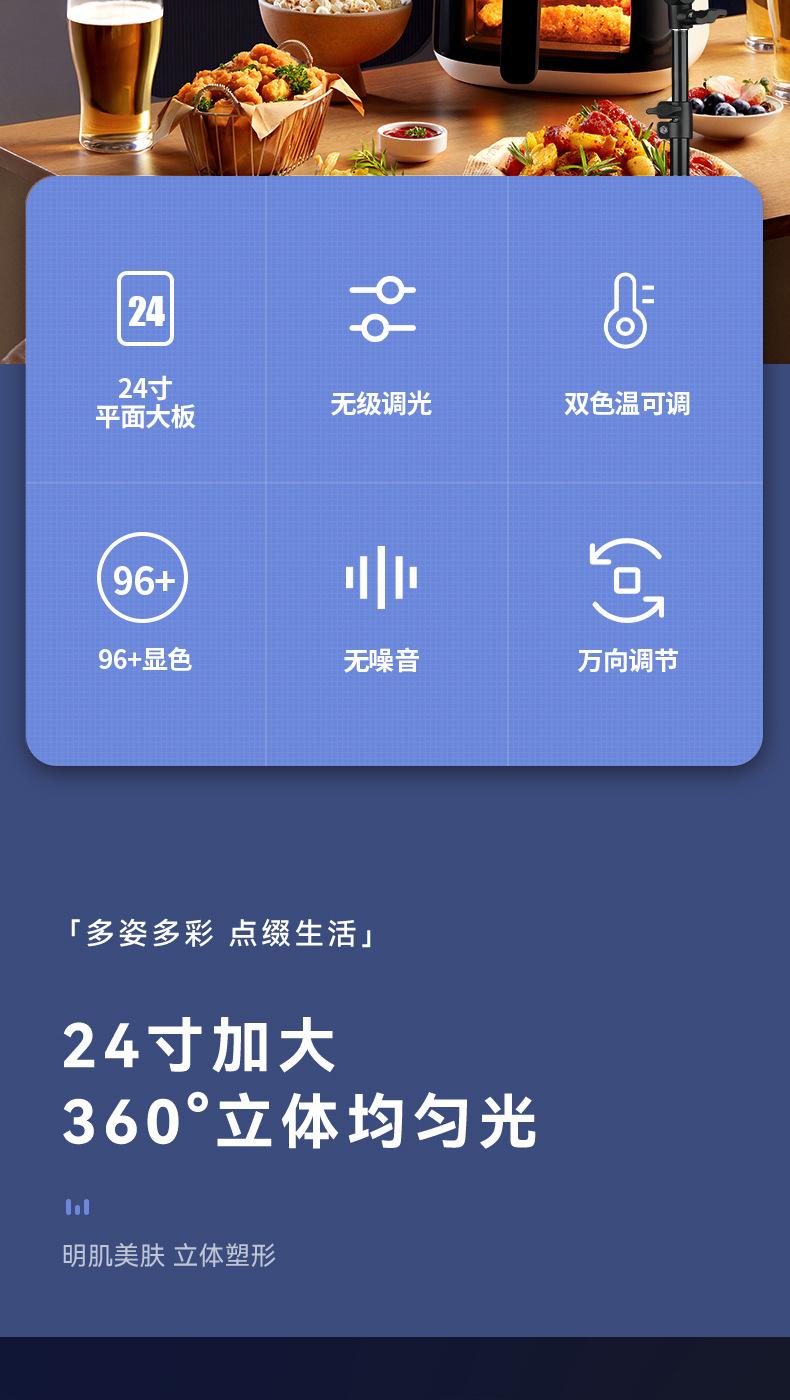 Luz de relleno de belleza de pantalla completa LED, luz de fotografía en vivo para teléfono móvil, luz plana para piso de sala de estar, luz plana de 24 pulgadas