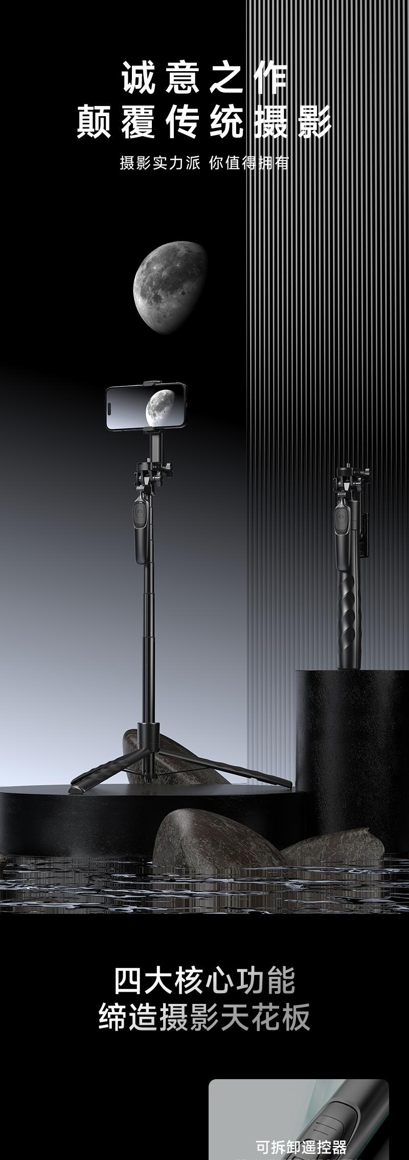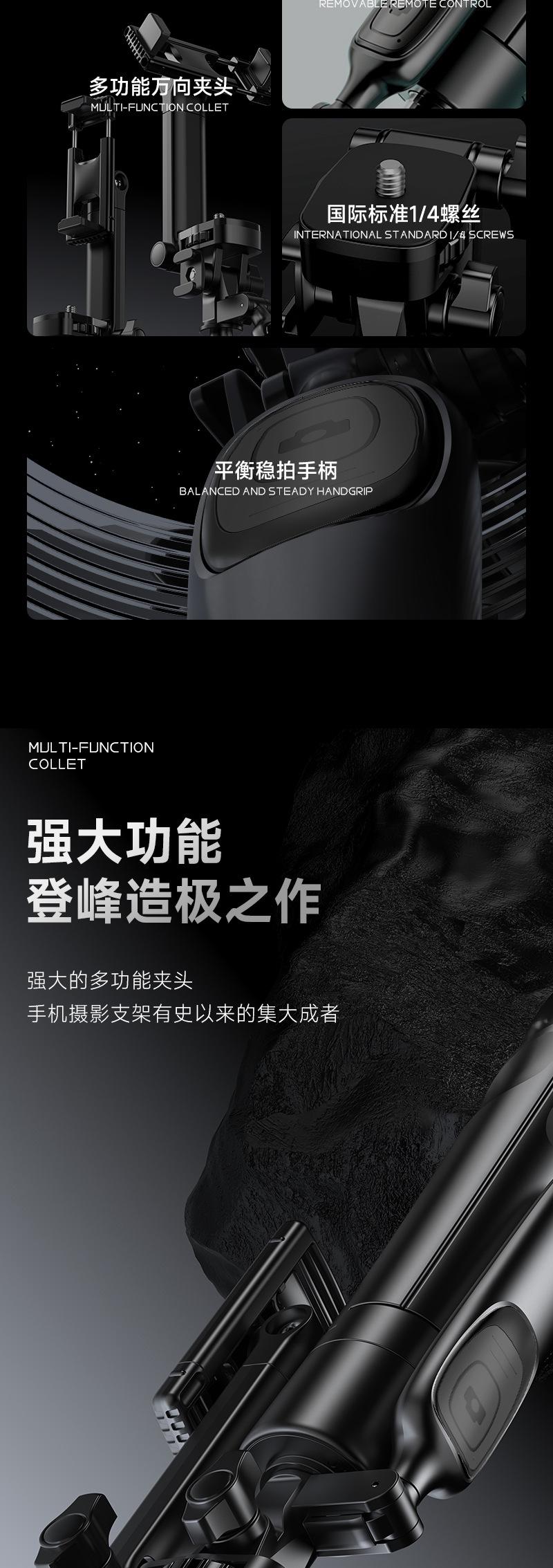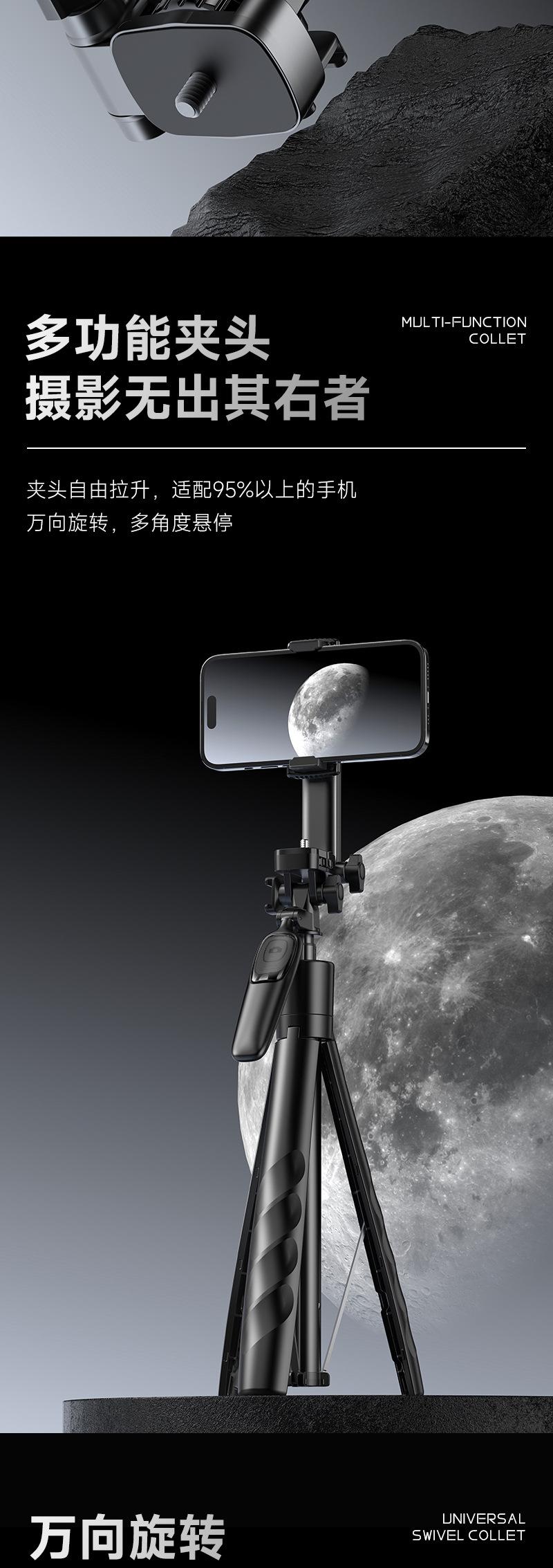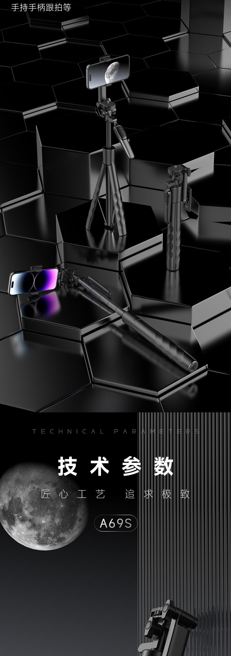 Soporte para teléfono móvil A69S apilado Clip universal Bluetooth Palanca para selfies de mano Trípode telescópico de piso para transmisión en vivo