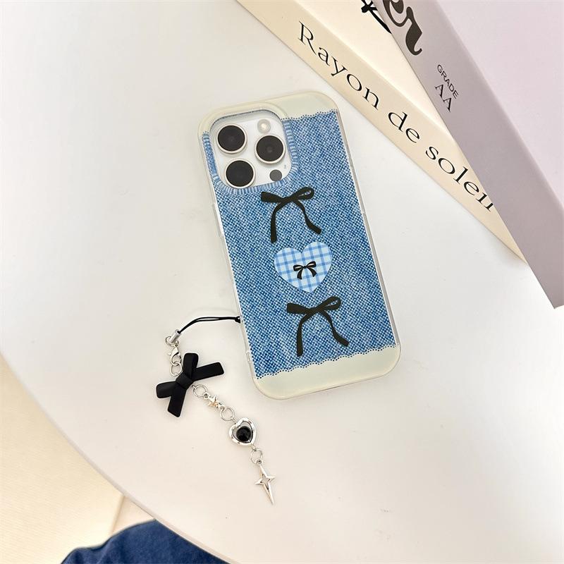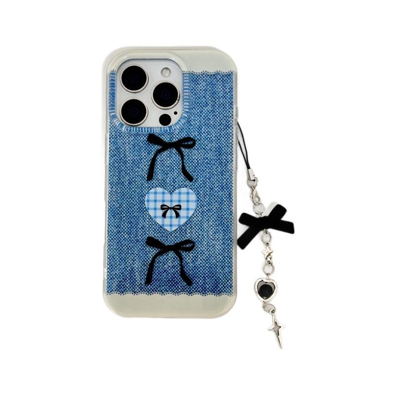 Denim bottom love bow + pendant, Denim bottom love bow [single shell]