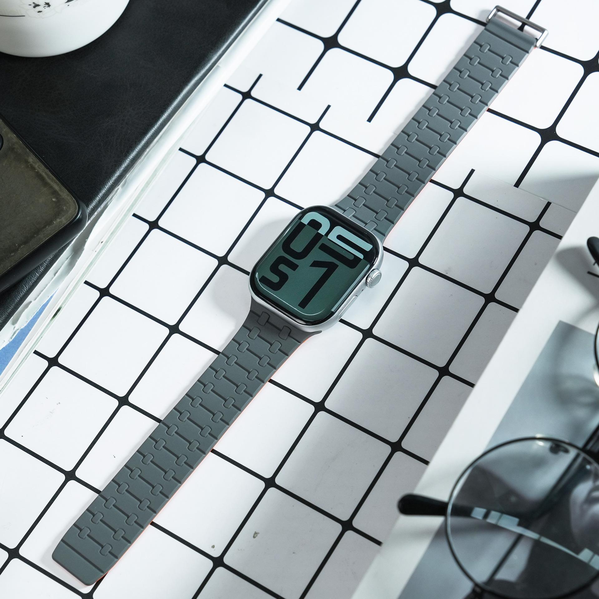 Adecuado para Apple Watch S1-11 Generación Correa Magnética de Silicona Correa para Reloj iWatch con un Acabado de Alta Gama