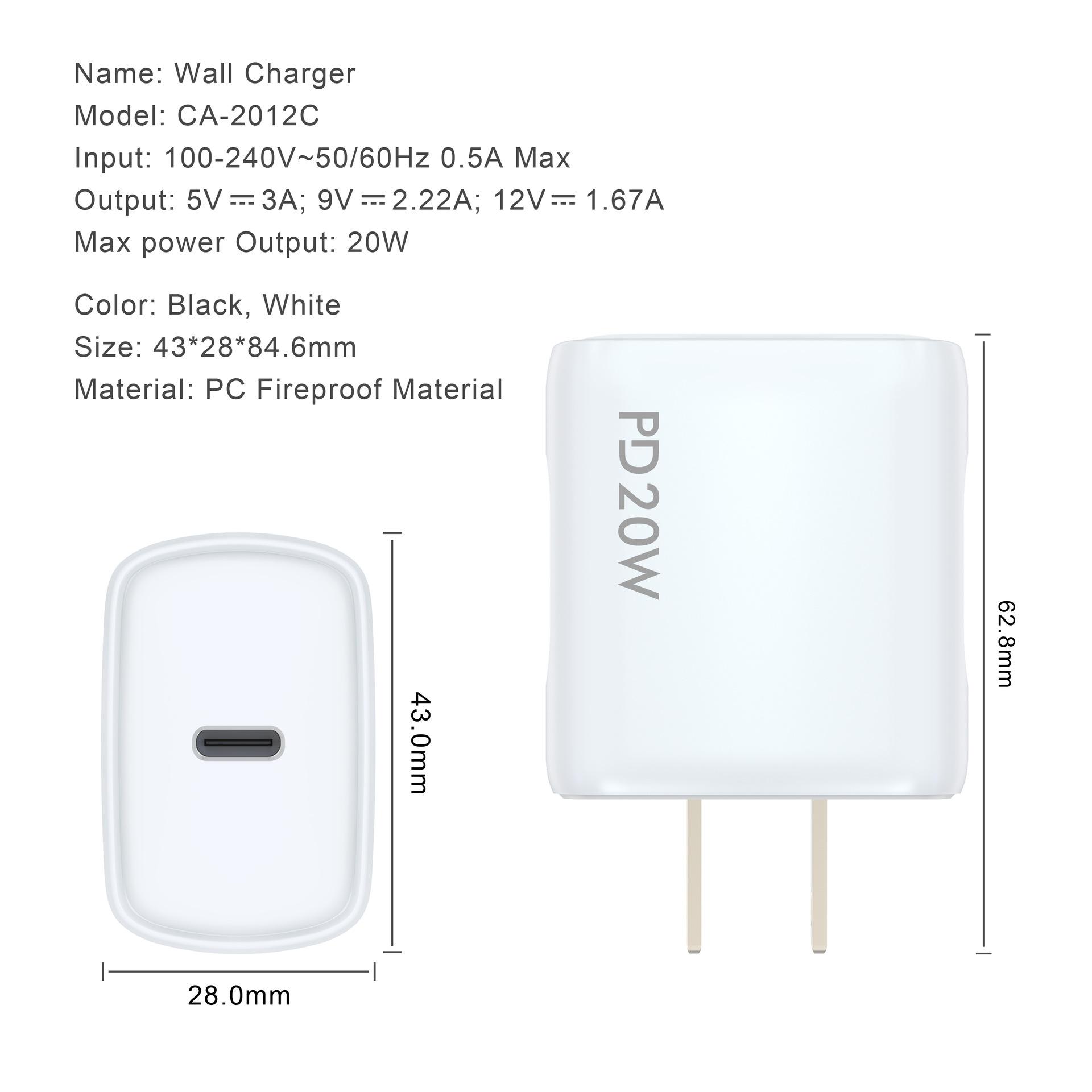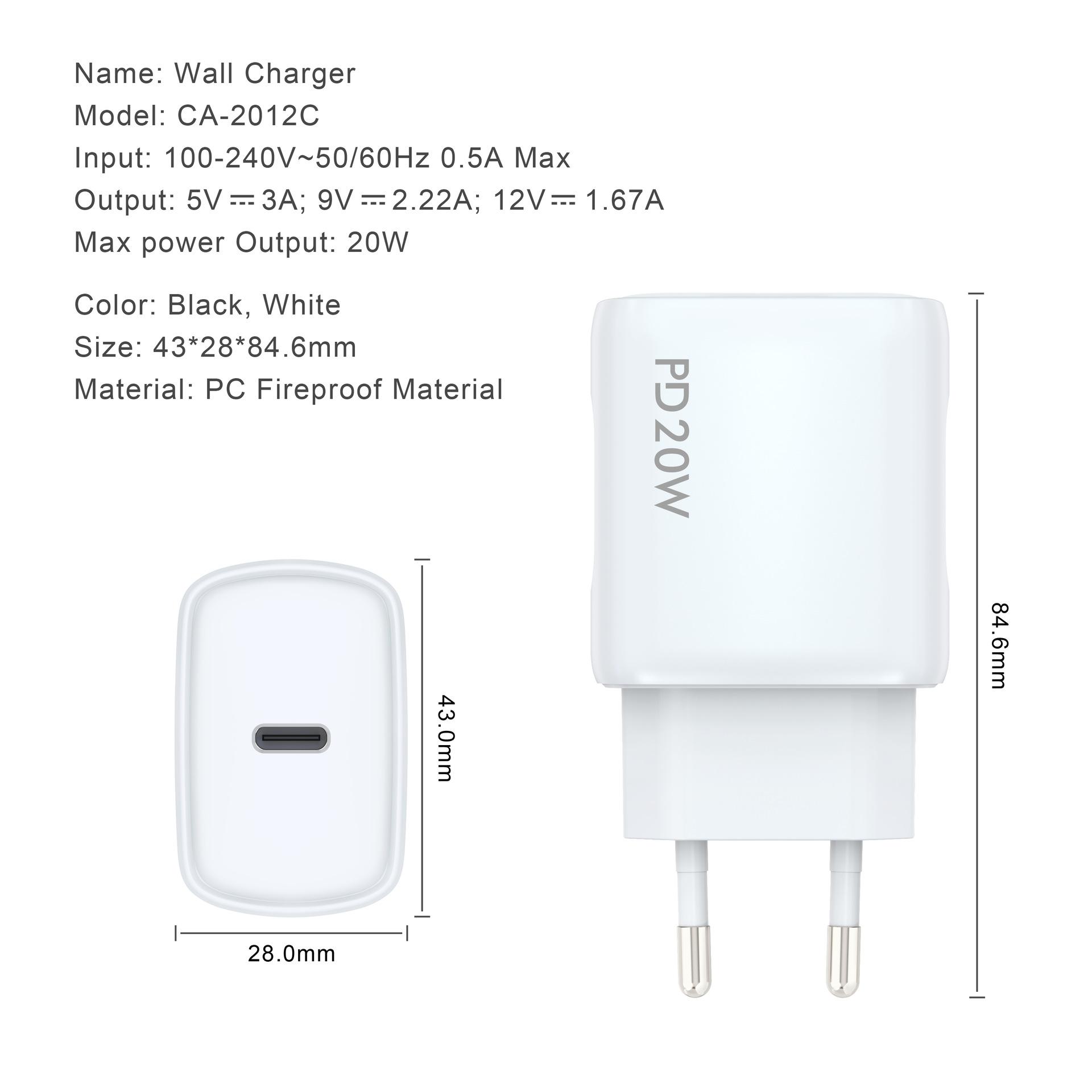 Nuevo Cargador de Carga Rápida Transfronterizo Pd20W Tipo-C 20W Multiprotocolo Adecuado para Carga Rápida Apple Cabezal de Carga