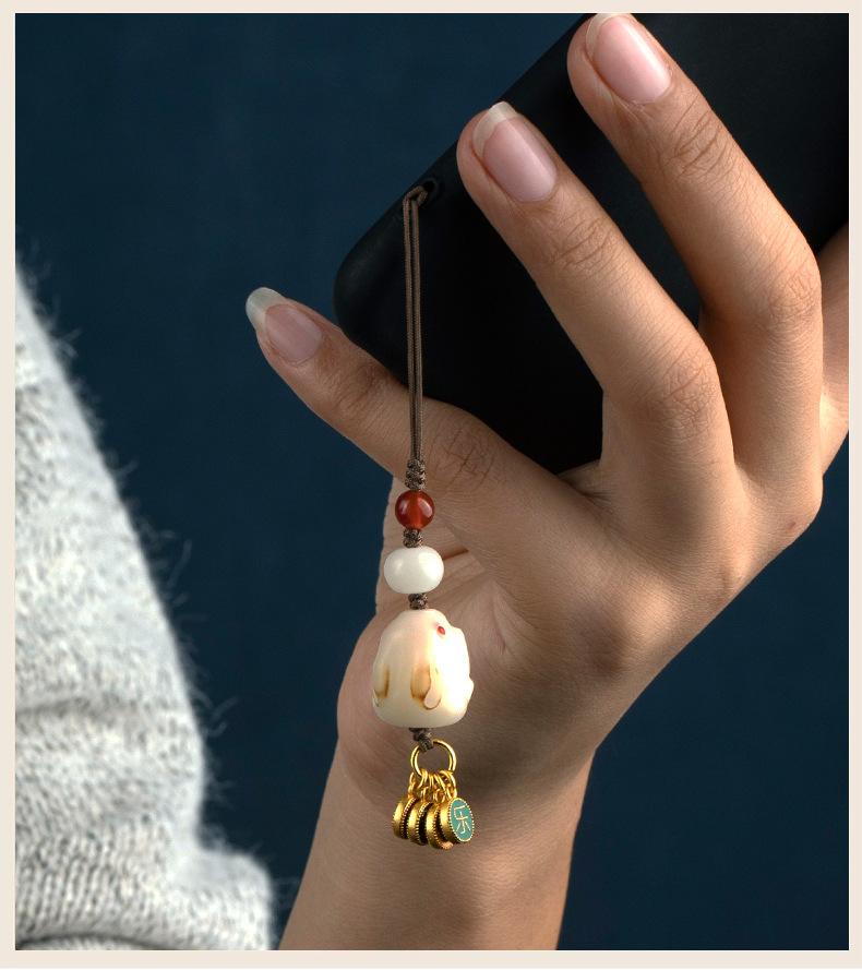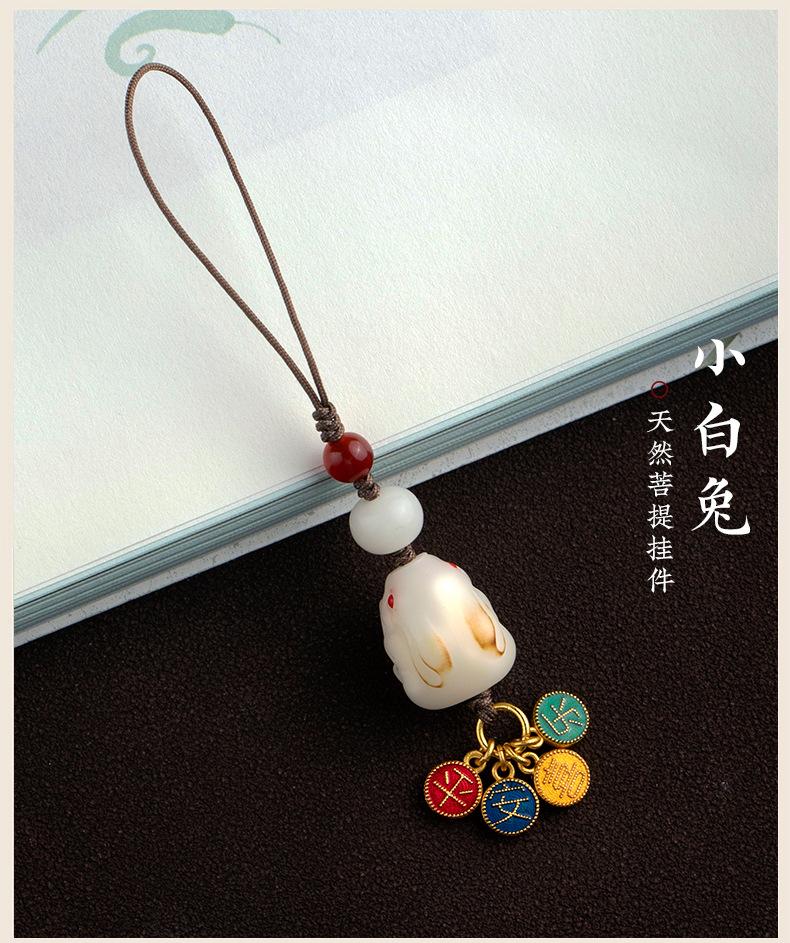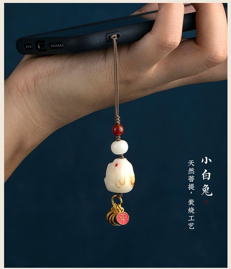Cordón para teléfono móvil año del conejo colgante para teléfono móvil de bodhi color carbón colgante de conejito lindo y reconfortante exquisita bolsa para unidad USB