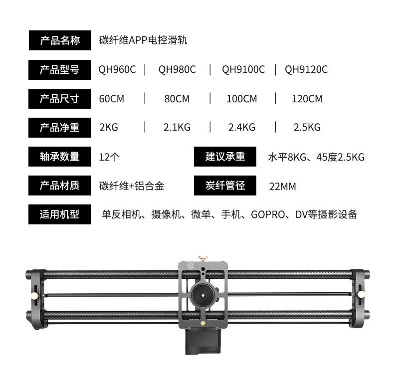 Diapositiva eléctrica APP de fibra de carbono de era montada en luz con enfoque SLR Grabación de producto de video y grabación de diapositivas