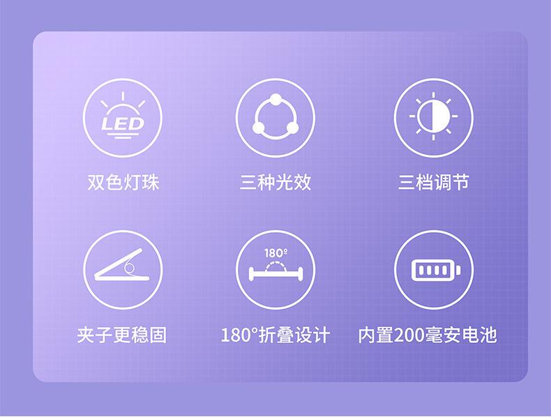[lilac purple] fill light★Selfie mirror★Free type-c data cable