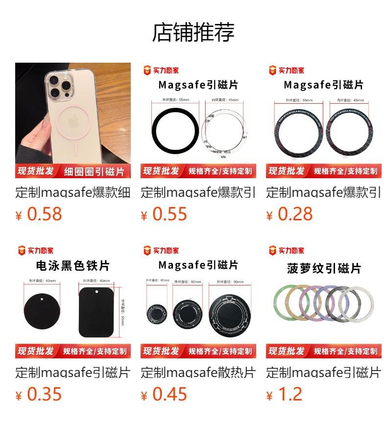 Lámina magnética MagSafe 55*45 brillo soporte magnético adhesivo plegable para teléfono móvil carga inalámbrica magnética al por mayor