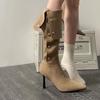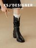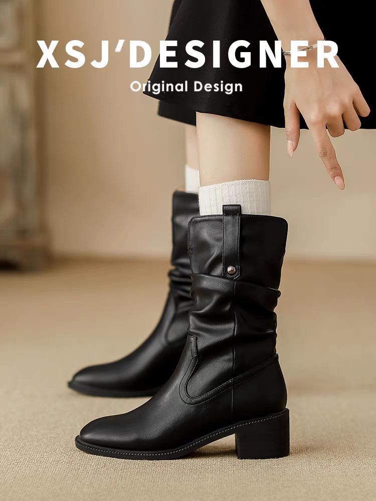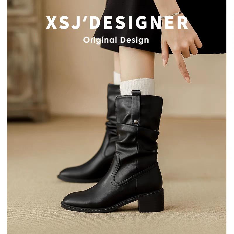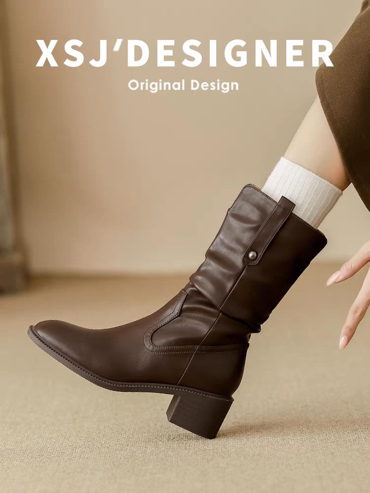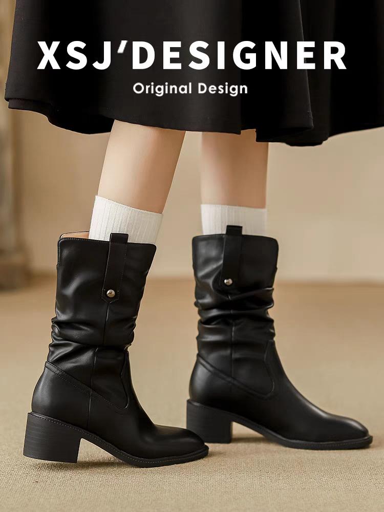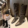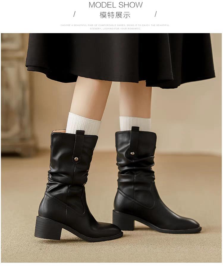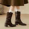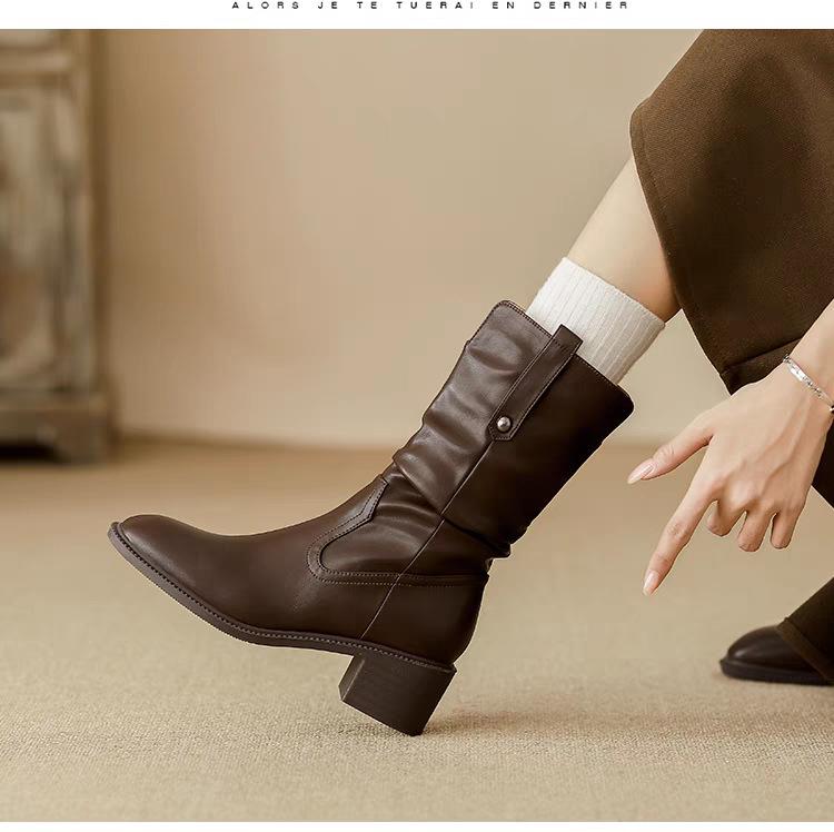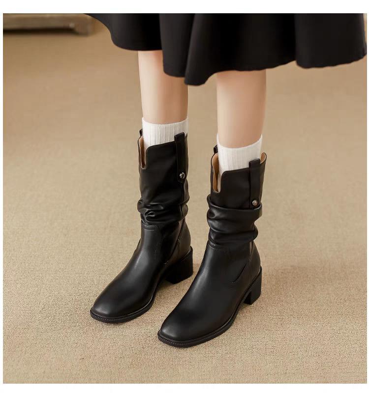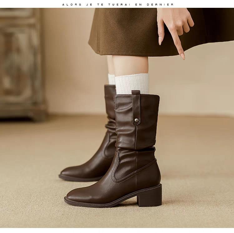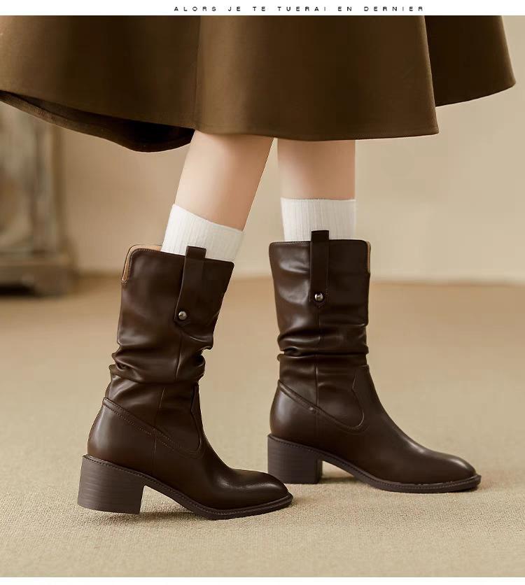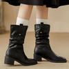 Botas de Tacón Grueso de Tacón Medio para Mujer 2024 Nuevas Retro Vaqueras del Oeste Botas de Montón de Tacón Medio Botas de Caballero Botas Ajustadas