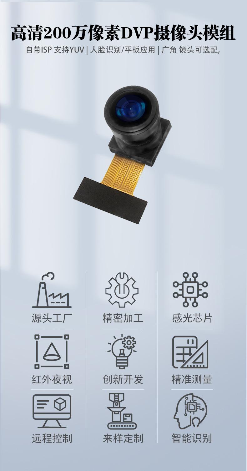 Módulo de cámara plana DVP con reconocimiento facial gran angular YUV de 2 millones de píxeles y compatibilidad con ISP GC2155