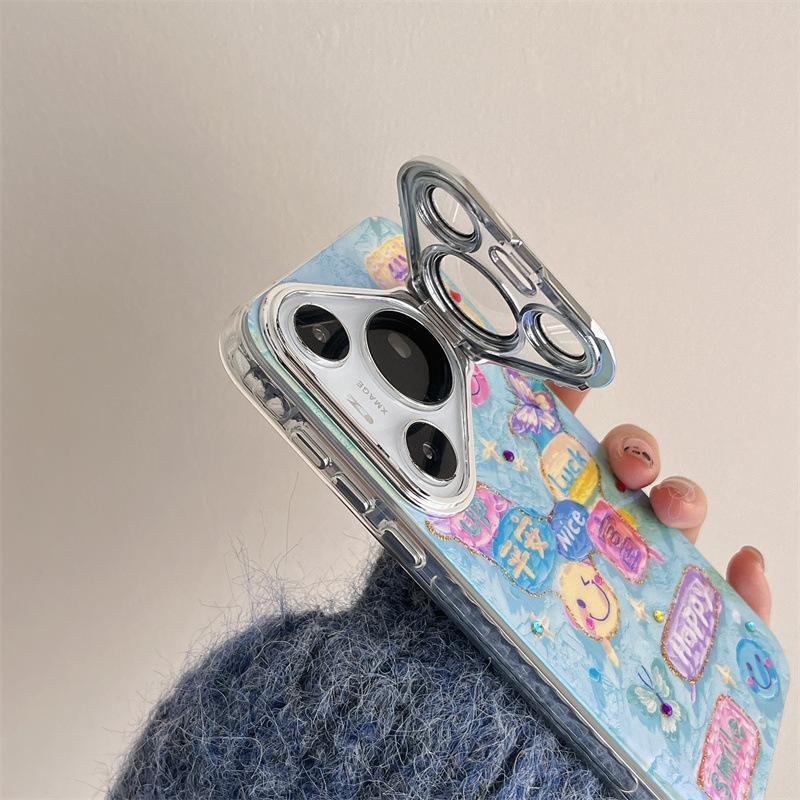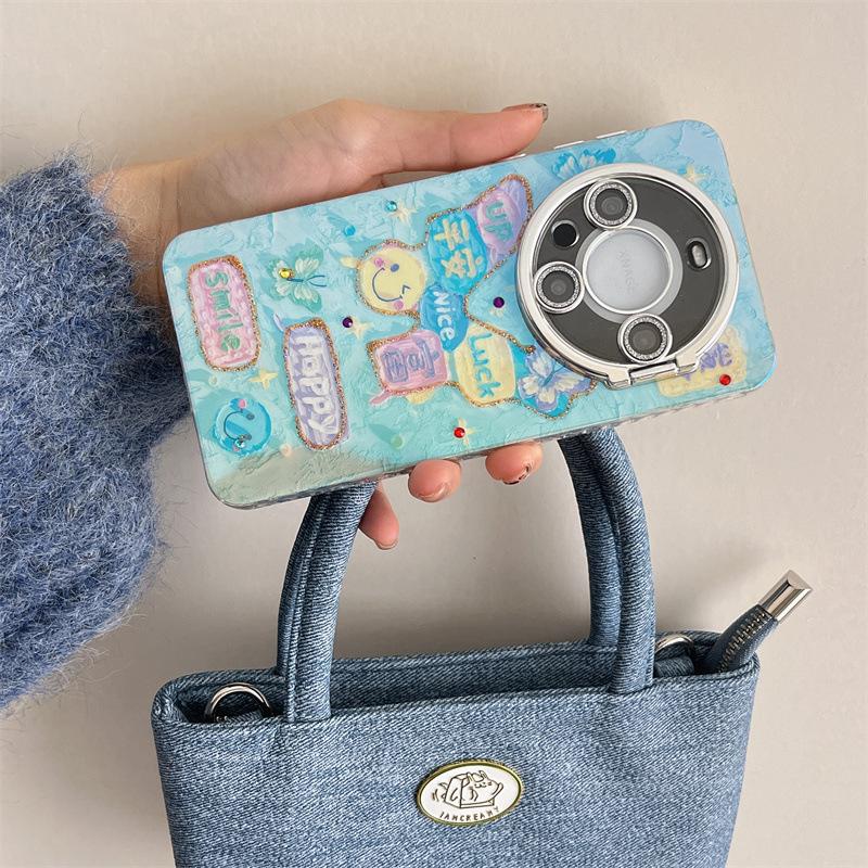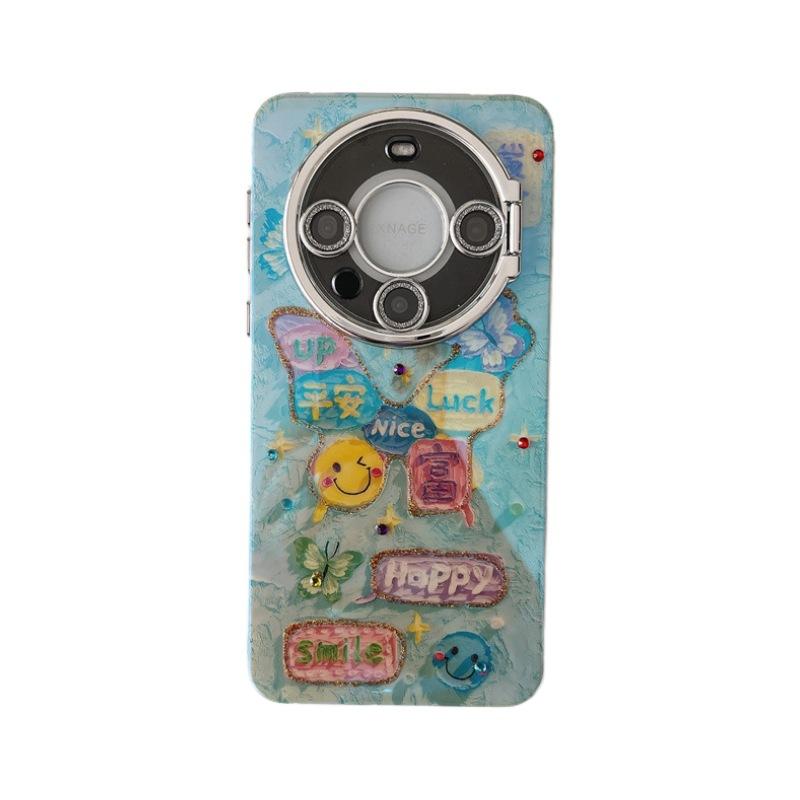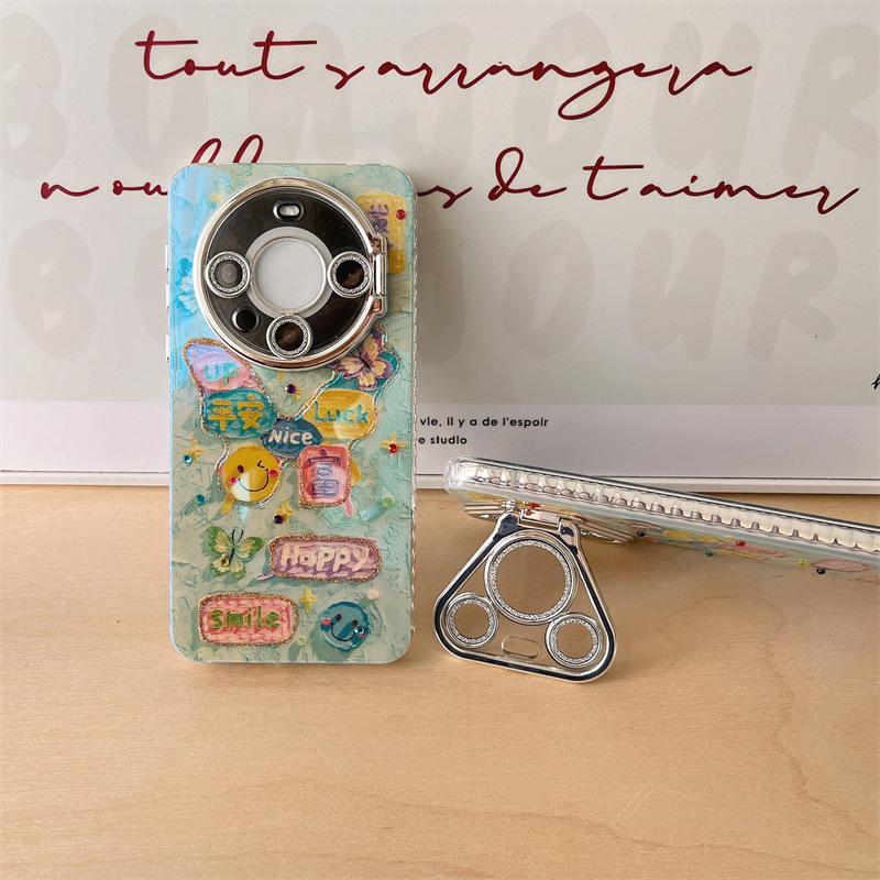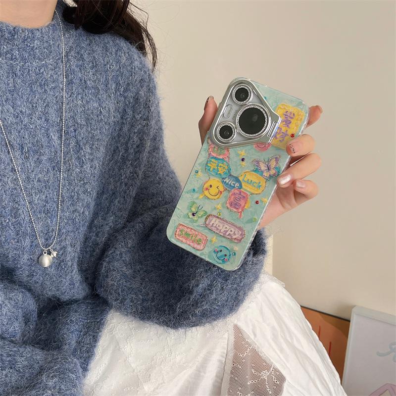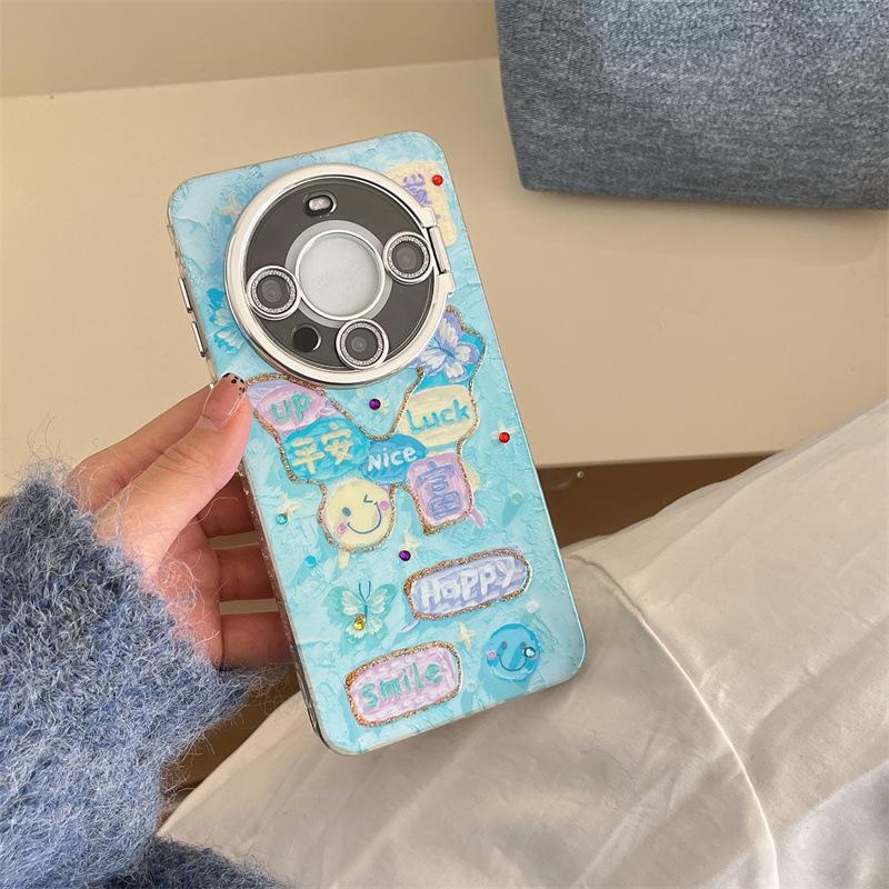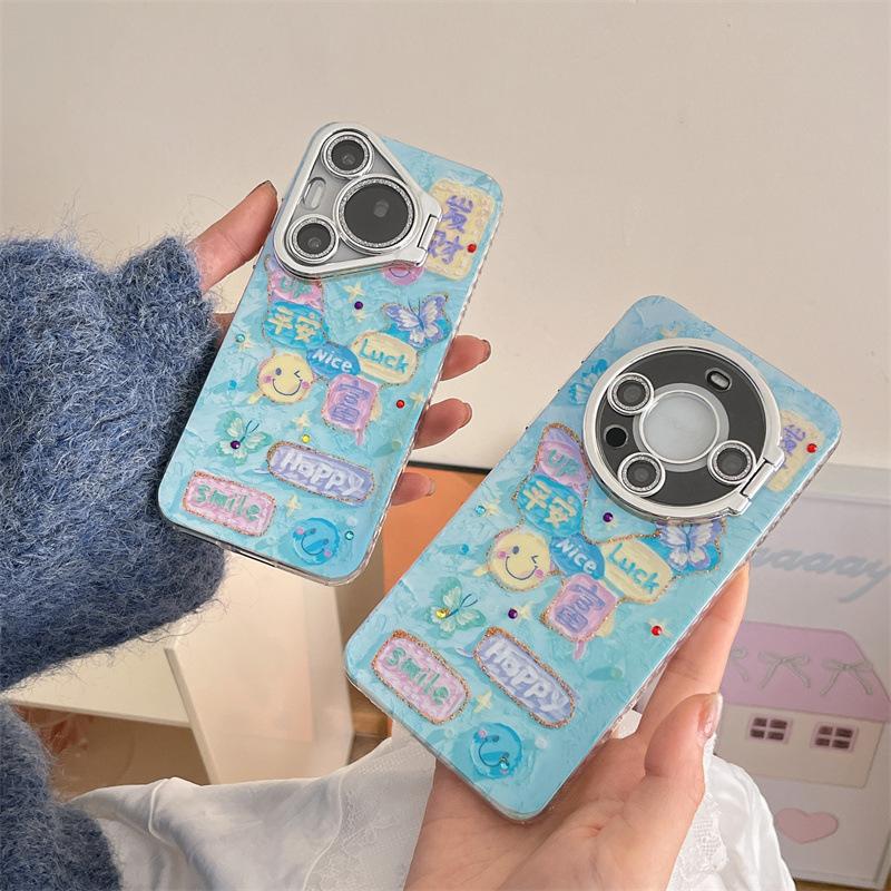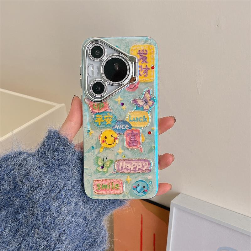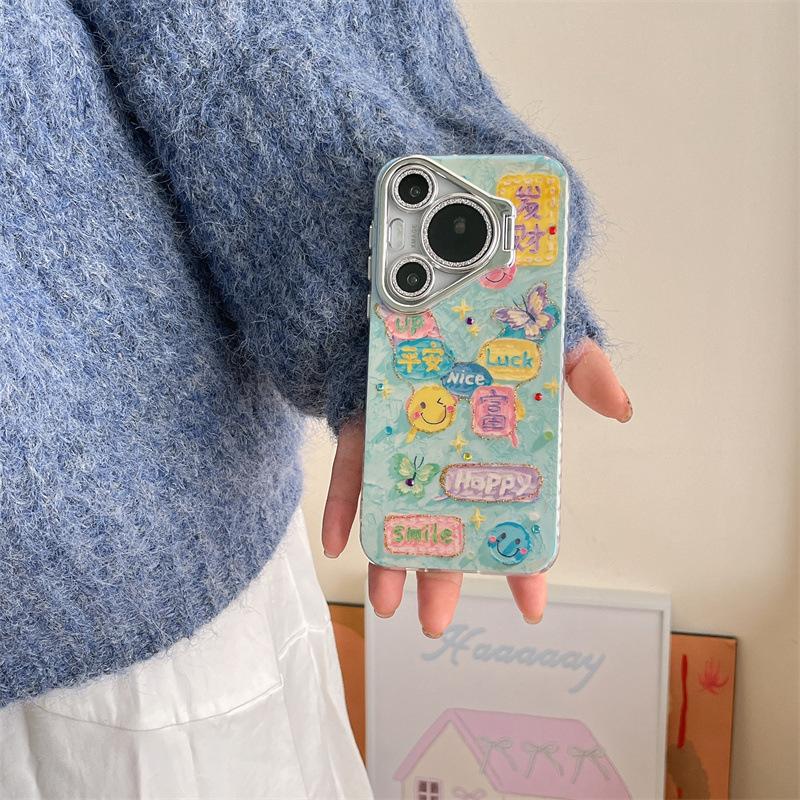 Texto de la fortuna de dibujos animados para la funda del teléfono Huawei Mate70 Pro, soporte para lente del P60, Blu-ray Mate60, P70