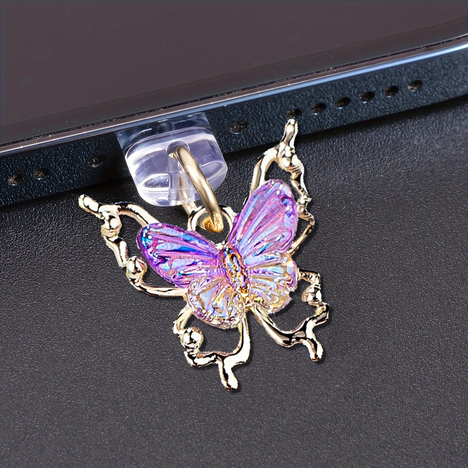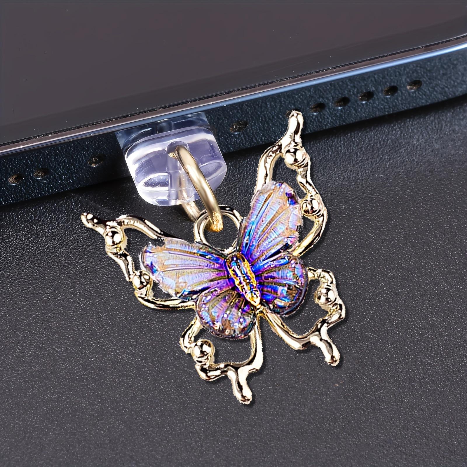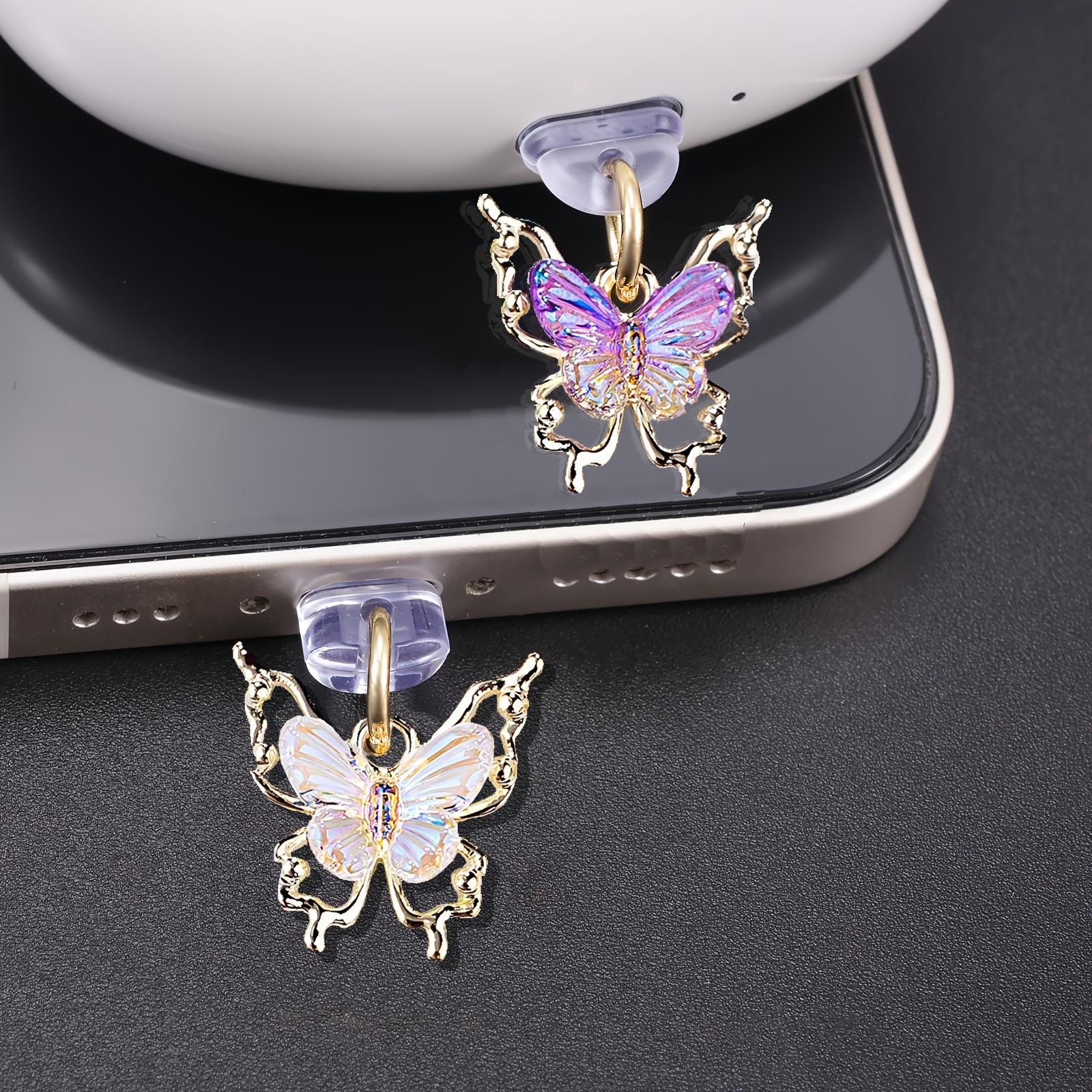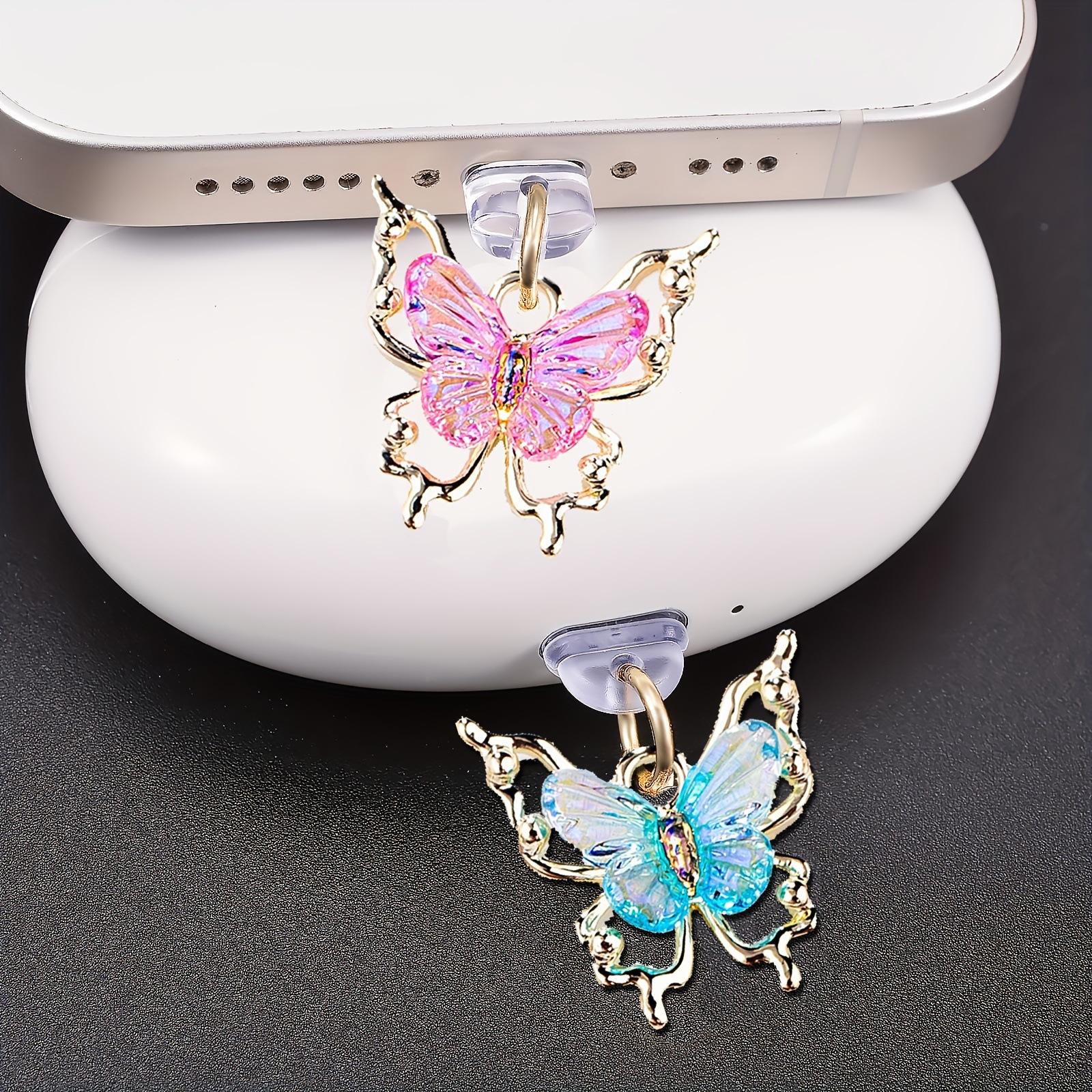 Tapón antipolvo de silicona transfronterizo USB tipo C para teléfono móvil, con degradado de mariposa, puerto de carga de metal, tapón antipolvo para auriculares