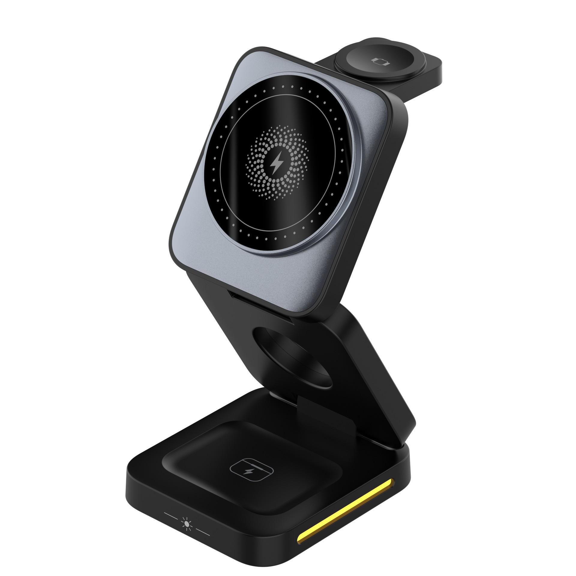 Nuevo cargador inalámbrico magnético transfronterizo cuatro en uno para teléfono móvil, carga rápida, soporte plegable, reloj, auriculares, carga inalámbrica
