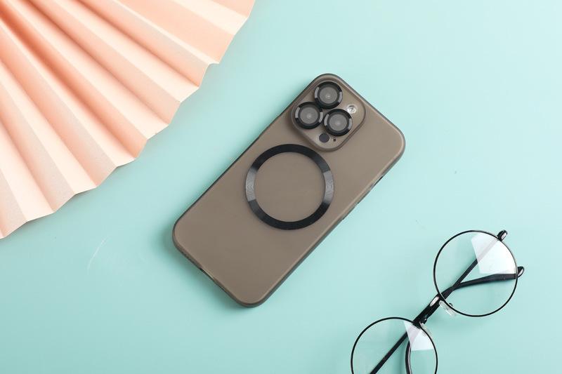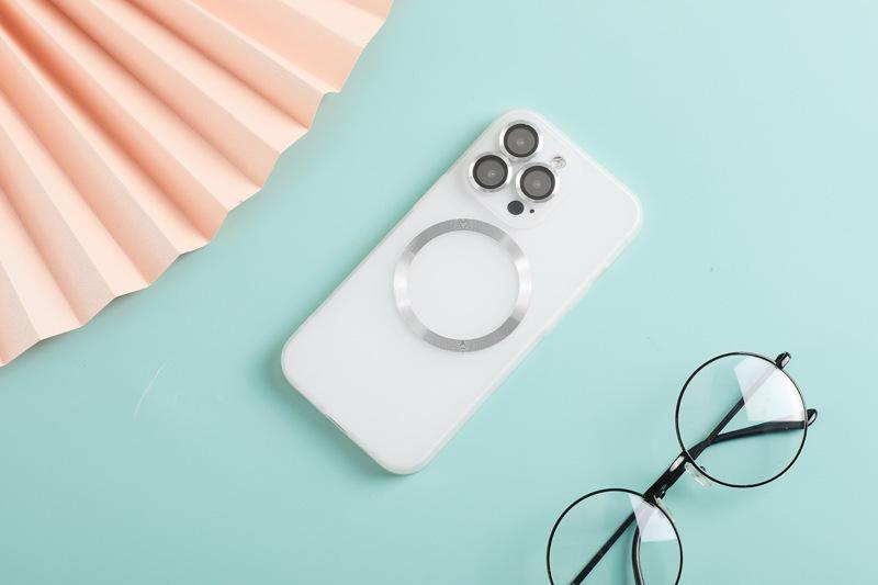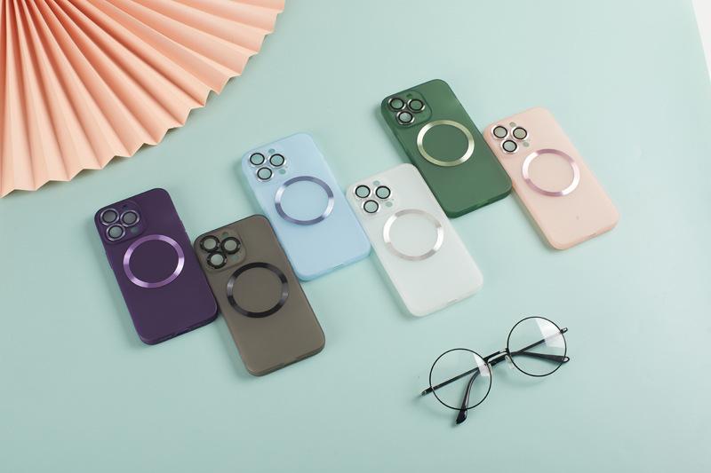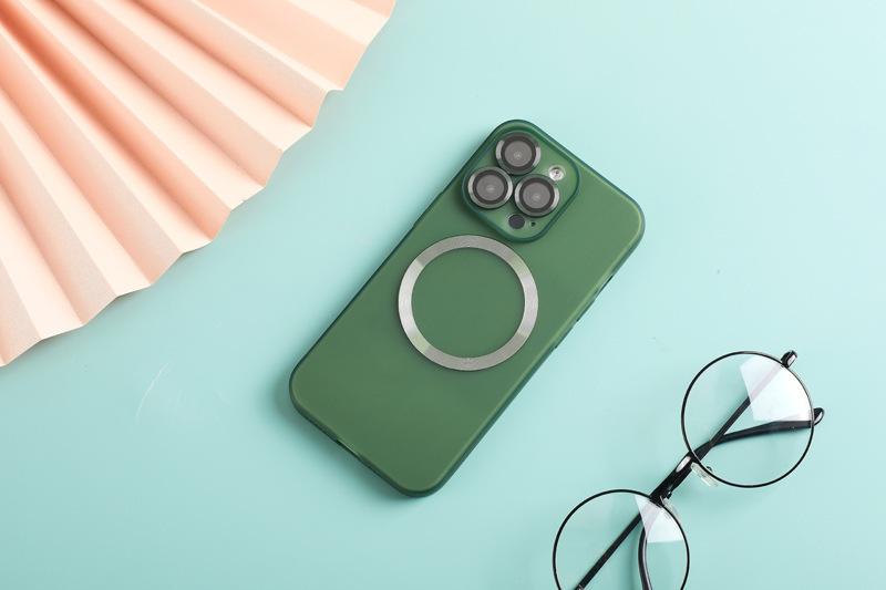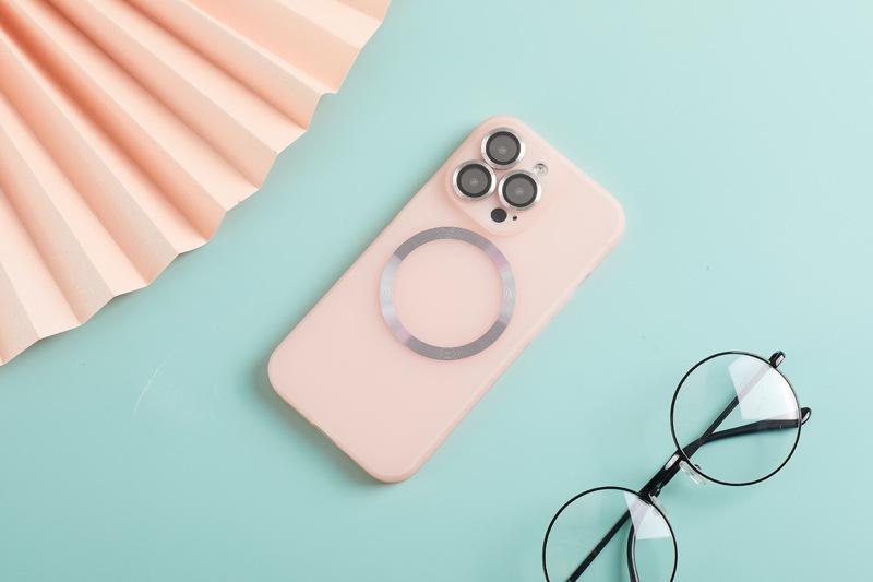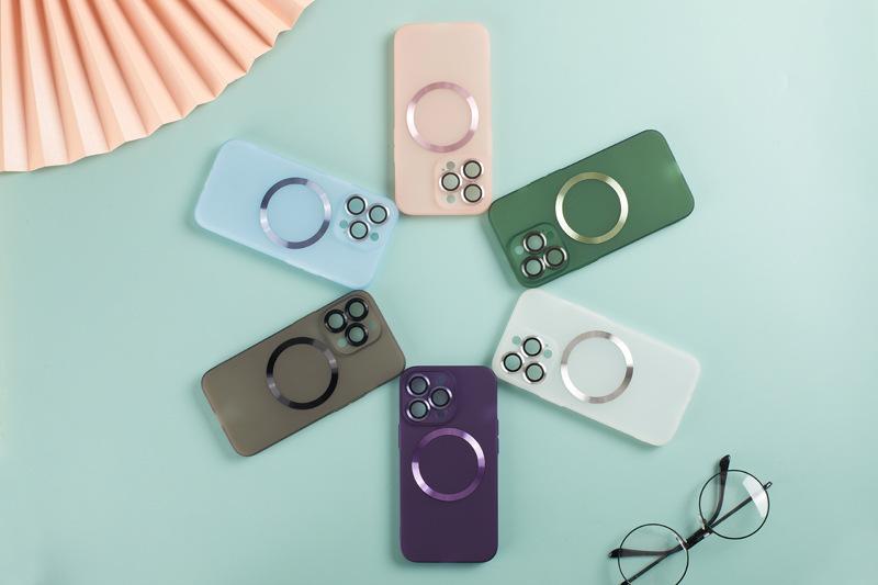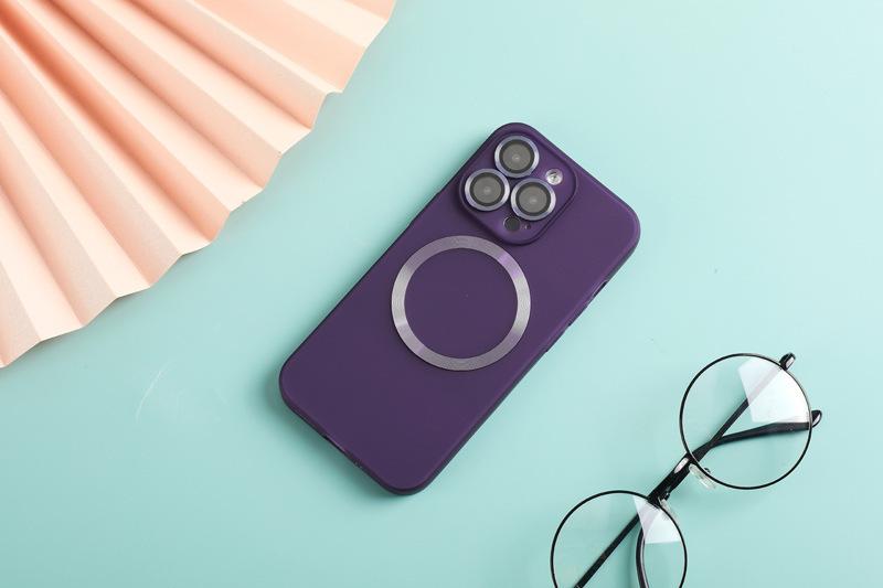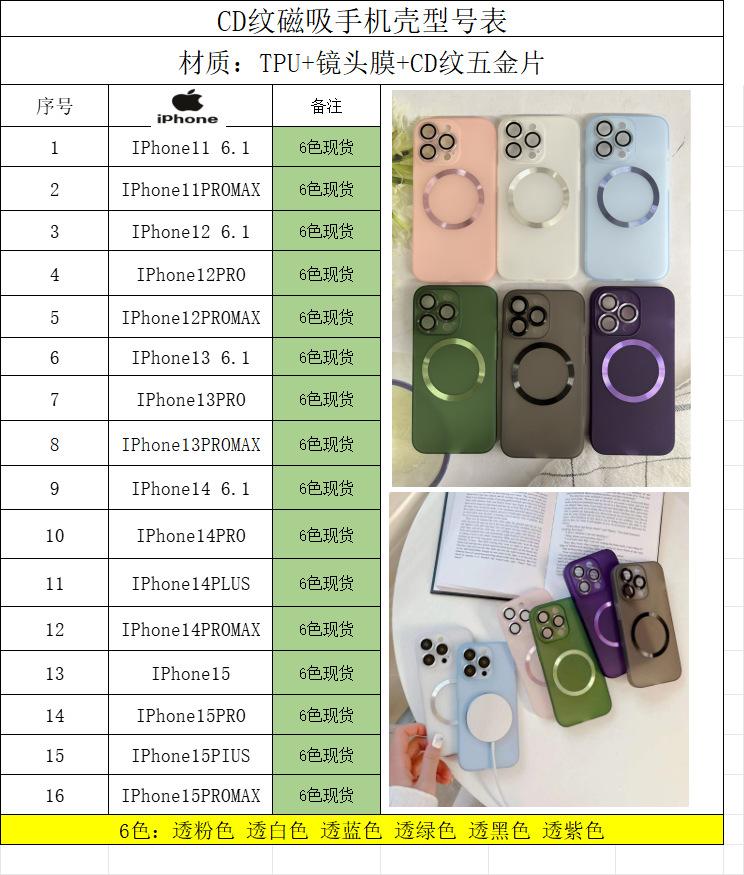 Adecuado para iPhone 15, funda para teléfono móvil con sensación de piel y succión magnética, funda protectora Apple 14/13promax con patrón de CD, funda con succión magnética