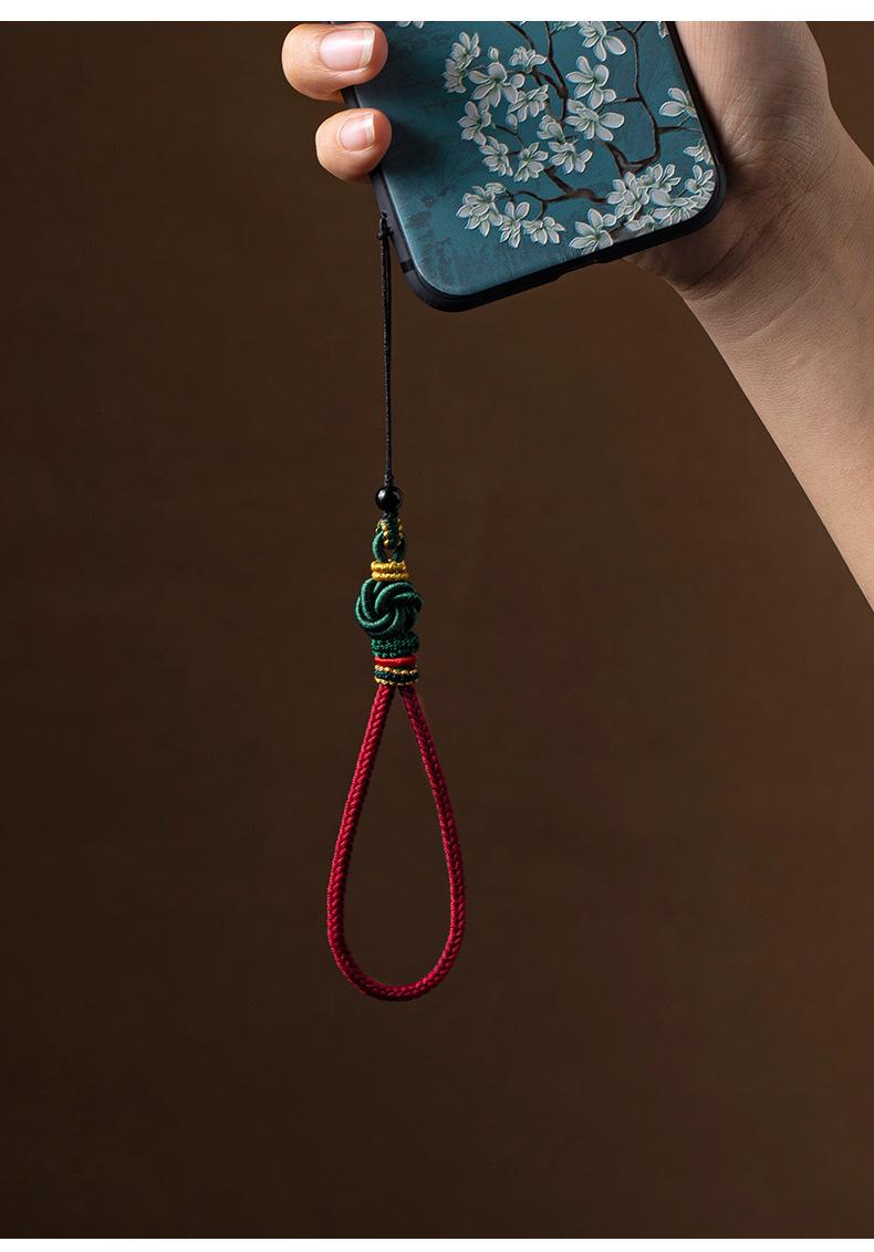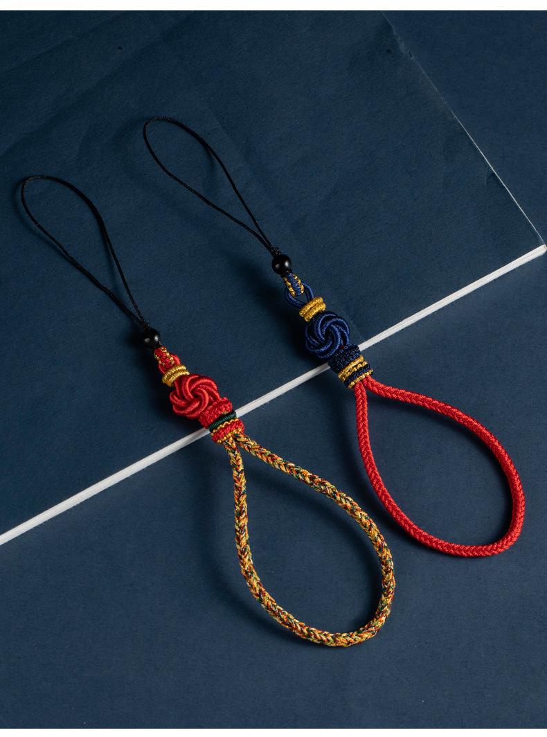 Cordón para teléfono móvil, estilo chino, retro, tejido a mano, correa para la muñeca, sólido, resistente a caídas, colgante antipérdida para hombres y mujeres