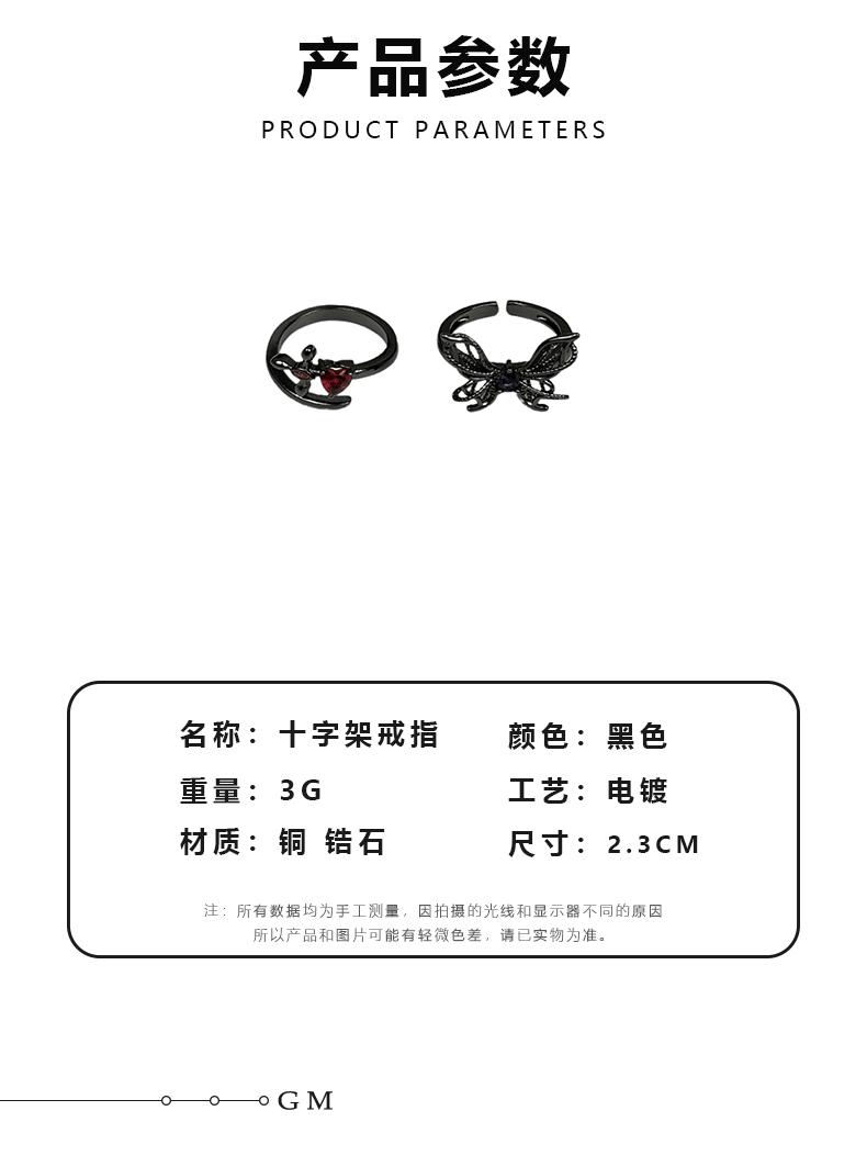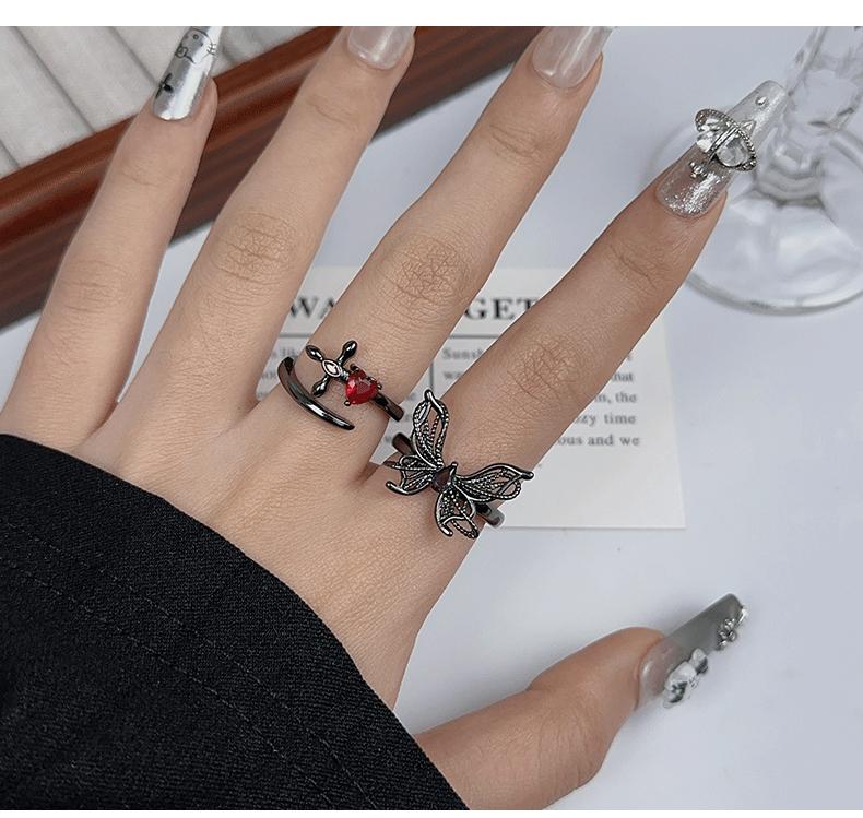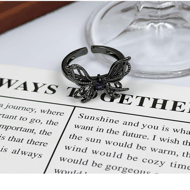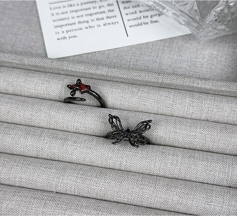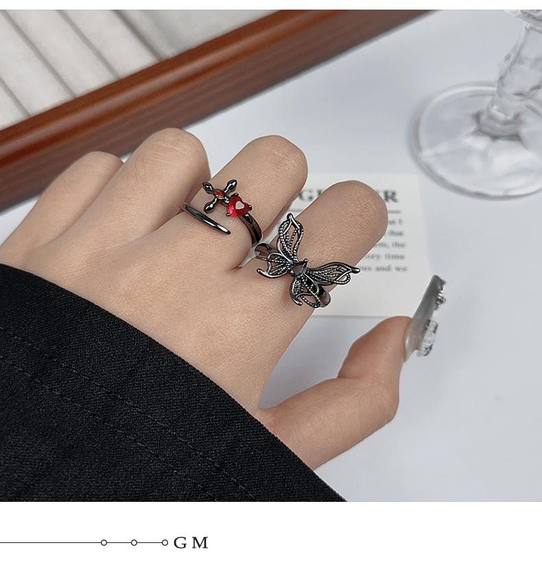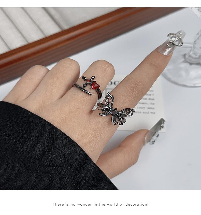 Anillo abierto dulce y fresco con forma de mariposa y cruz, estilo oscuro, punk, ligero, de lujo, de alta sensibilidad, personalizado, con especias.