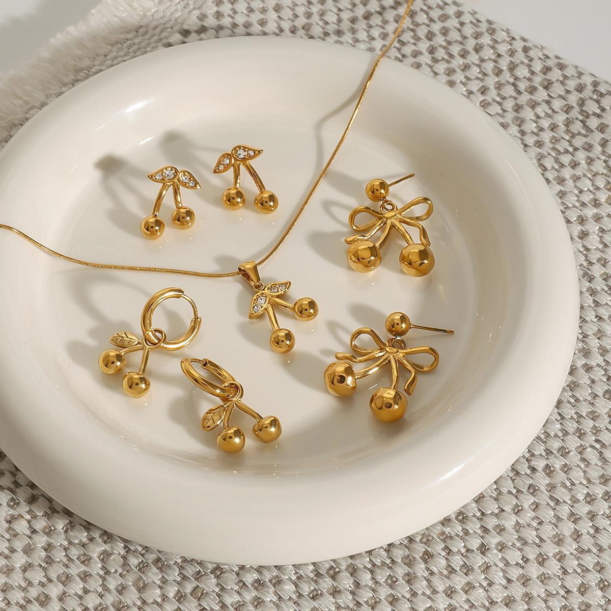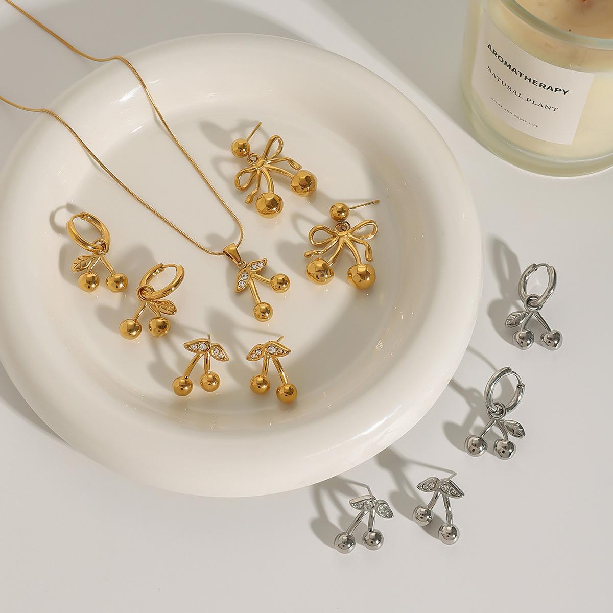Collar de cerezas de acero inoxidable europeo y americano Jieding, pendientes bonitos de alta calidad, joyería para el día de San Valentín, pendientes de acero de titanio para mujeres transfronterizas
