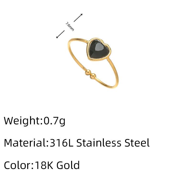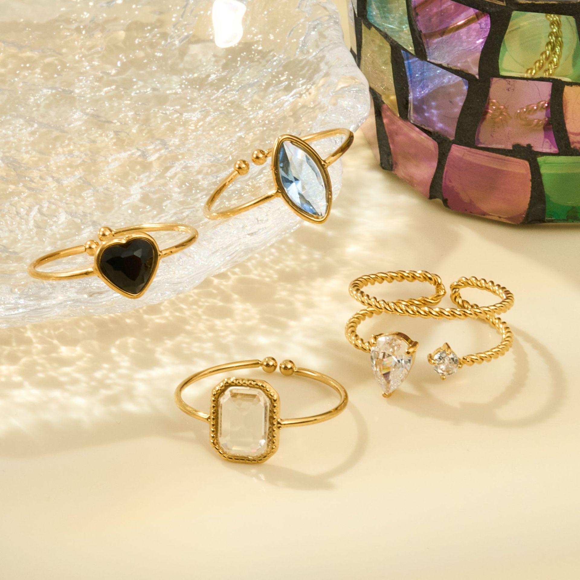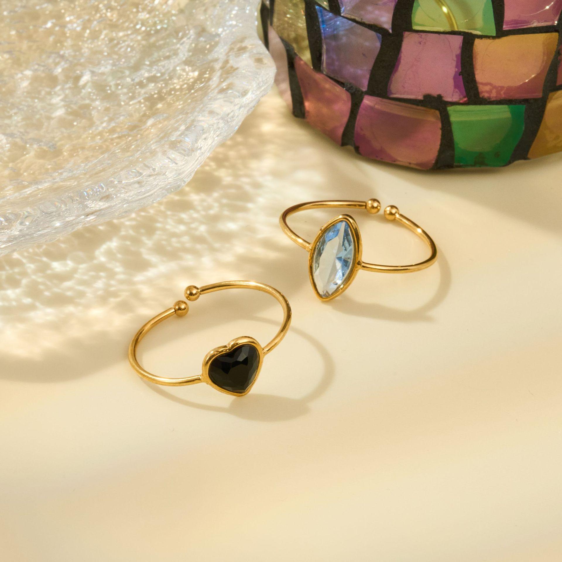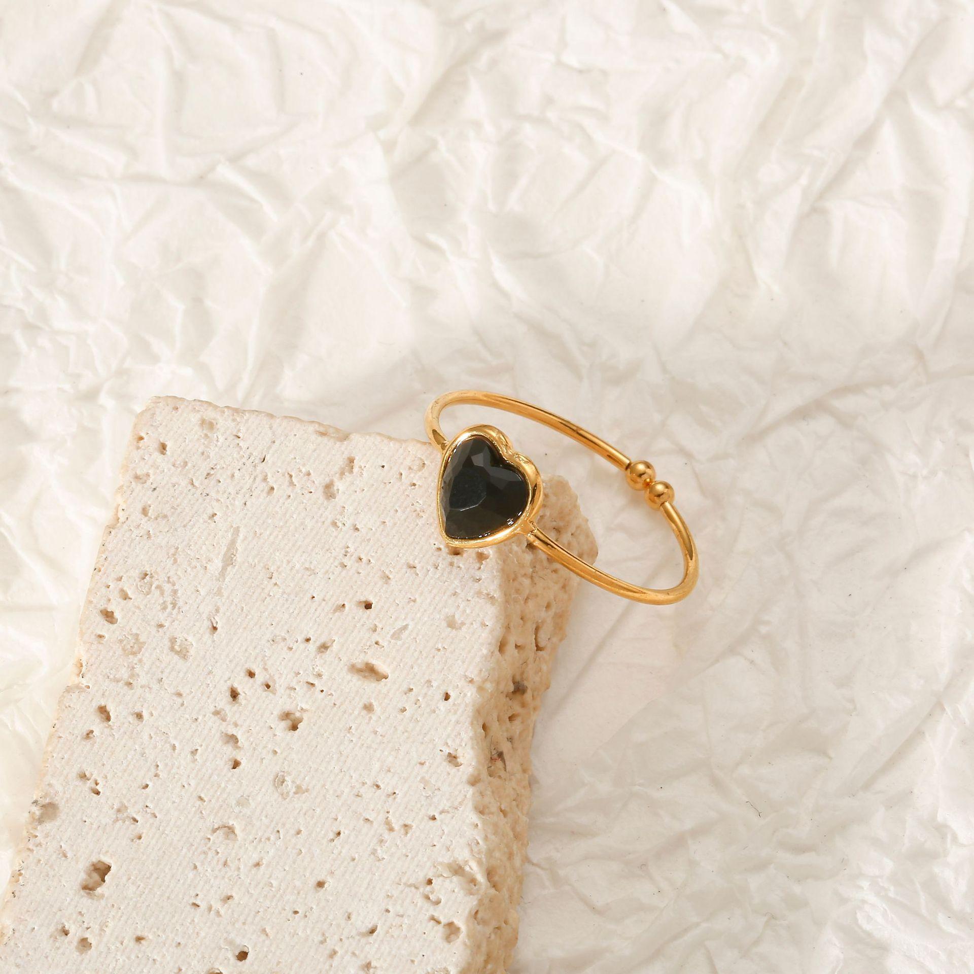 Anillo de mujer de acero de titanio con diamantes franceses y apertura ajustable con diseño de lujo dorado y luz, acero inoxidable con forma de corazón.