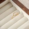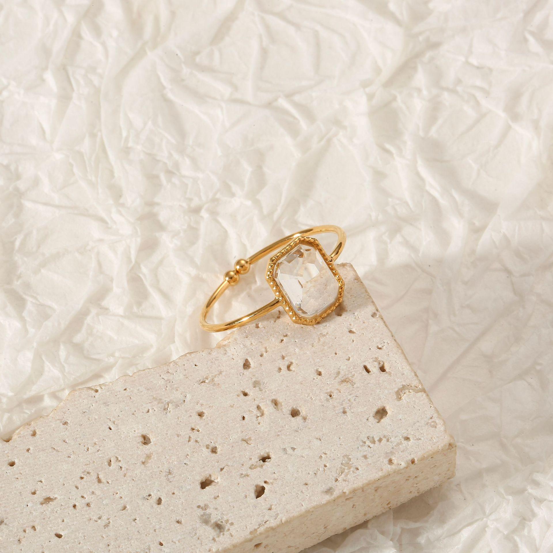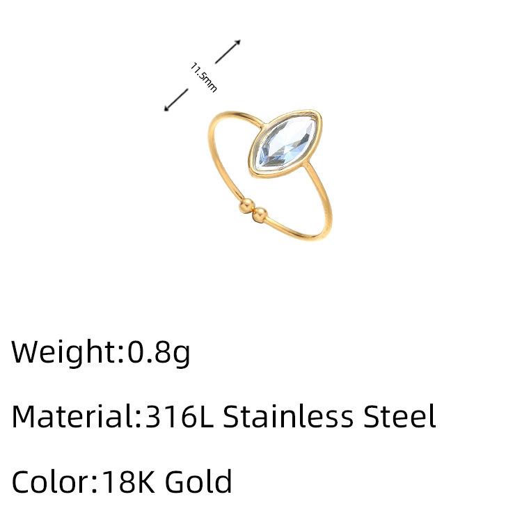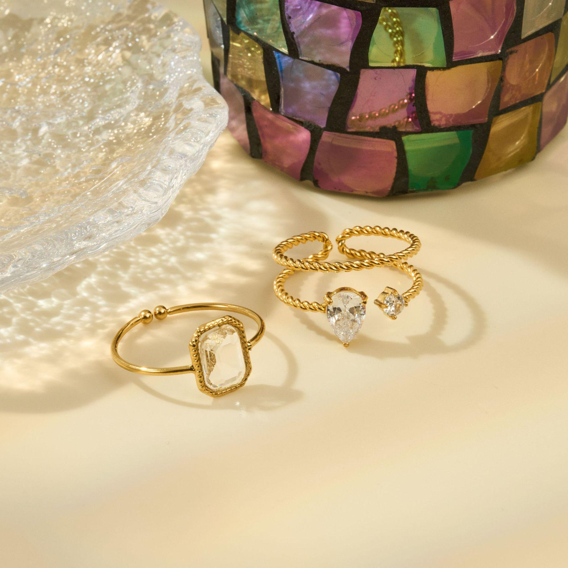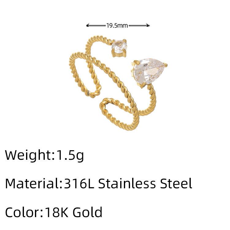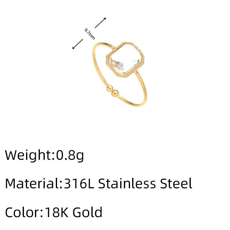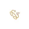 Anillo de mujer de acero de titanio con diamantes franceses y apertura ajustable con diseño de lujo dorado y luz, acero inoxidable con forma de corazón.