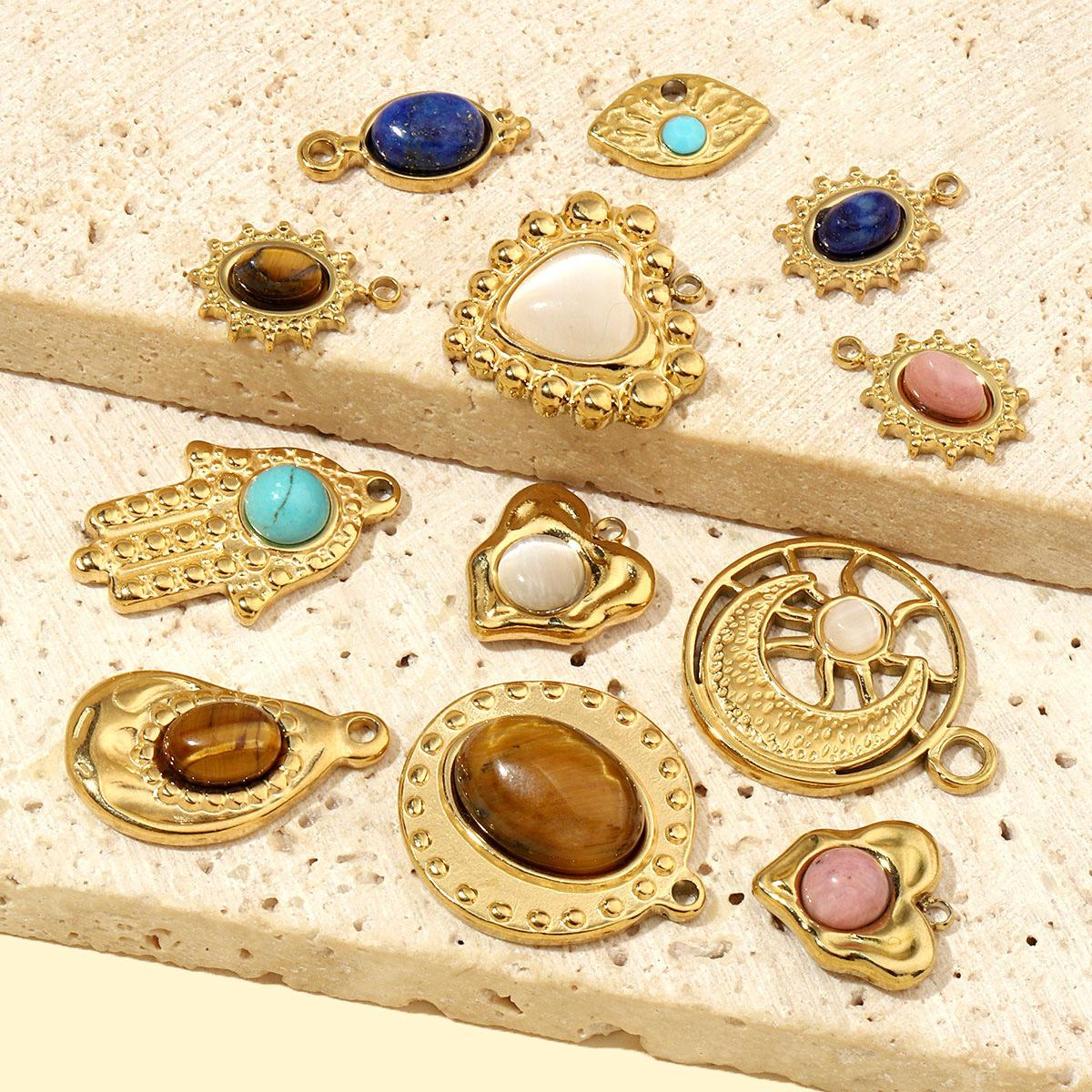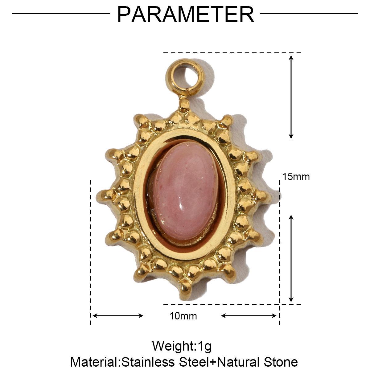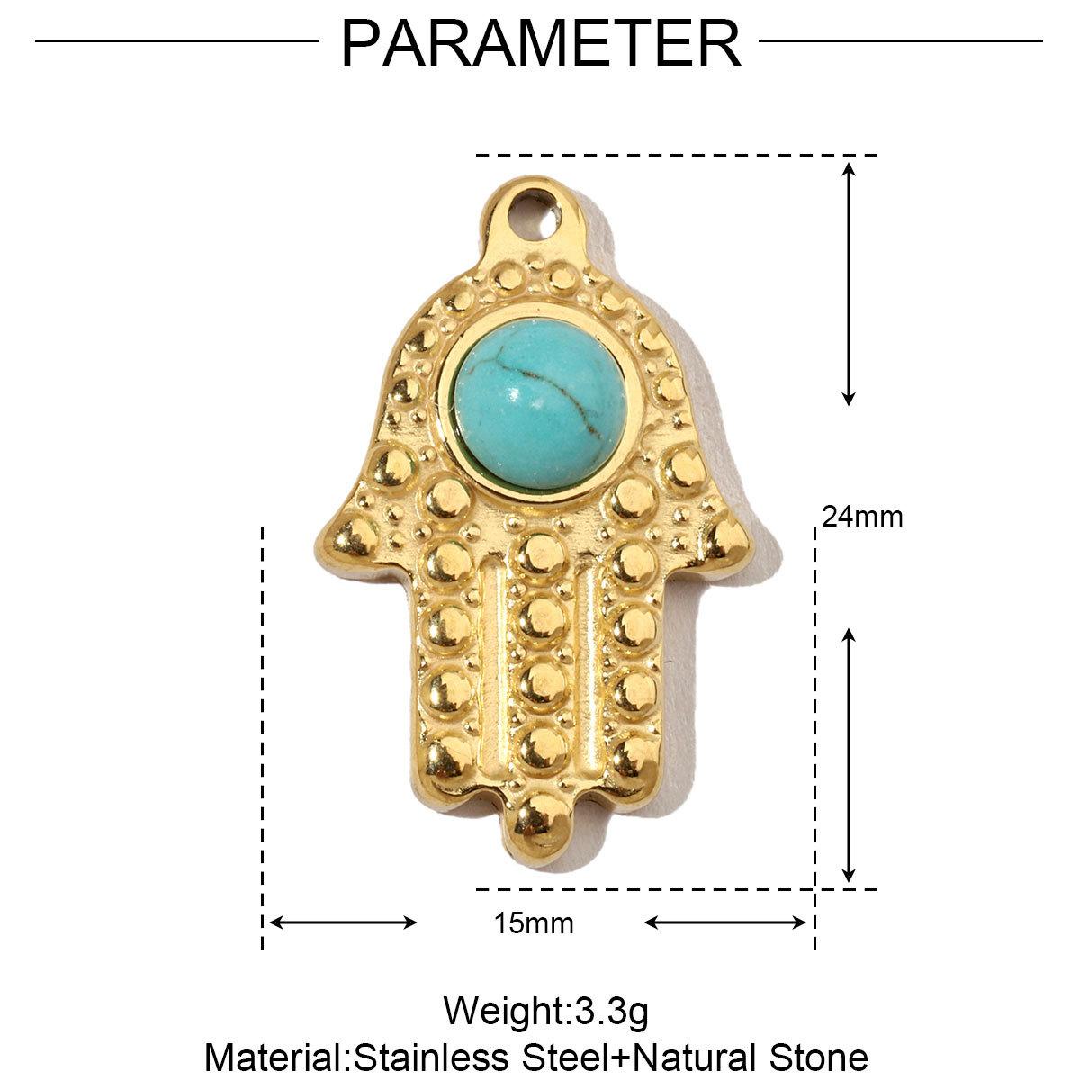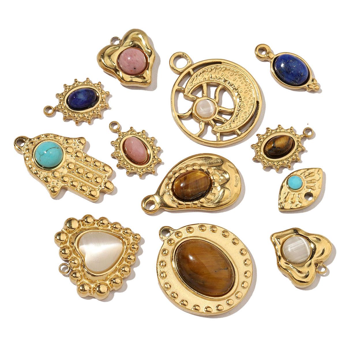 Colgante de acero inoxidable con forma de luna francesa, piedra natural, titanio y bricolaje, para mujer, con forma ovalada, de acero inoxidable, con forma de palma
