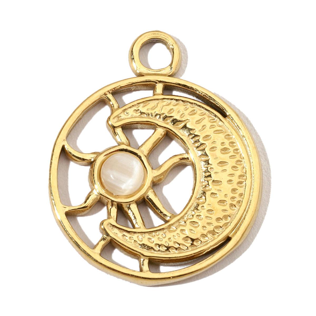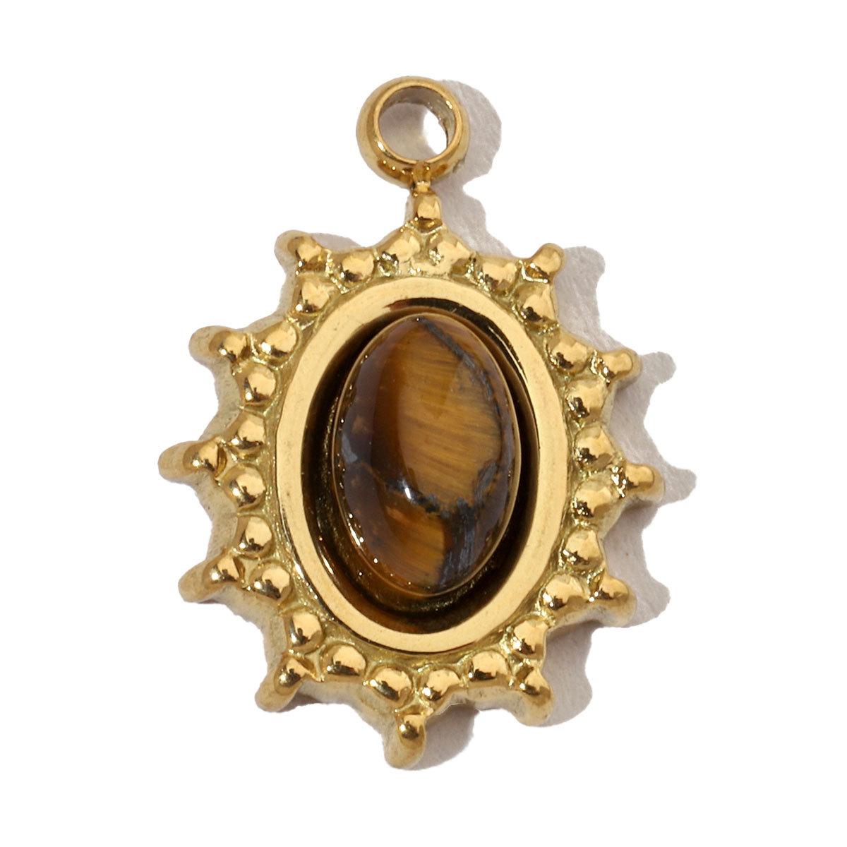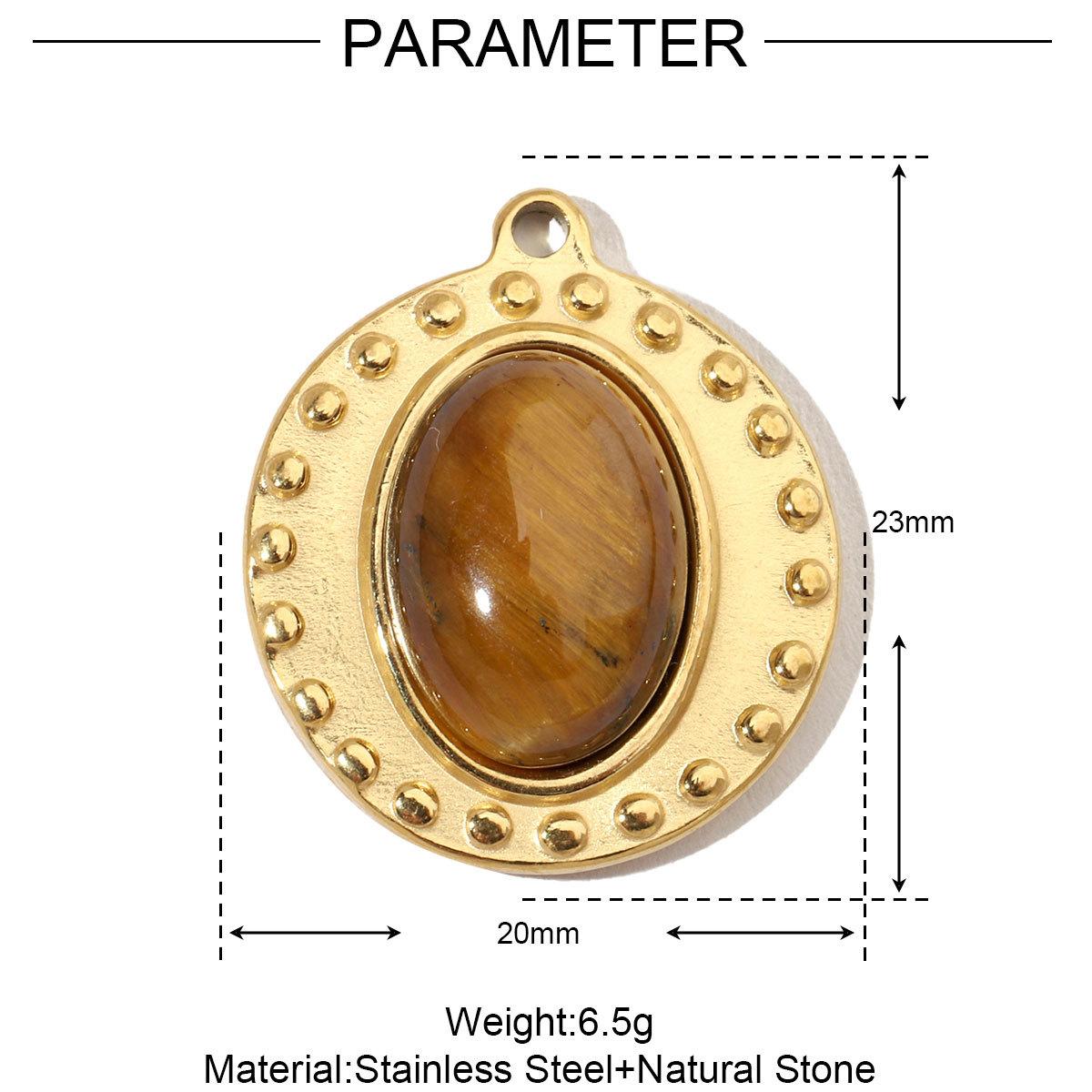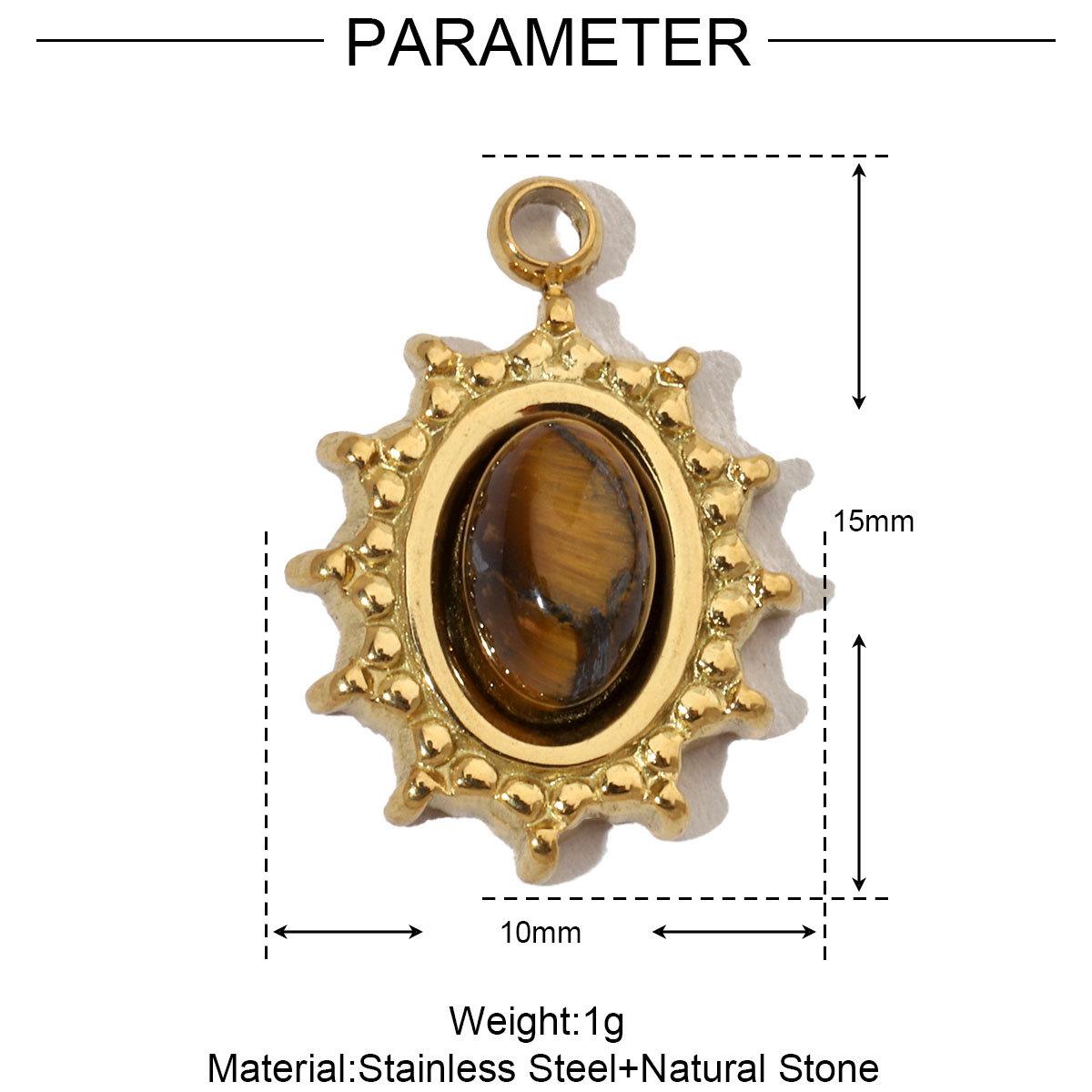 Colgante de acero inoxidable con forma de luna francesa, piedra natural, titanio y bricolaje, para mujer, con forma ovalada, de acero inoxidable, con forma de palma
