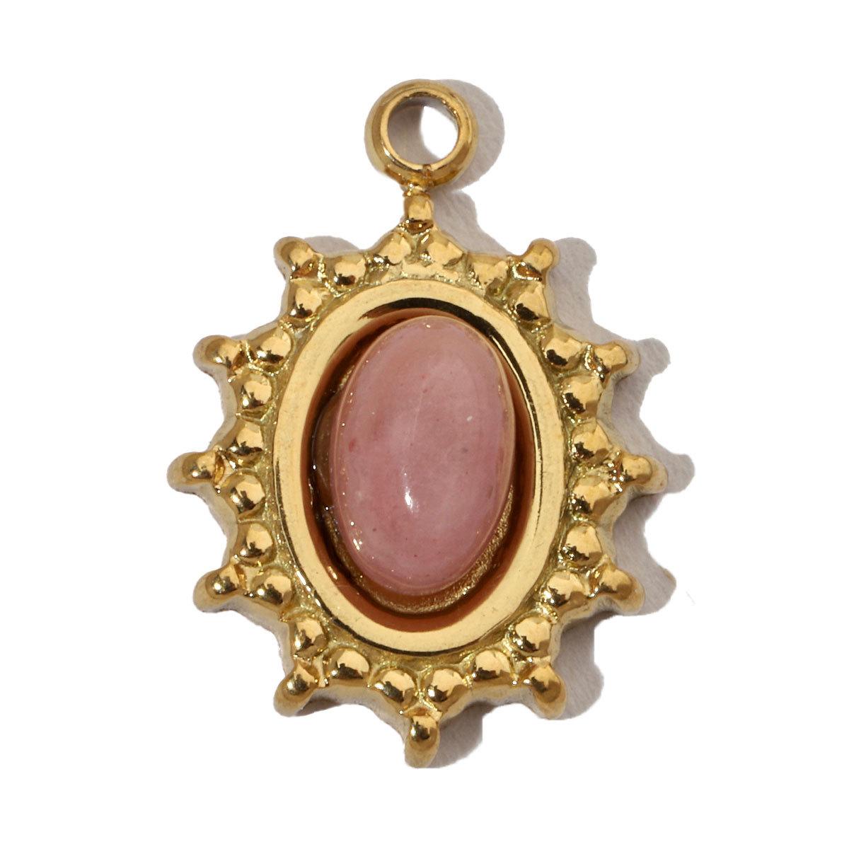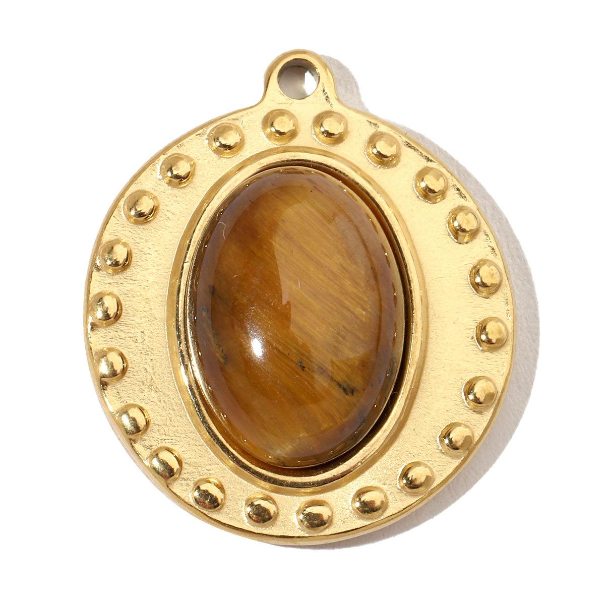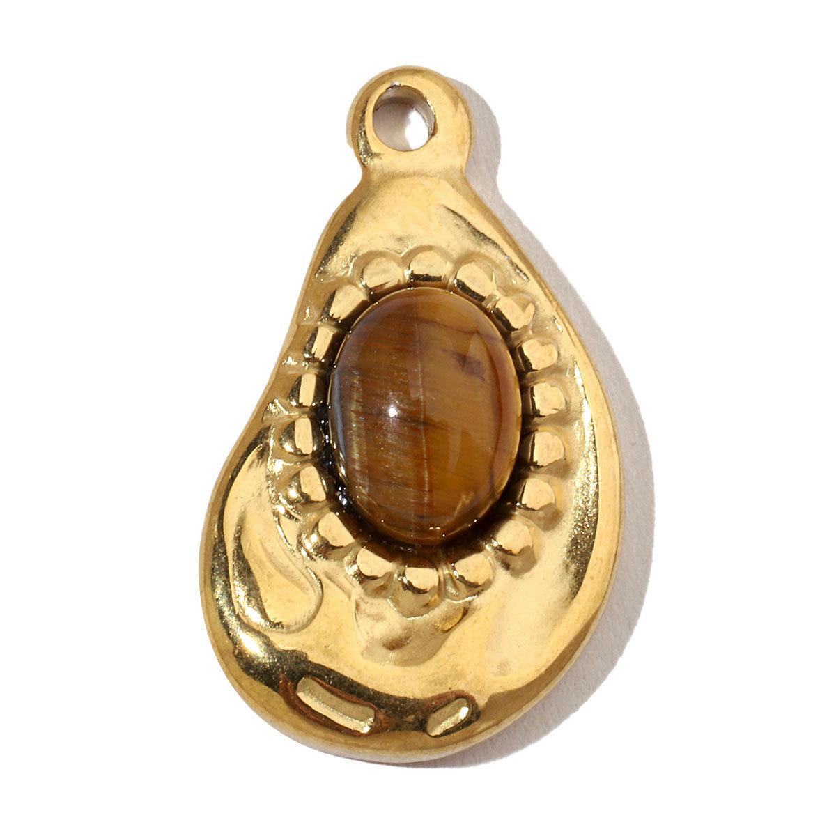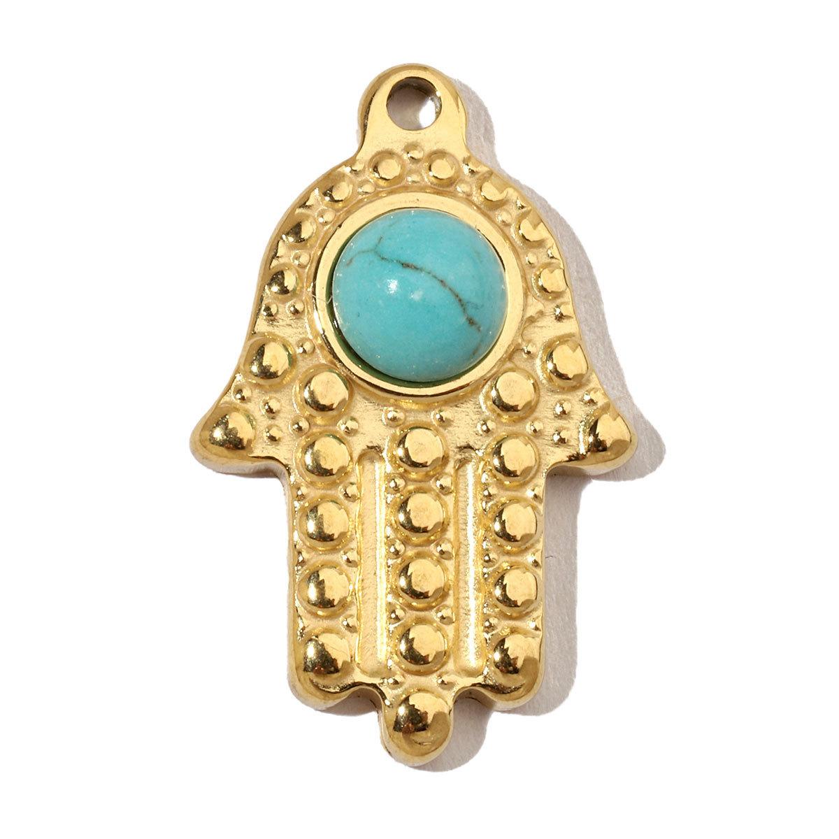 Colgante de acero inoxidable con forma de luna francesa, piedra natural, titanio y bricolaje, para mujer, con forma ovalada, de acero inoxidable, con forma de palma