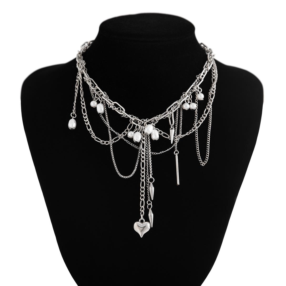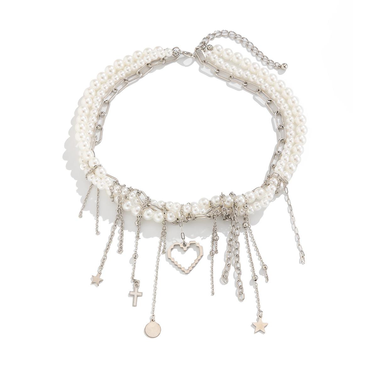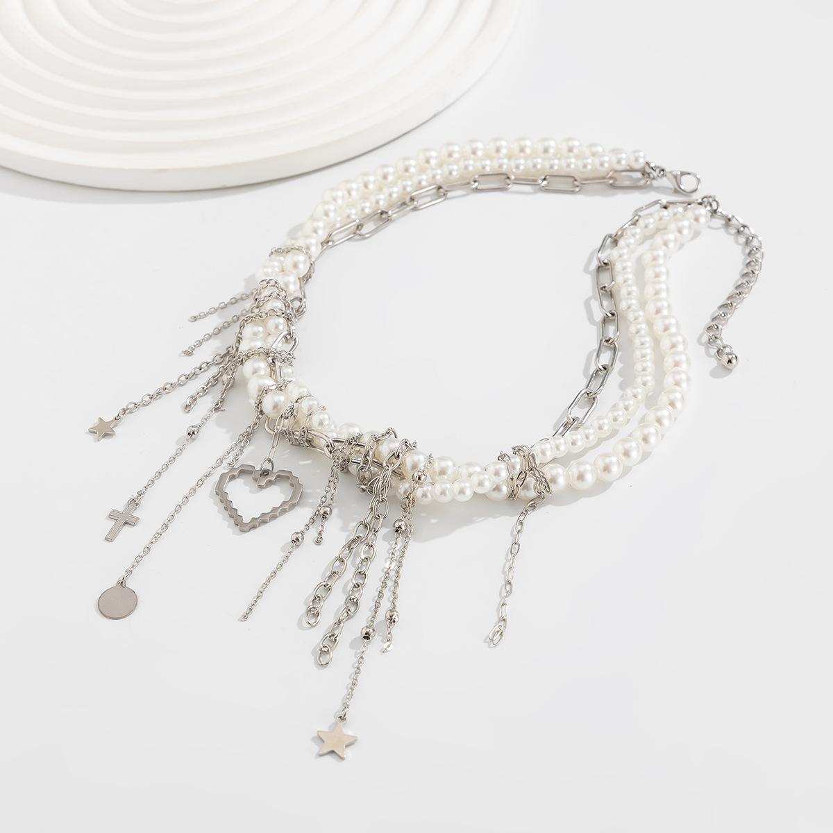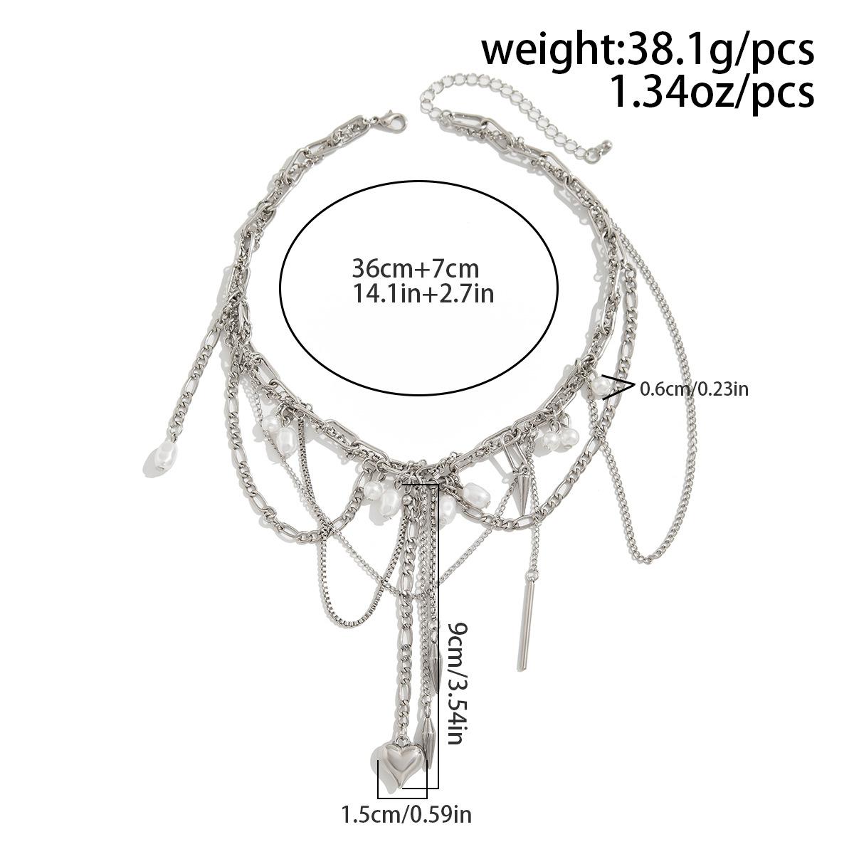 Material del producto: Cadena de hierro + aleación + perla de imitación + acero inoxidable (colgante de remache) / Cadena de hierro + aleación + perla de imitación + acero inoxidable (colgante de remache)