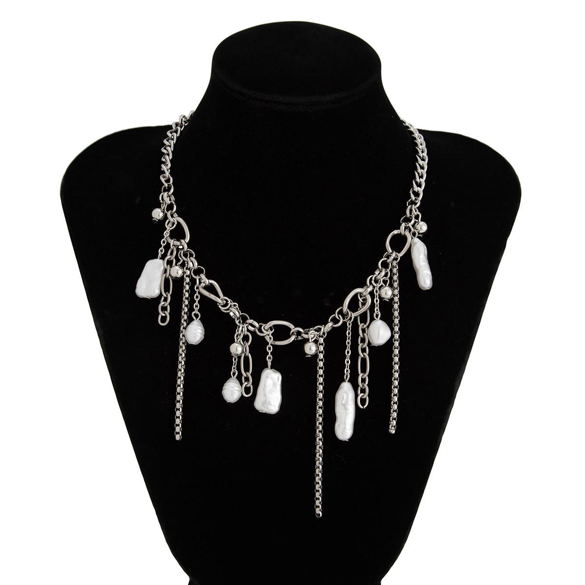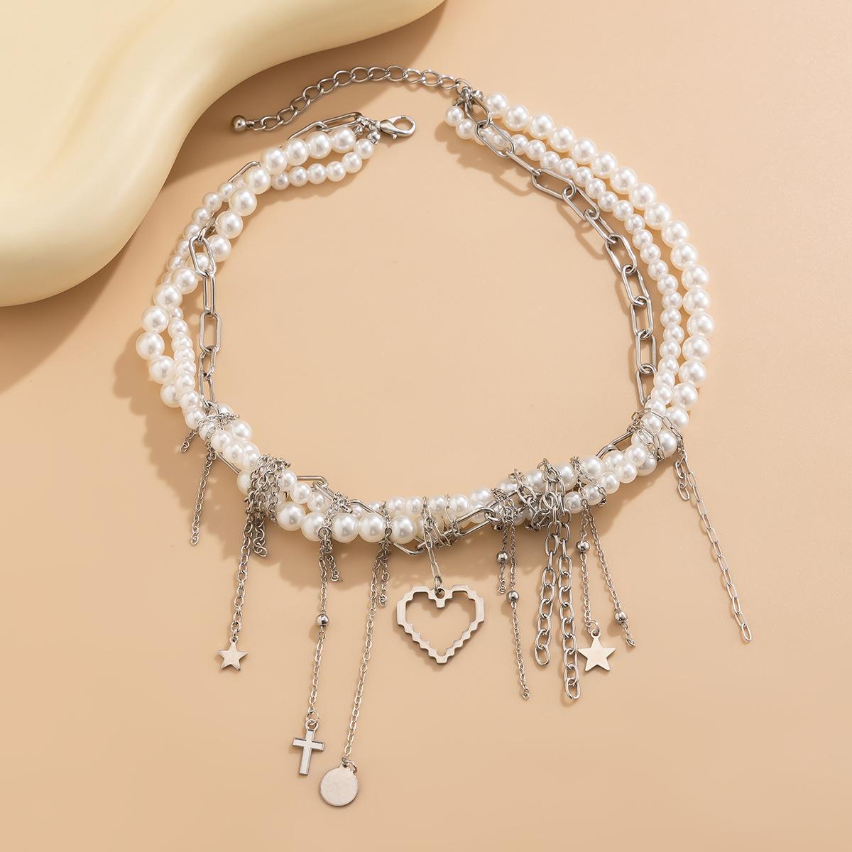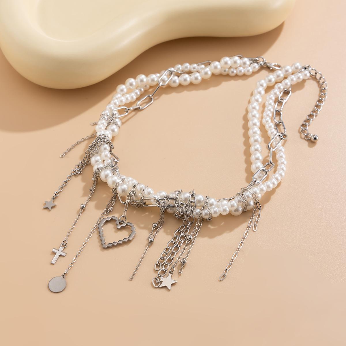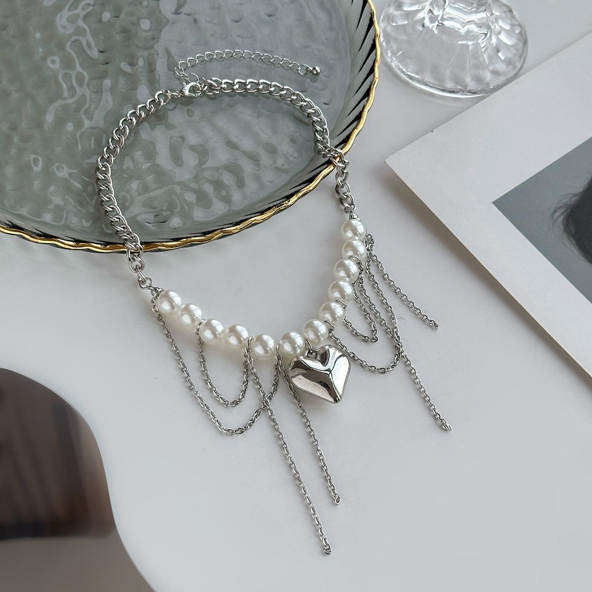 Material del producto: Cadena de hierro + aleación + perla de imitación + acero inoxidable (colgante de remache) / Cadena de hierro + aleación + perla de imitación + acero inoxidable (colgante de remache)