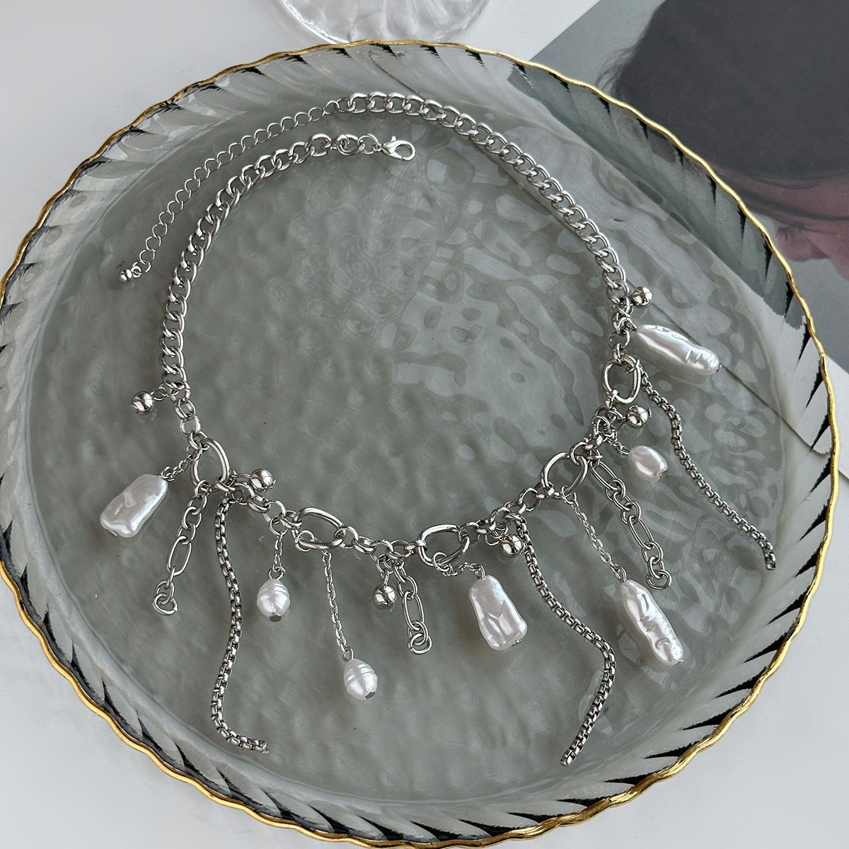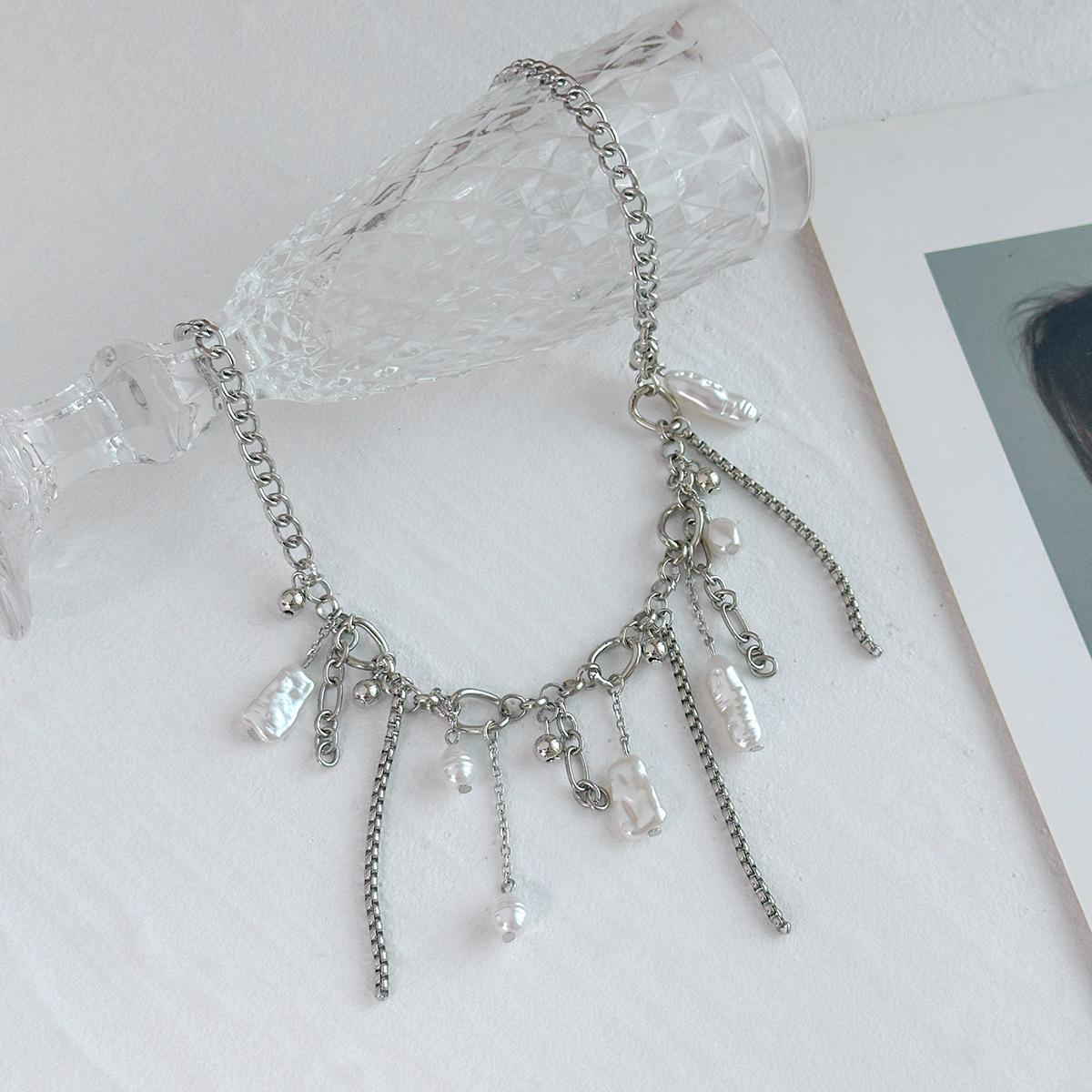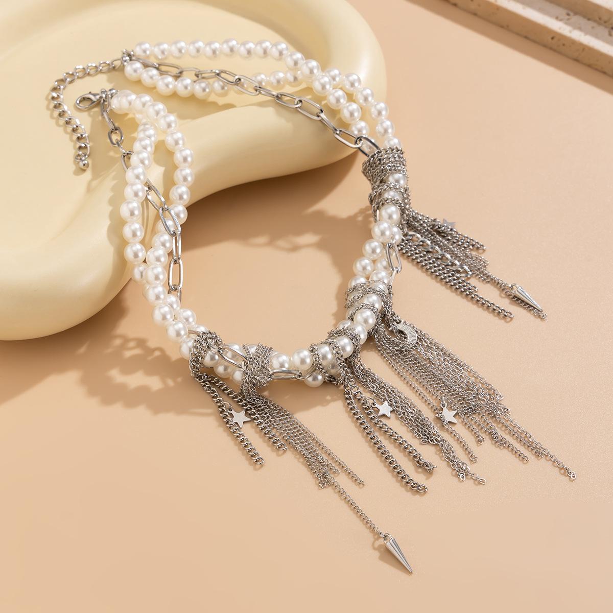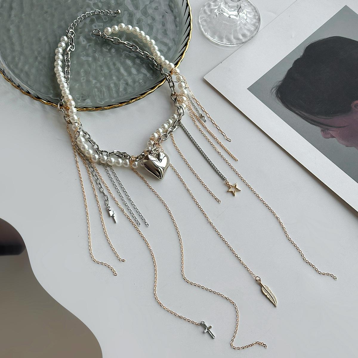 Material del producto: Cadena de hierro + aleación + perla de imitación + acero inoxidable (colgante de remache) / Cadena de hierro + aleación + perla de imitación + acero inoxidable (colgante de remache)