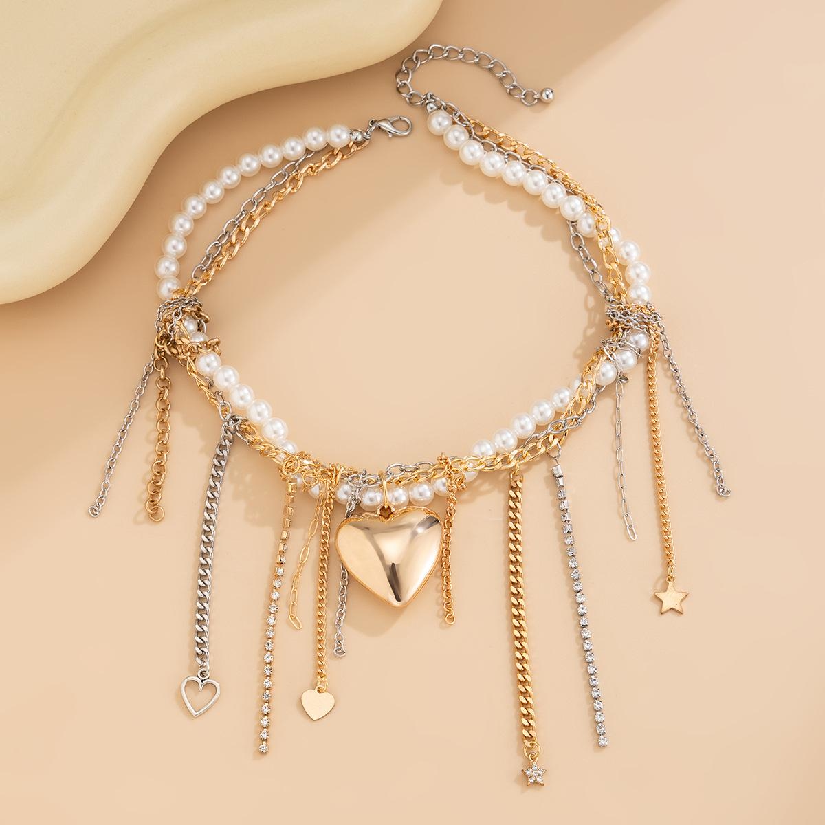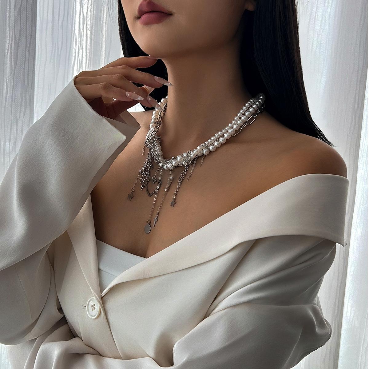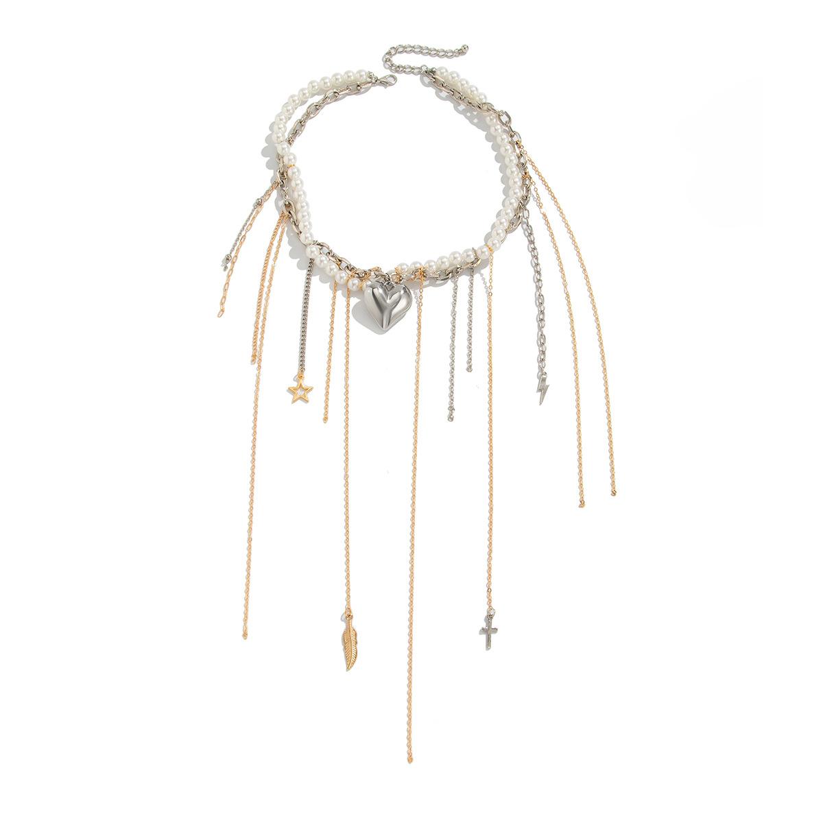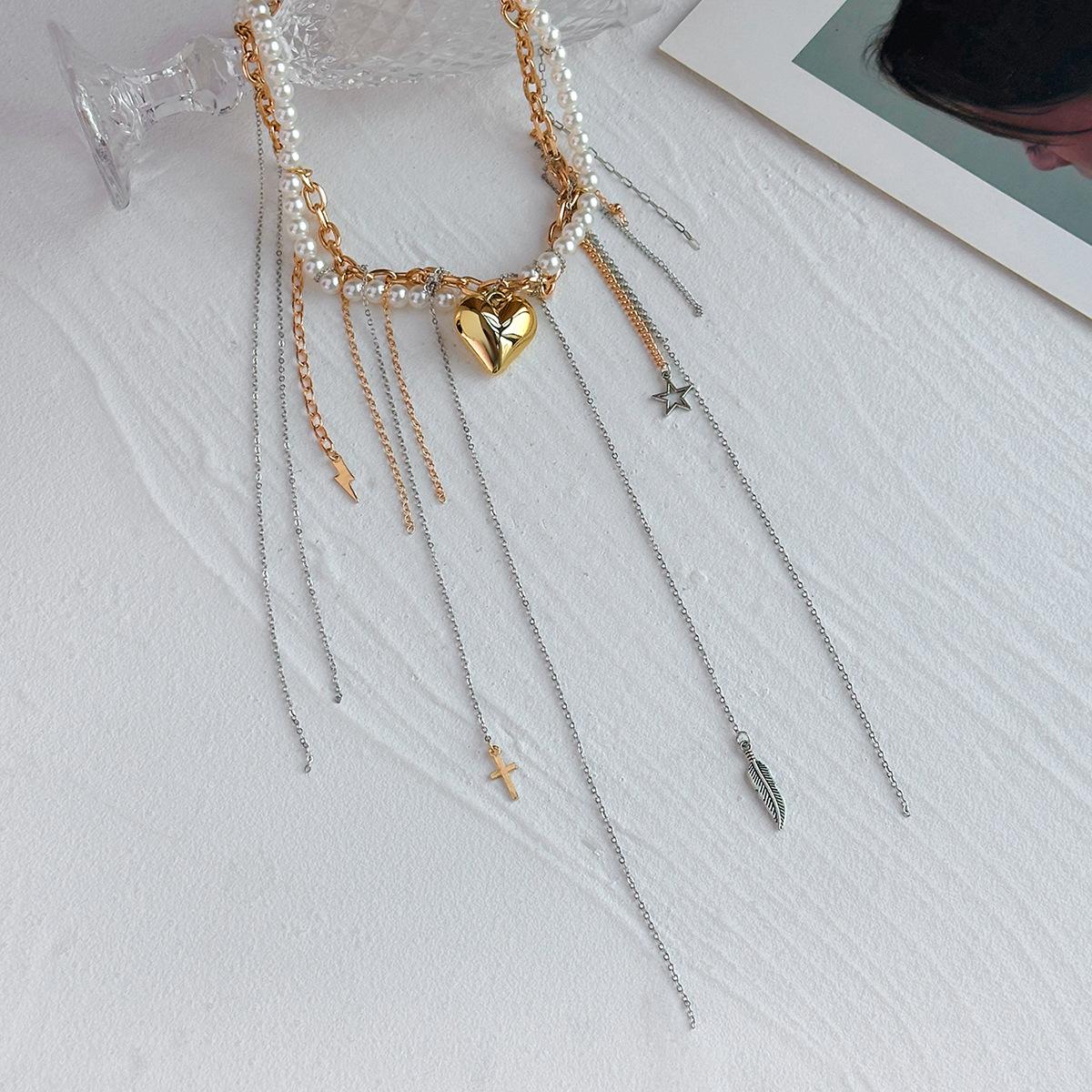 Material del producto: Cadena de hierro + aleación + perla de imitación + acero inoxidable (colgante de remache) / Cadena de hierro + aleación + perla de imitación + acero inoxidable (colgante de remache)
