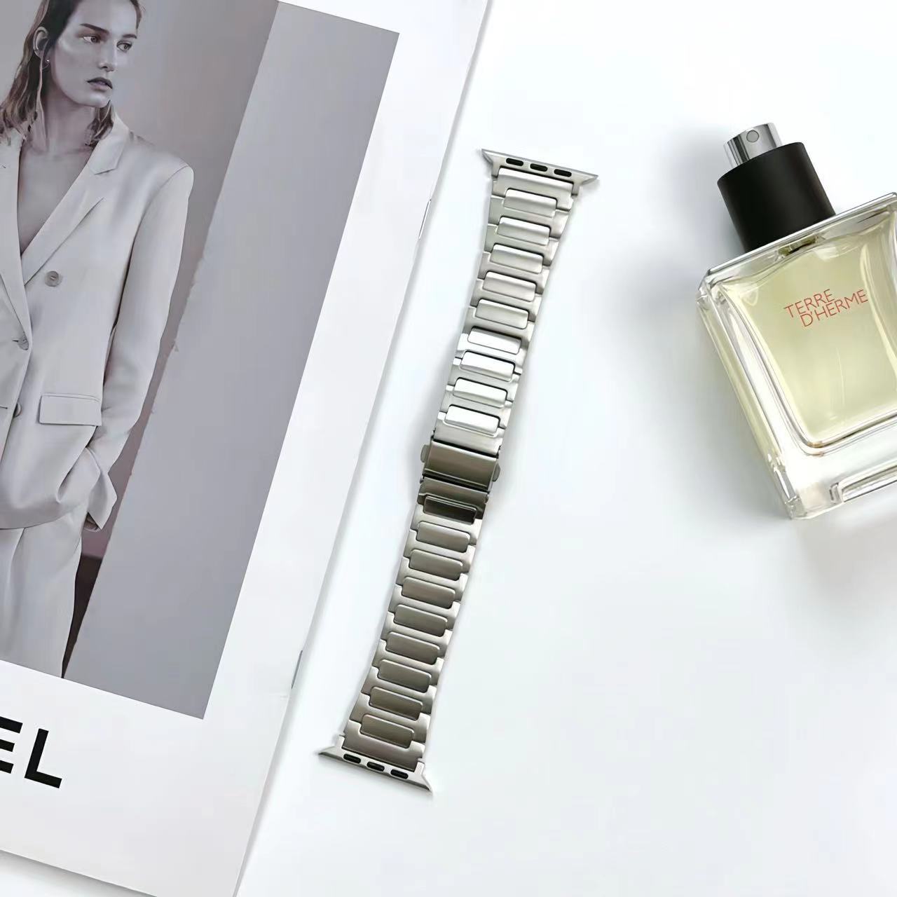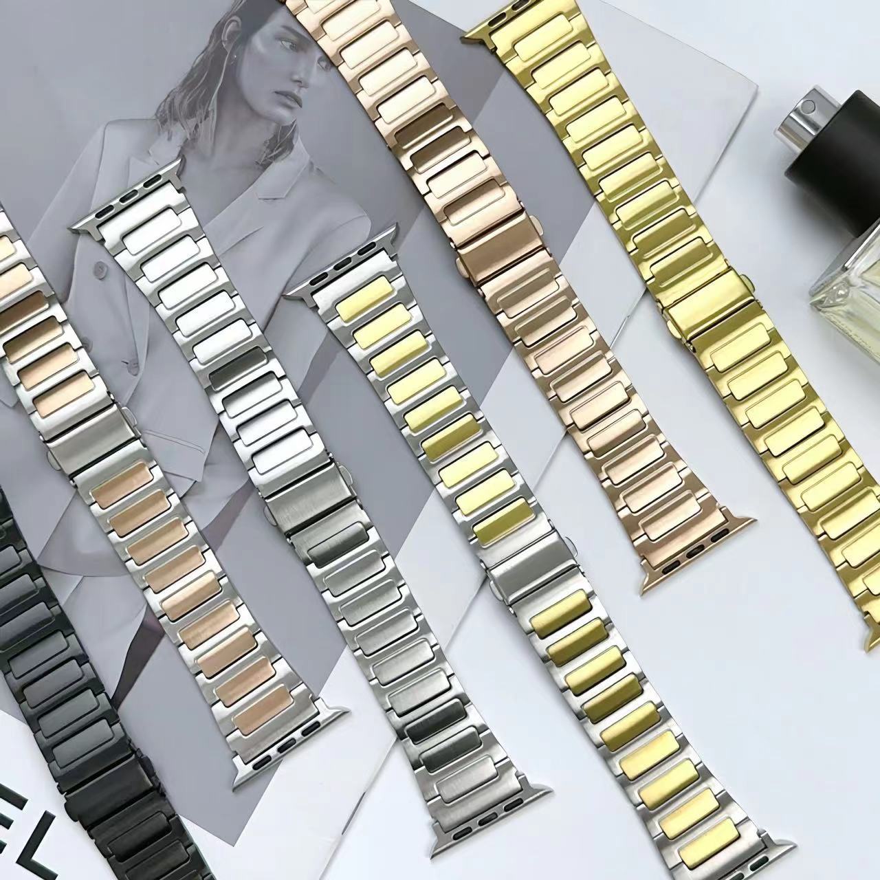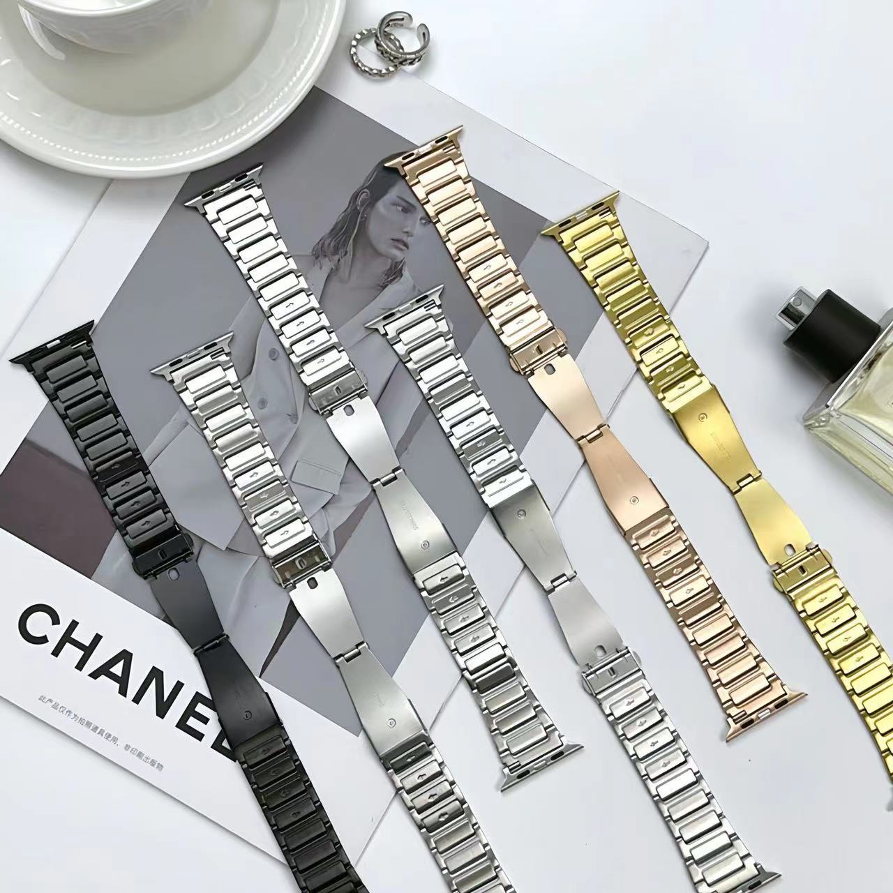 Adecuado para Apple Watch Correa de Metal de Acero Sólido de Tres Eslabones de Alta Gama en Forma de I