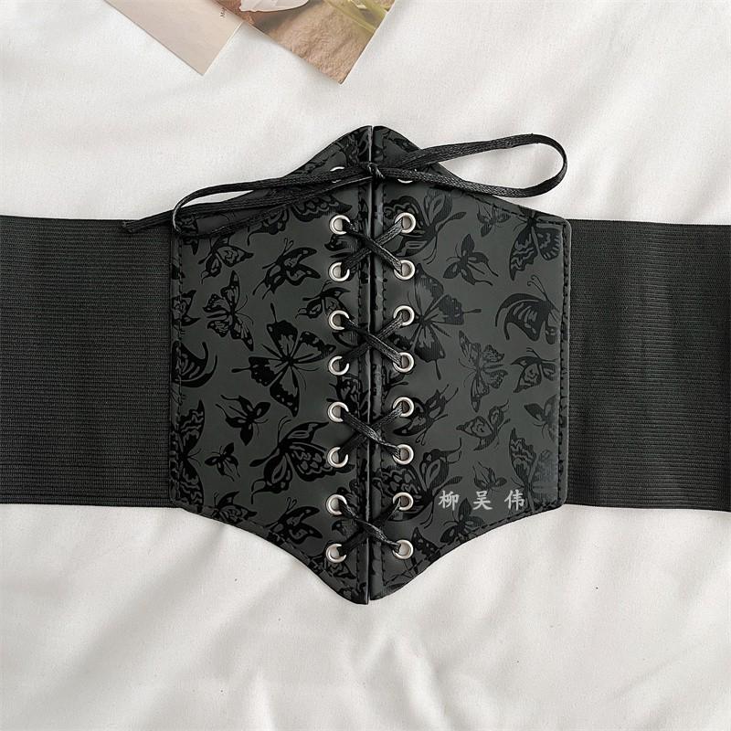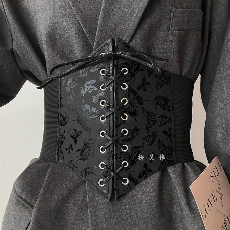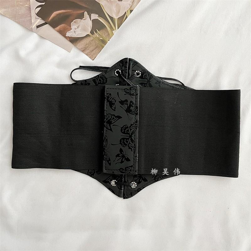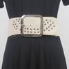Cinturón ancho europeo y americano para mujer, de alta gama, combina con todo, con decoración para vestido, cinturón negro elástico.