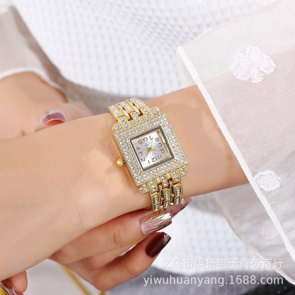 Reloj cuadrado de cuarzo con esfera digital, nuevo modelo 2025, con pulsera de moda transfronteriza y diamantes para mujer.