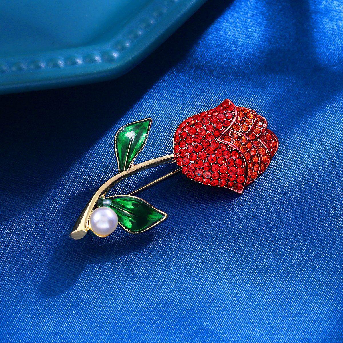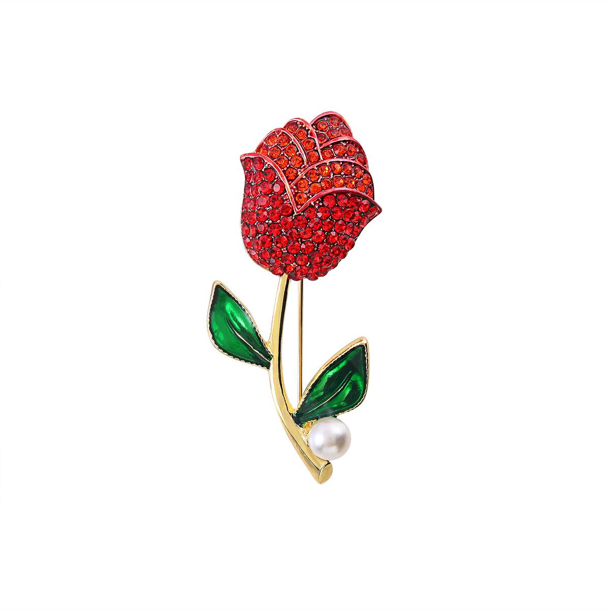 Broche de tulipán exquisito de moda con incrustaciones de diamantes de imitación, ramillete de flores, accesorios de ropa, alfiler, accesorios, broche al por mayor