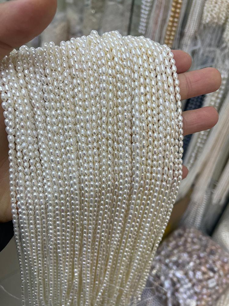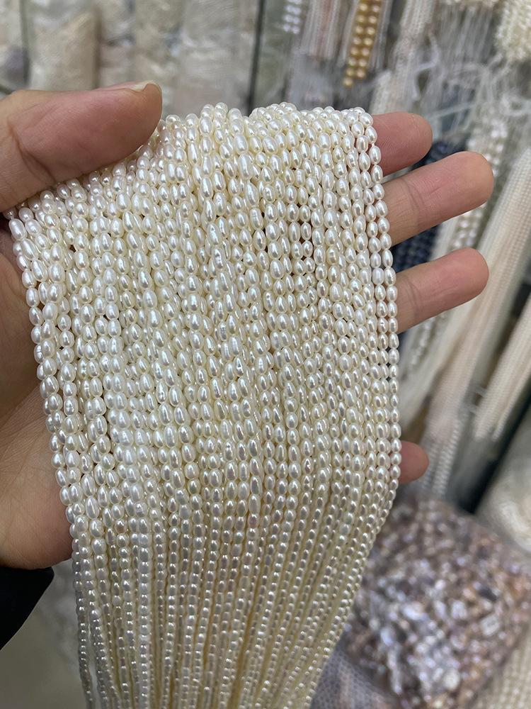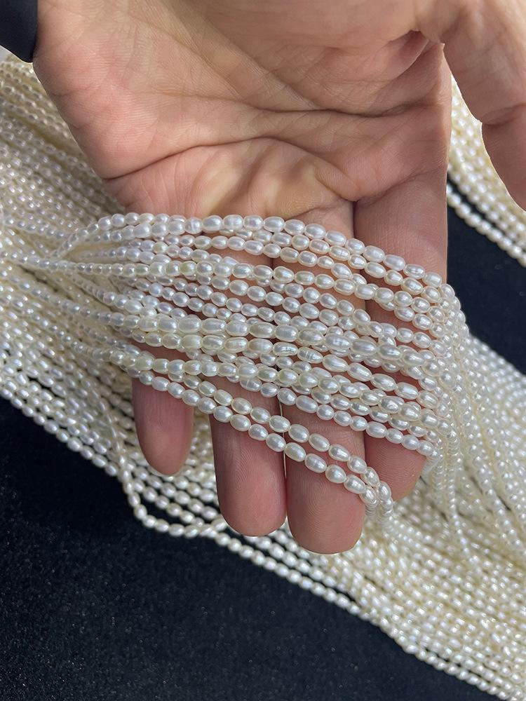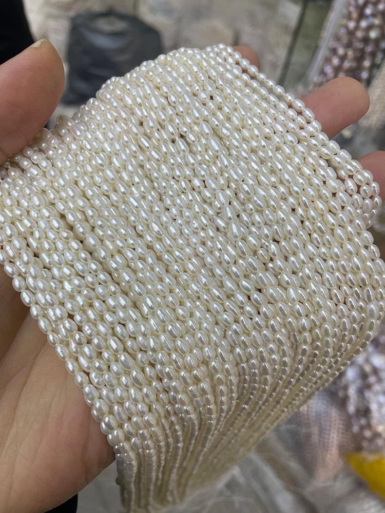 2.8-3.3mm Perla de Agua Dulce Blanca Forma de Mijo Semiterminada Cuenta DIY Material Natural Collar Venta al por Mayor