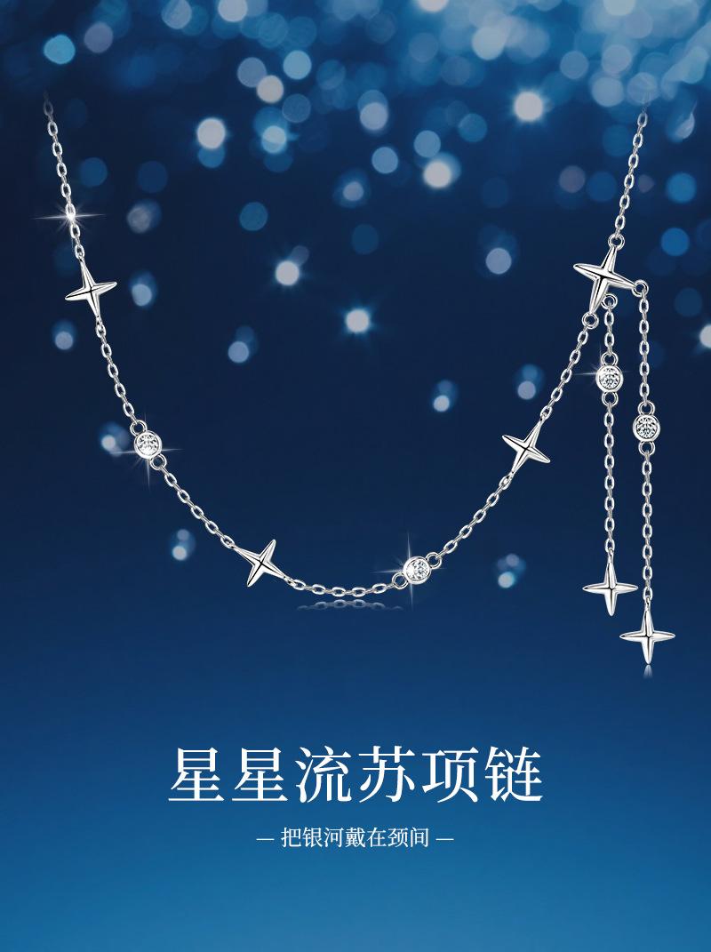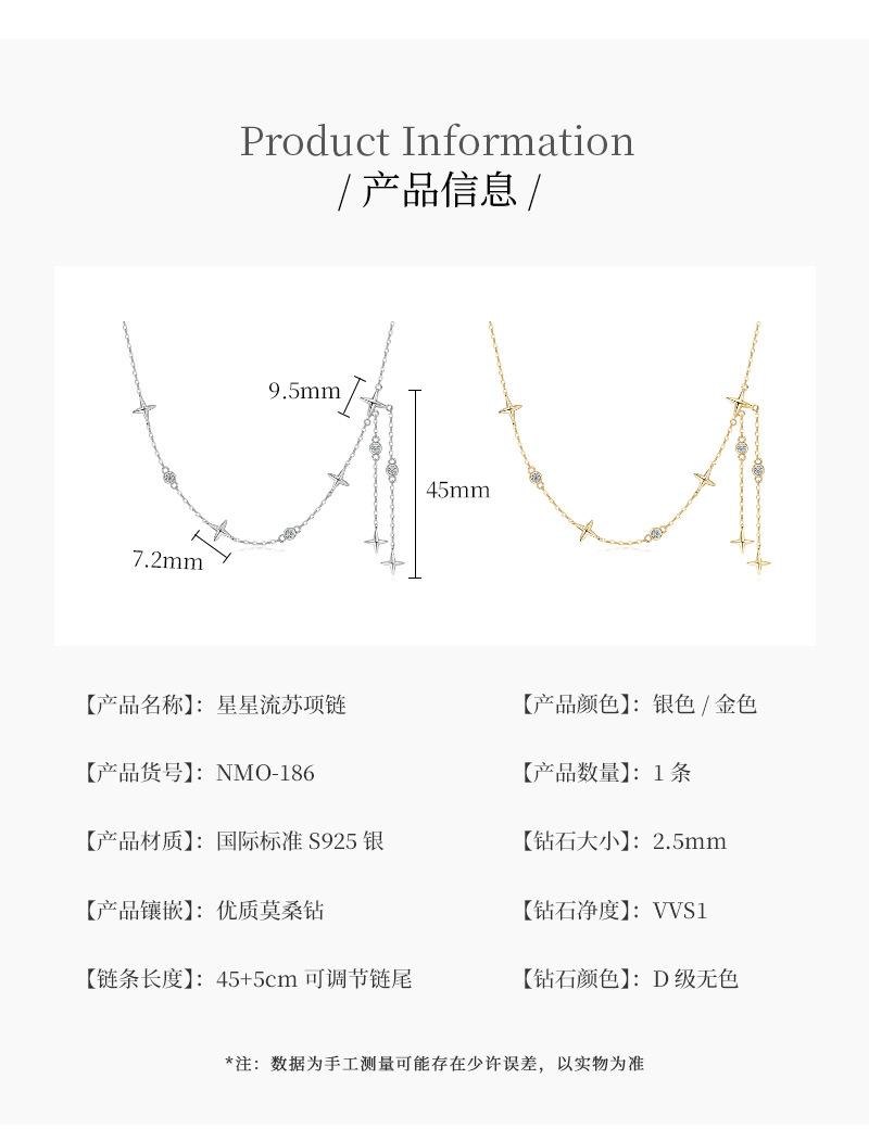Collar de Plata s925 con Diamantes Completos Estrella Parpadeante 2024 Venta Caliente Transfronteriza Nicho Lujo Ligero Colgante Cielo Estrellado de Moissanita Mujer