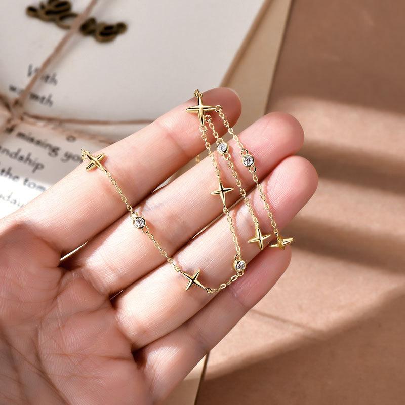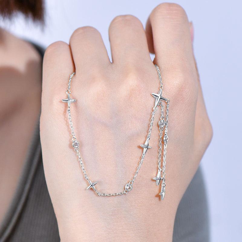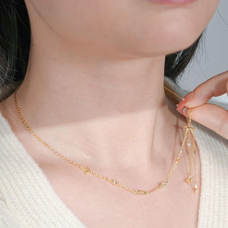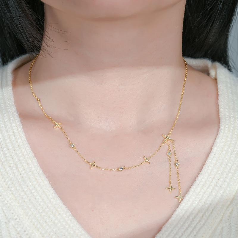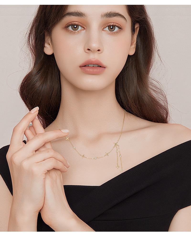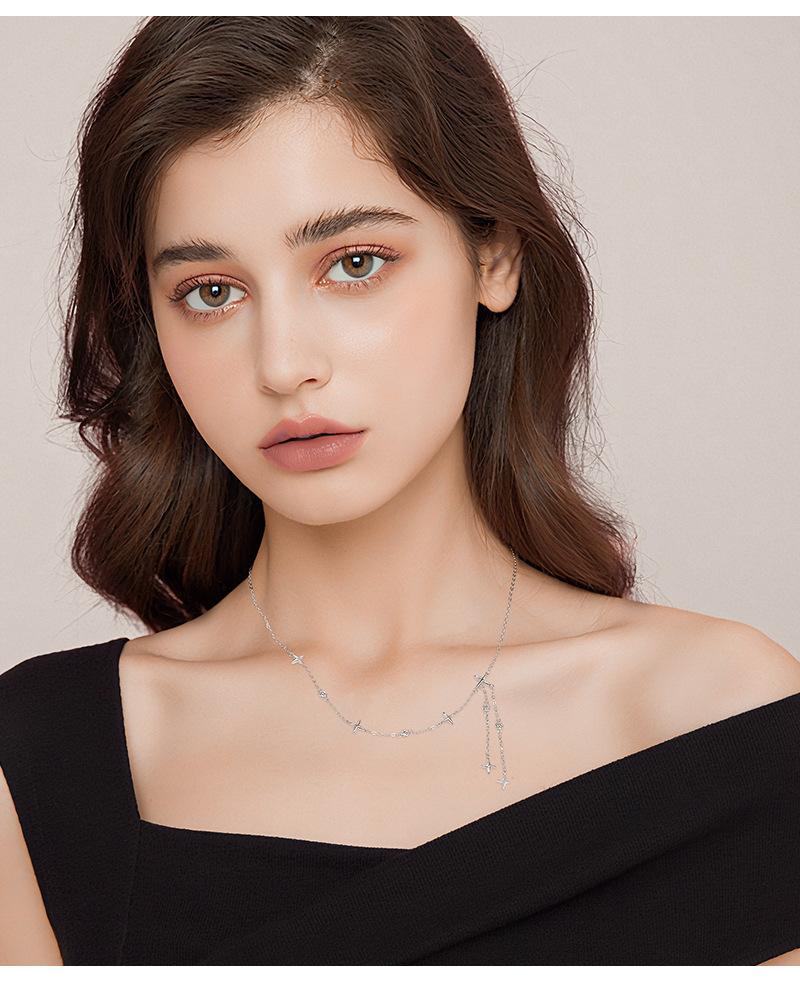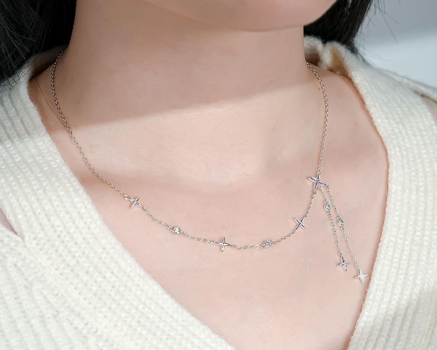 Collar de Borla de Estrella Completa de Plata Esterlina S925 para Mujer Venta Caliente Transfronteriza Diamante Moissanita Nicho Estilo Coreano Cadena de Clavícula Pequeña y Fresca