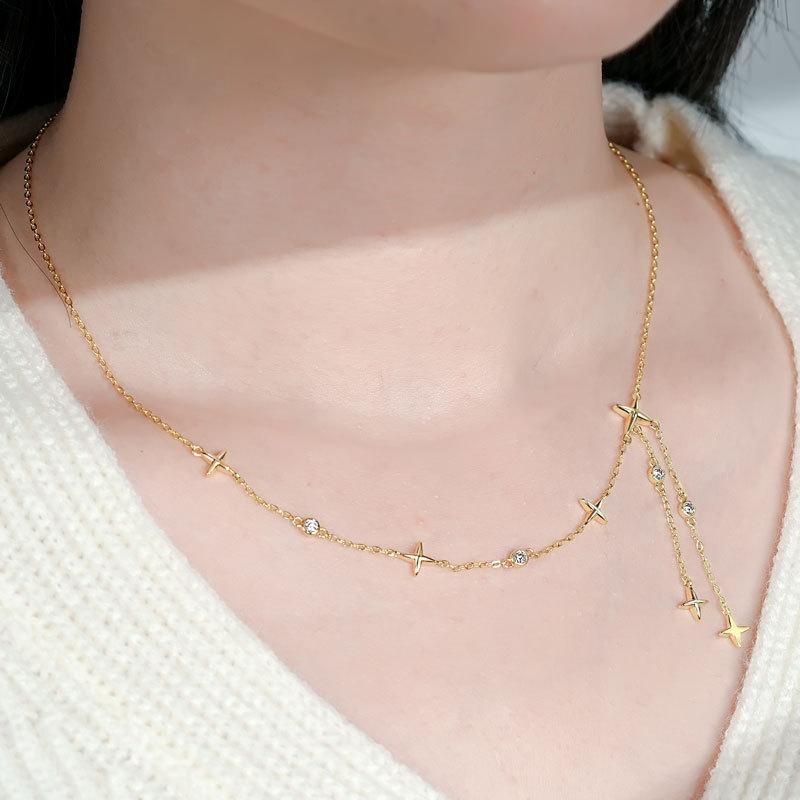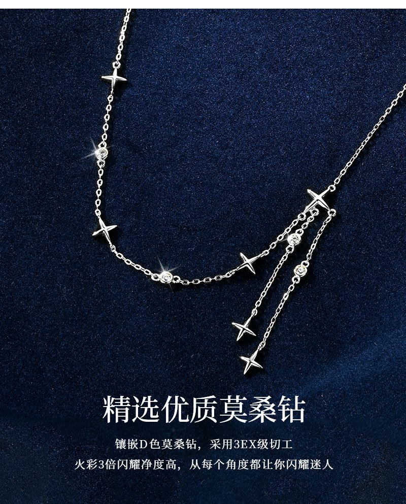 Personalidad de Influencer Collar Estrella de Ocho Puntas de Moda Plata Esterlina s925 Moissanita Único Lleno de Estrellas Collar Transfronterizo Nuevo