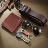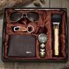 Reloj de cuarzo con correa de acero y disco de negocios de tendencia transfronteriza 2025, billetera personalizada, cinturón y caja de regalo de 5 piezas.