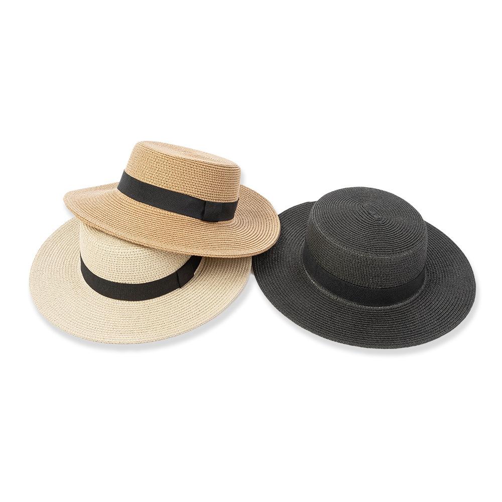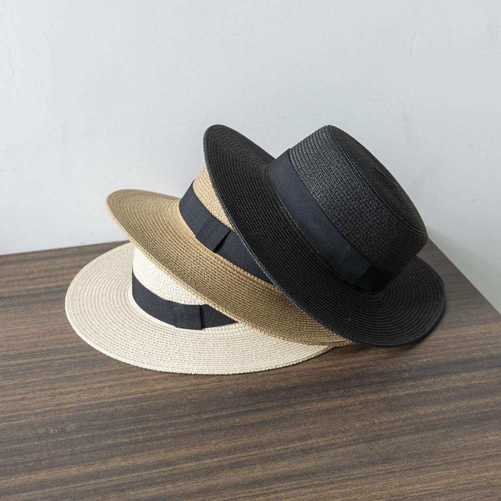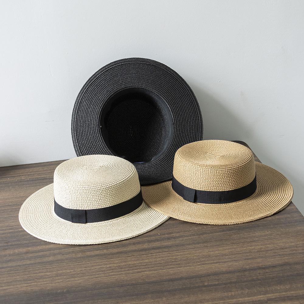 Compra Sombrero de paja de papel con parte superior plana y cinta ancha informal de moda para mujer, sombrero de paja con protección solar para viajes al aire libre, de primavera y verano, a la moda. al por mayor en Joom.pro