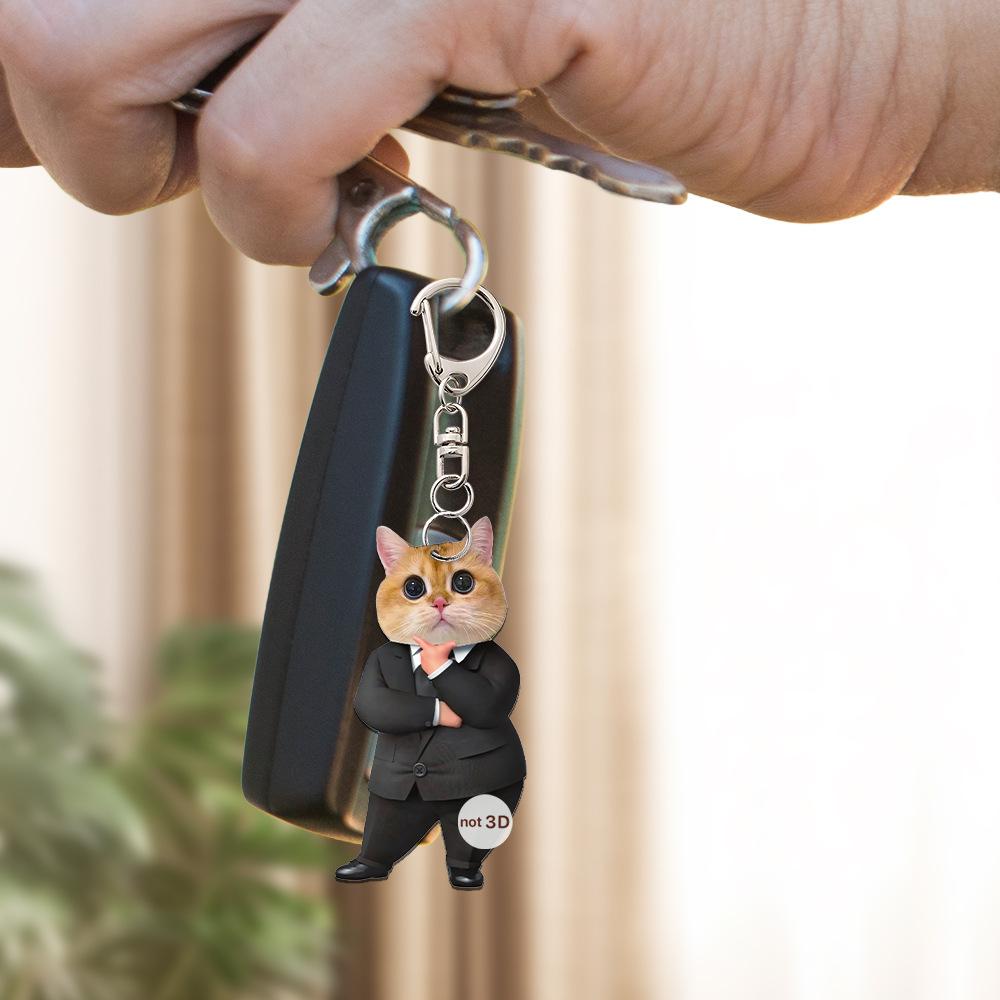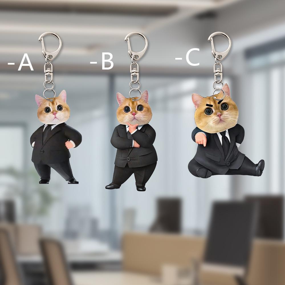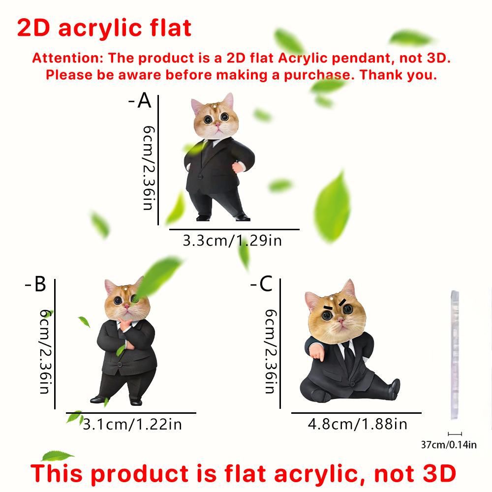 Llavero acrílico plano 2D con diseño de gato, divertido y creativo, para mochila o coche, colgante pequeño.